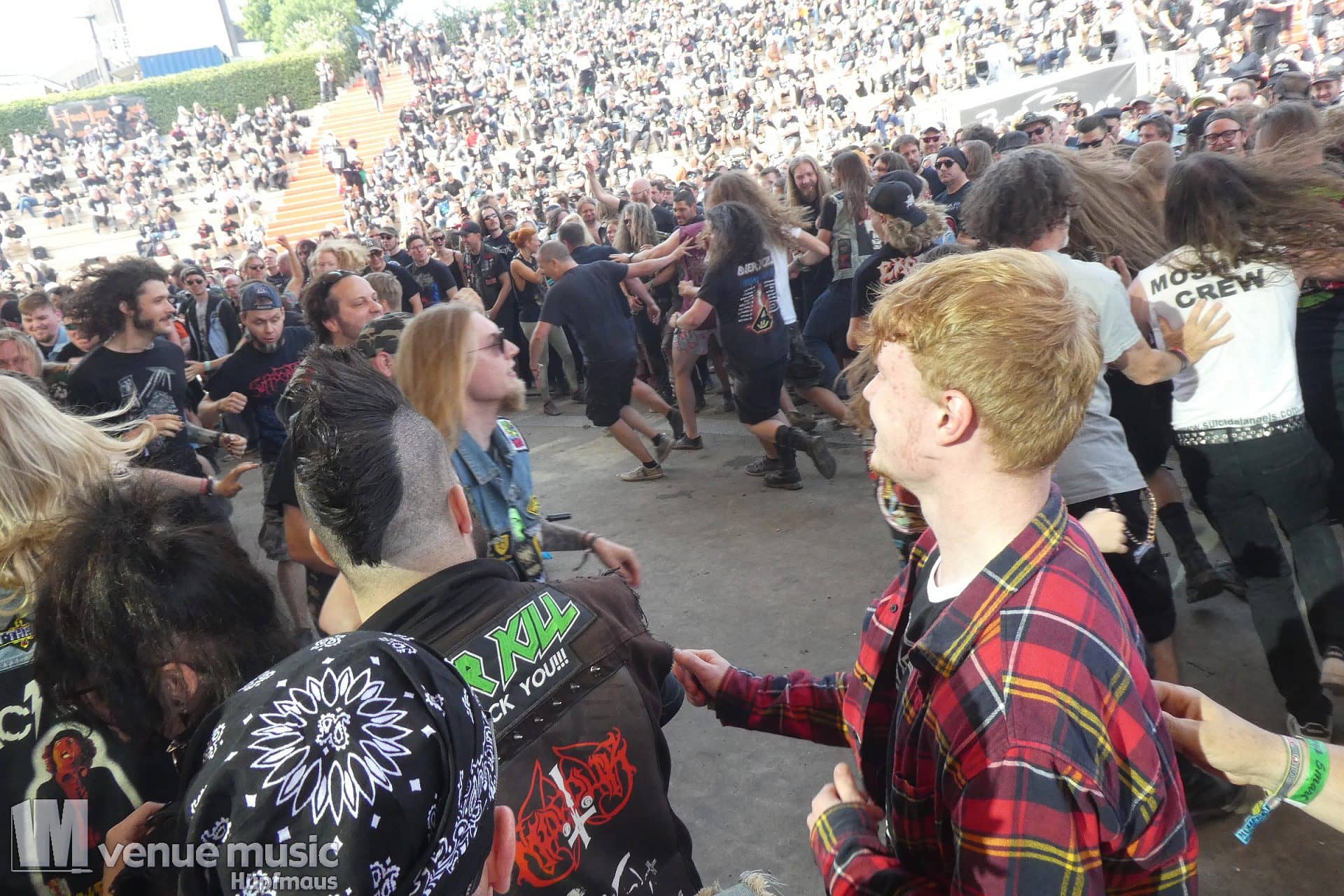 Grade mal 8 Songs konnten die griechischen Thrash Metaller zum Besten geben. Doch damit haben sie auch das Amphitheater so richtig in Schutt und Asche gelegt. Das ging ab wie Schmitz Katze…