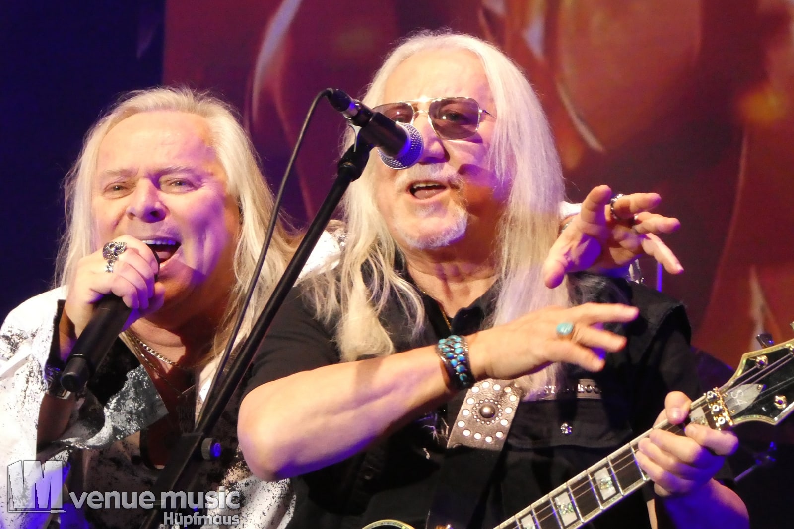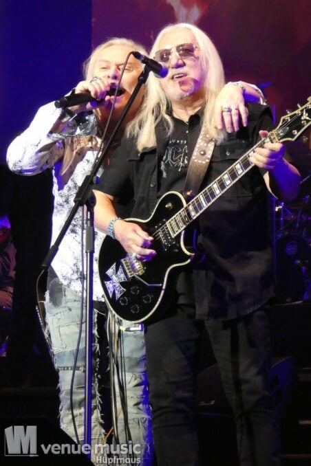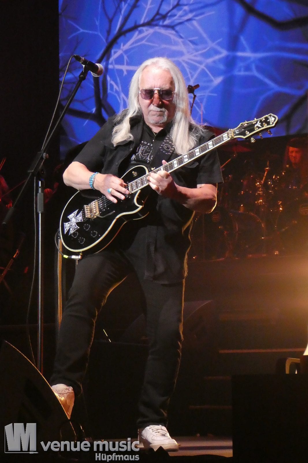 Total gefreut hatte ich mich auf Mike Box und Bernie Shaw von Uriah Heep, habe ich die Band doch 2018 als Support von Judas Priest in Dortmund gesehen. Und da waren sie schon spitze. Auch jetzt hat man ihnen den Spaß am Auftritt angesehen. Wie sie miteinander interagierten und mit den anderen Musikern. Absolut toll. Da ist wirklich noch Herzblut mit auf der Bühne. Und dass der Song „July Morning“ von 1971 ist, also älter als ich, gibt einem schon zu denken. So lange stehen die schon auf der Bühne und haben es immer noch absolut drauf. Das muss erst einmal jemand nachmachen. Respekt! (auch an alle anderen Künstler des Abends!!!!)