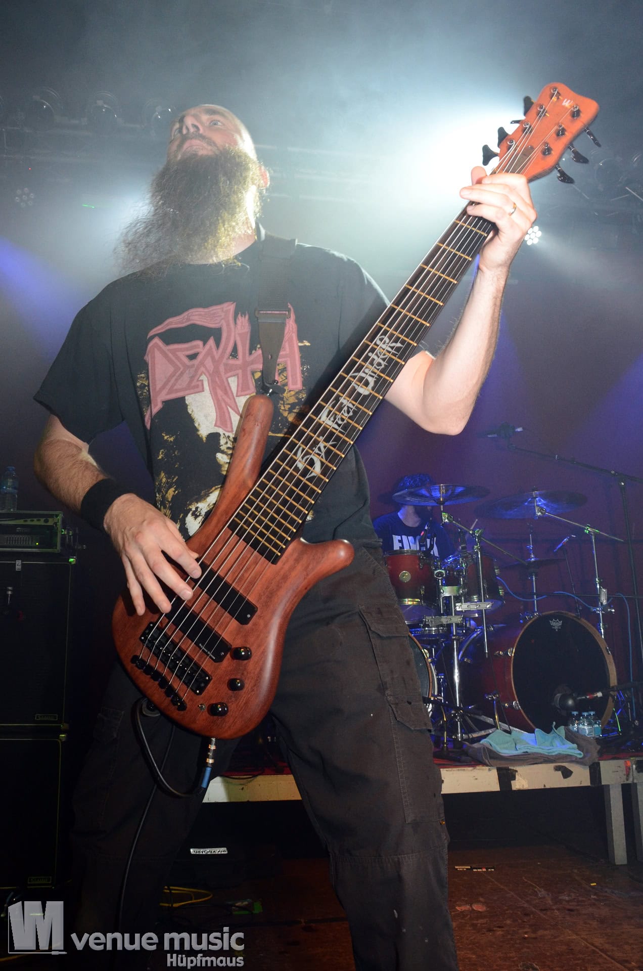 Wann Glück dass ich in weiser Voraussicht bereits kurz nach Einlass schon mal nach Merch geschaut habe, denn Six Feet Under hatten genau 2 Shirts in XL dabei. Und leider kein Tourshirt für den aktuellen Abend. Nur noch Reste aus 2018. In M…. etwas mau…