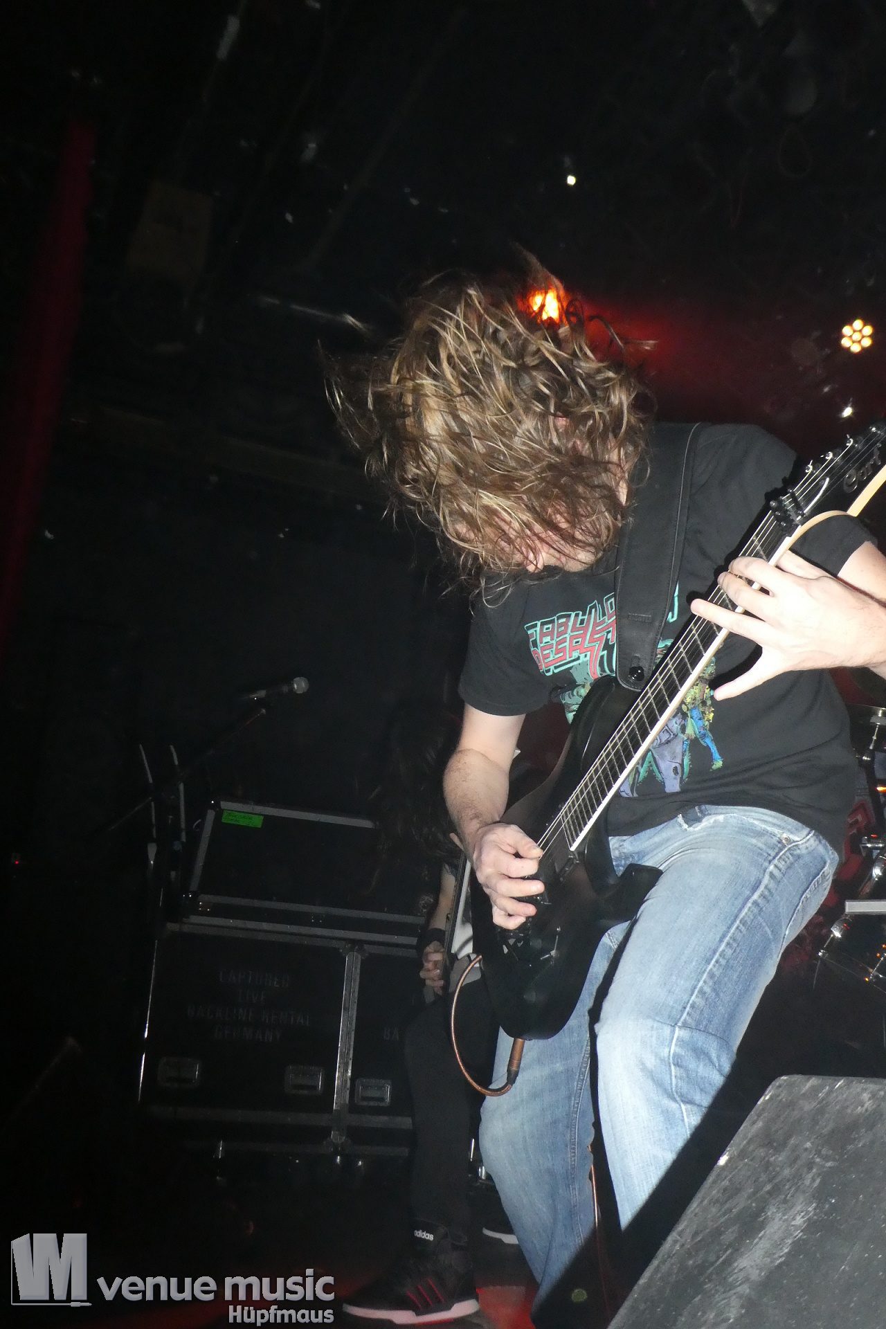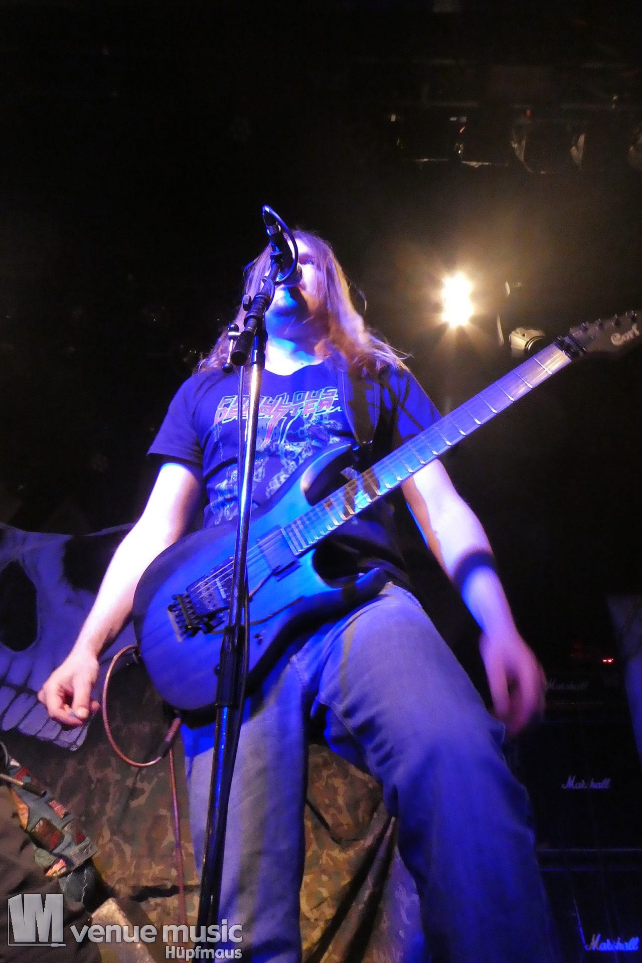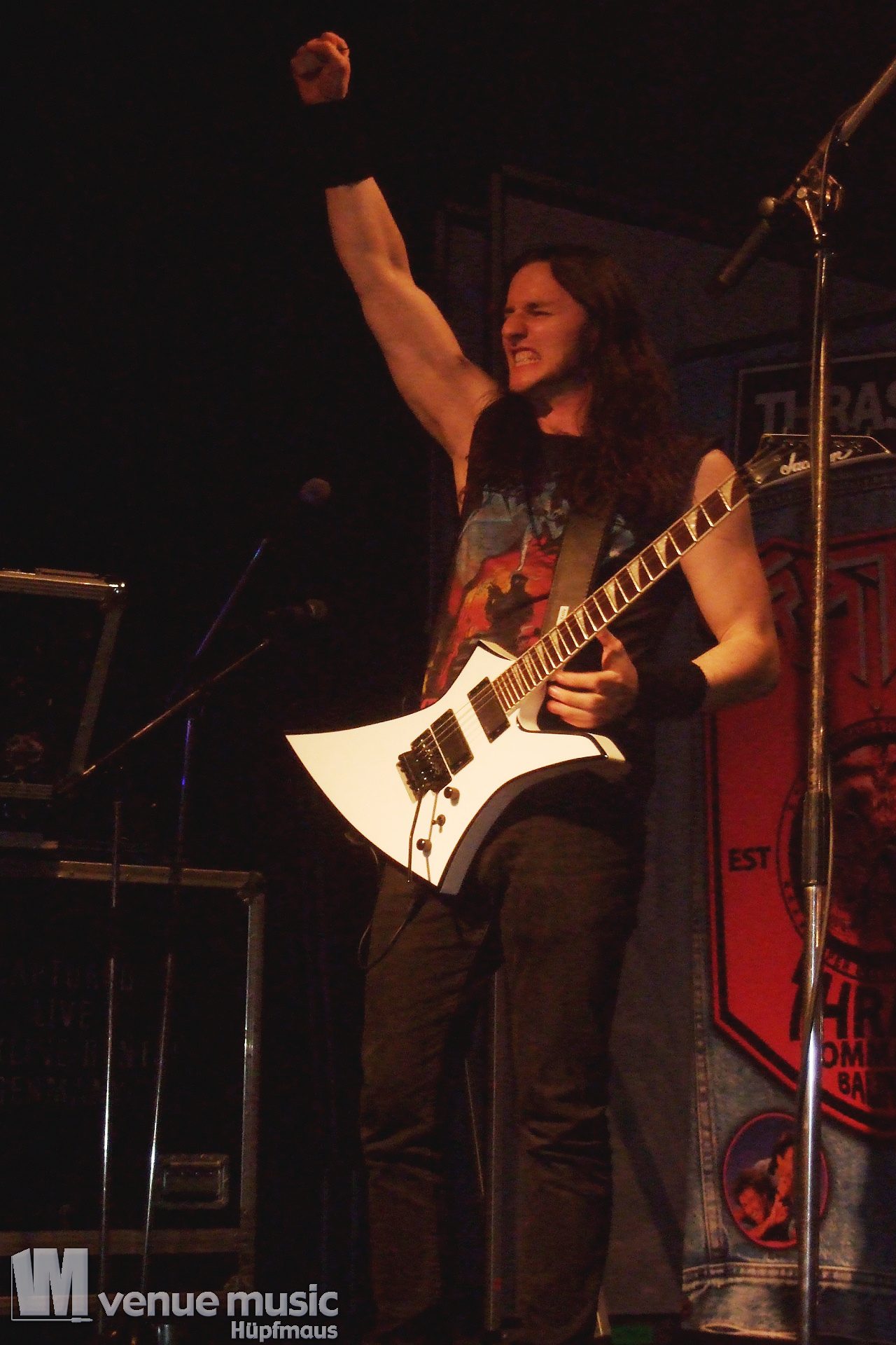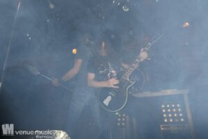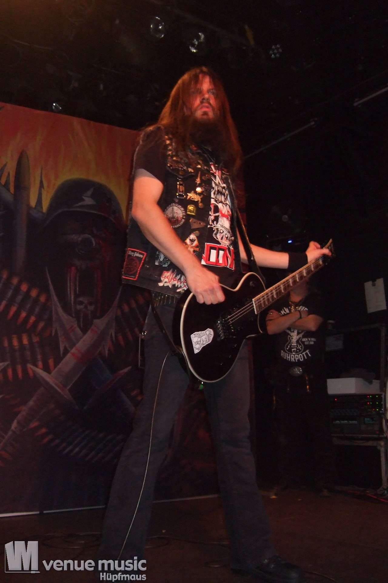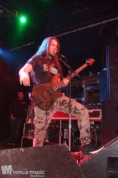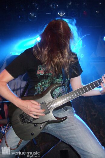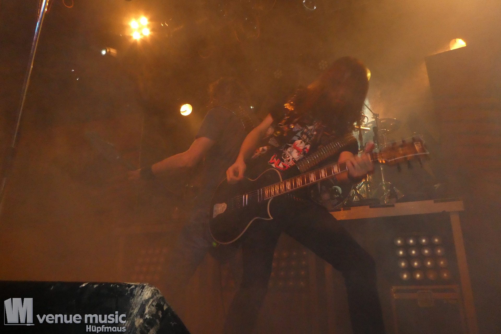 Recht pünktlich enterten Traitor die Bühne. Die Jungs aus Balingen machen bereits seit 2004 zusammen Musik (seit 2009 als Traitor – Besetzungswechsel inklusive). Leider kennen wir sie erst seit der „Knee-Deep in the Dead“ LP von 2018, die Jungs sind nämlich echt gut. Mit besagtem Titelsong haben sie dann auch ihr Set eröffnet. Und da ging es gut zur Sache, sie hatten echt Spaß auf der Bühne. Ein gutes duzend Songs knallten sie uns um die Ohren, mit dabei unter anderem „Thrash Command“, „Total Thrash“, „Venomizer“ und der Titelsong des diesjährigen Albums „Exiled to the surface“ (viel zu wenig gehört bisher die LP, auch wenn die hier natürlich im Regal steht…).