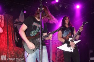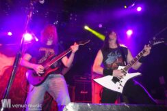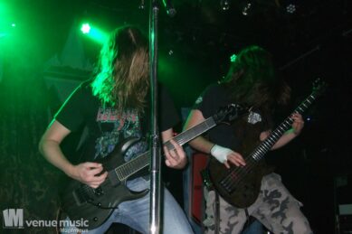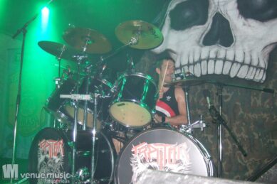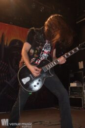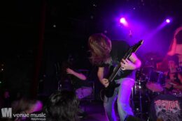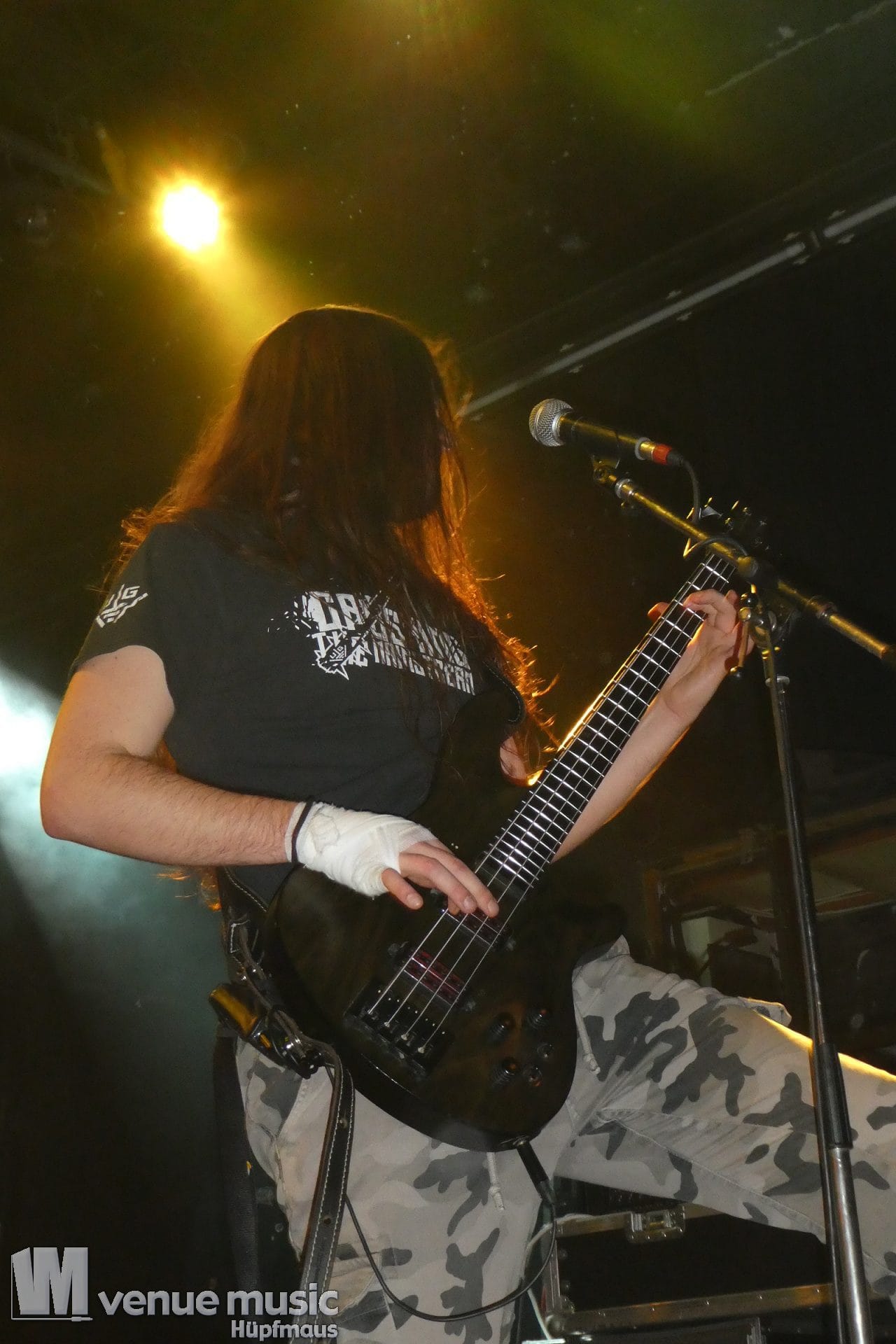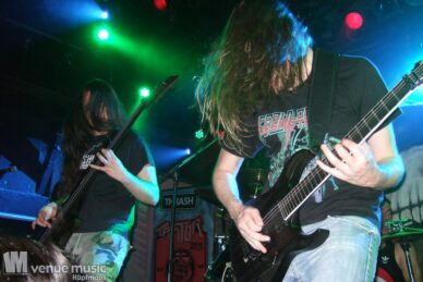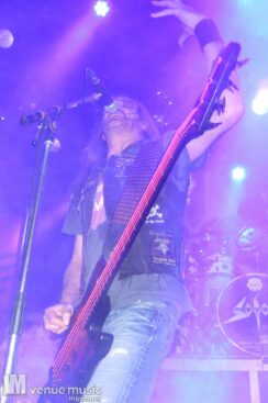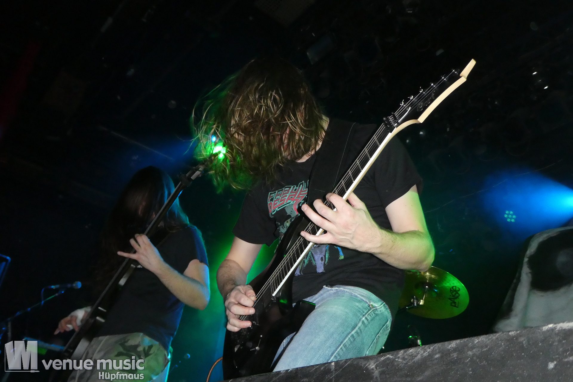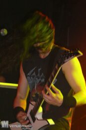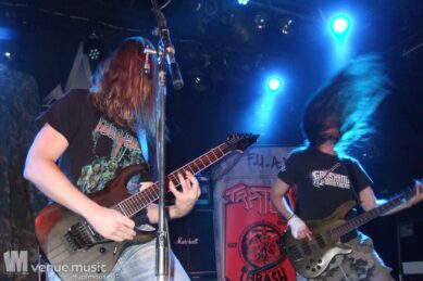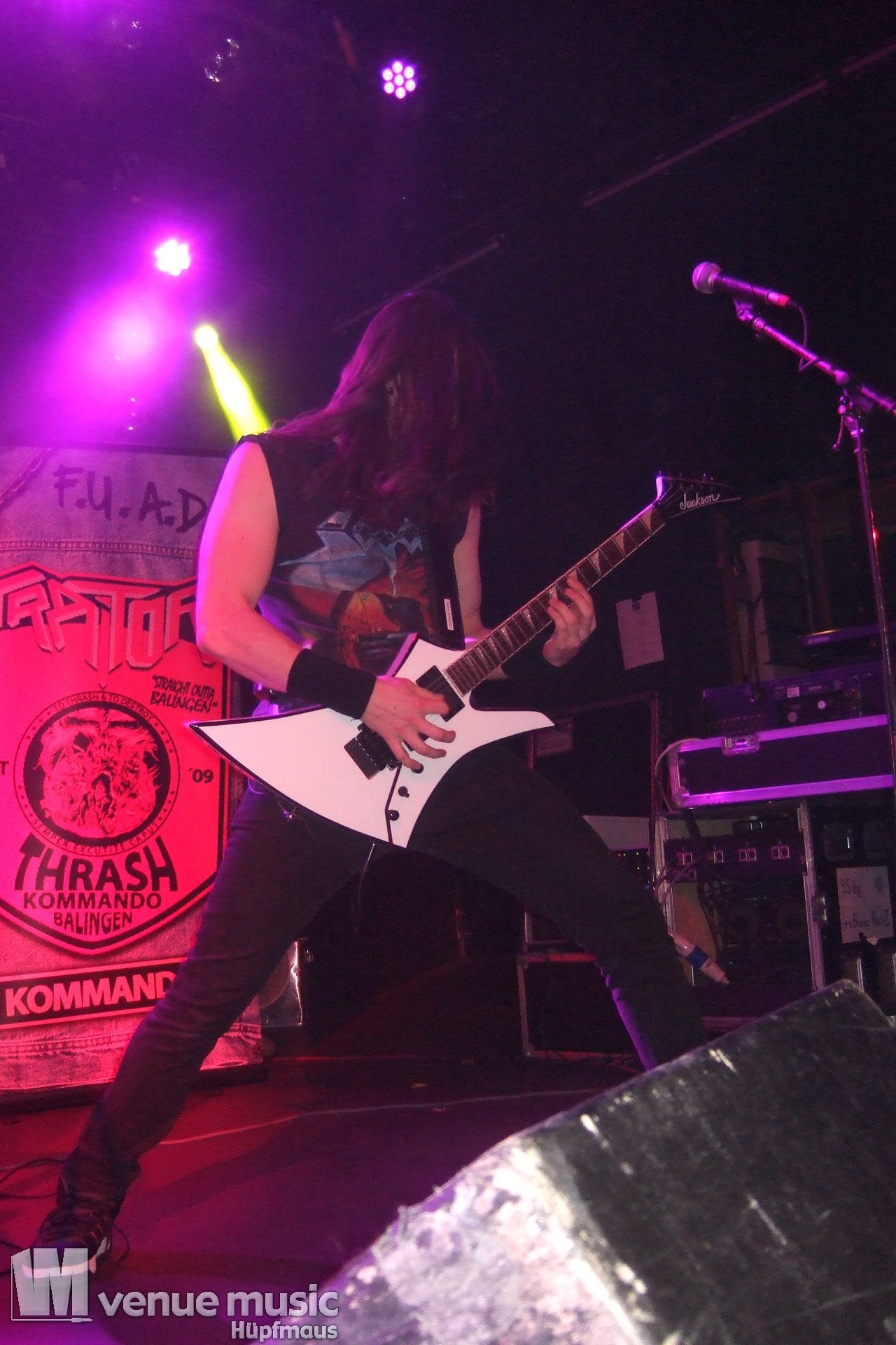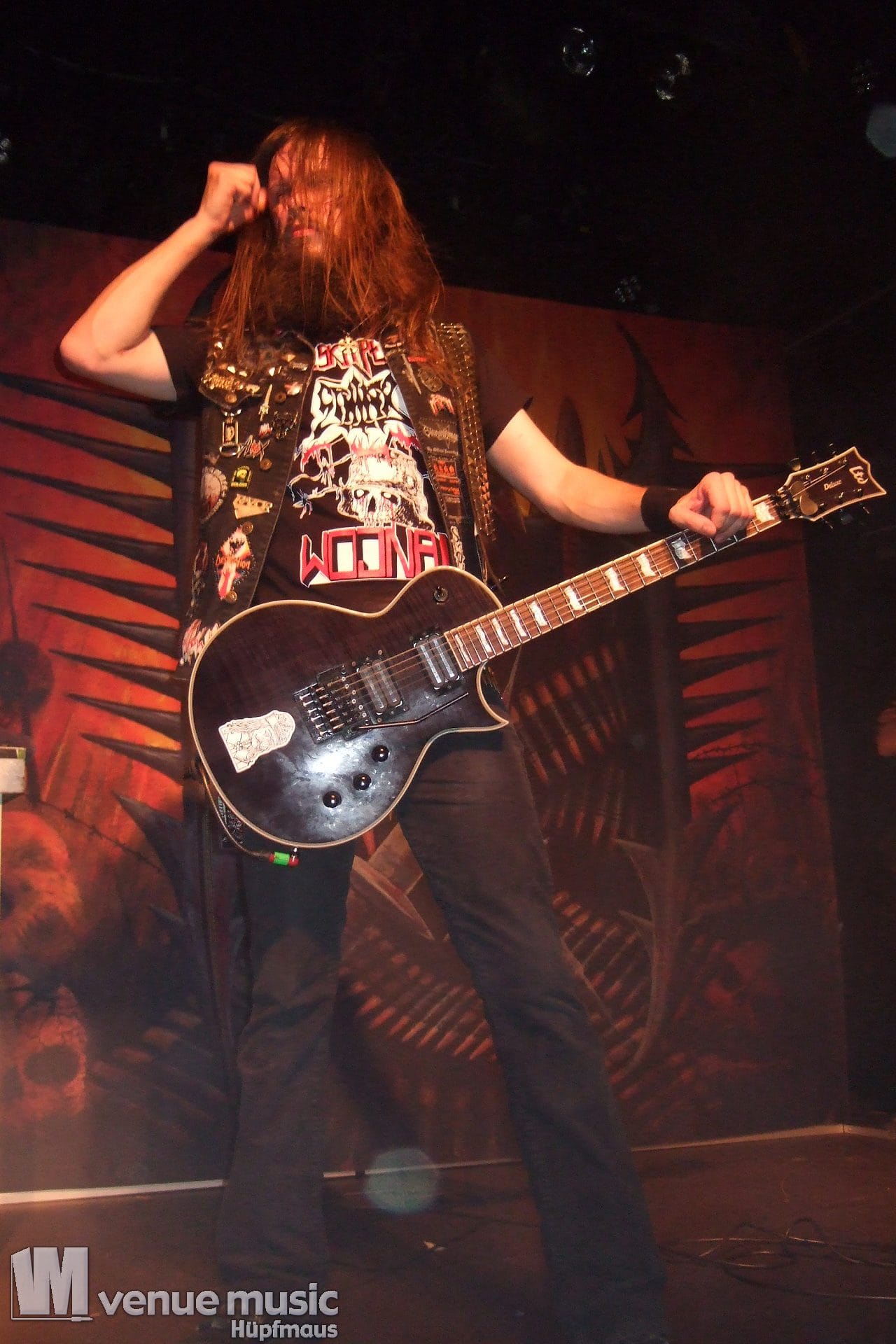 Recht pünktlich enterten Traitor die Bühne. Die Jungs aus Balingen machen bereits seit 2004 zusammen Musik (seit 2009 als Traitor – Besetzungswechsel inklusive). Leider kennen wir sie erst seit der „Knee-Deep in the Dead“ LP von 2018, die Jungs sind nämlich echt gut. Mit besagtem Titelsong haben sie dann auch ihr Set eröffnet. Und da ging es gut zur Sache, sie hatten echt Spaß auf der Bühne. Ein gutes duzend Songs knallten sie uns um die Ohren, mit dabei unter anderem „Thrash Command“, „Total Thrash“, „Venomizer“ und der Titelsong des diesjährigen Albums „Exiled to the surface“ (viel zu wenig gehört bisher die LP, auch wenn die hier natürlich im Regal steht…).