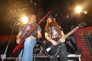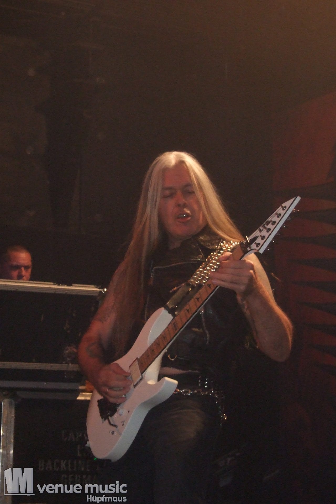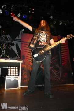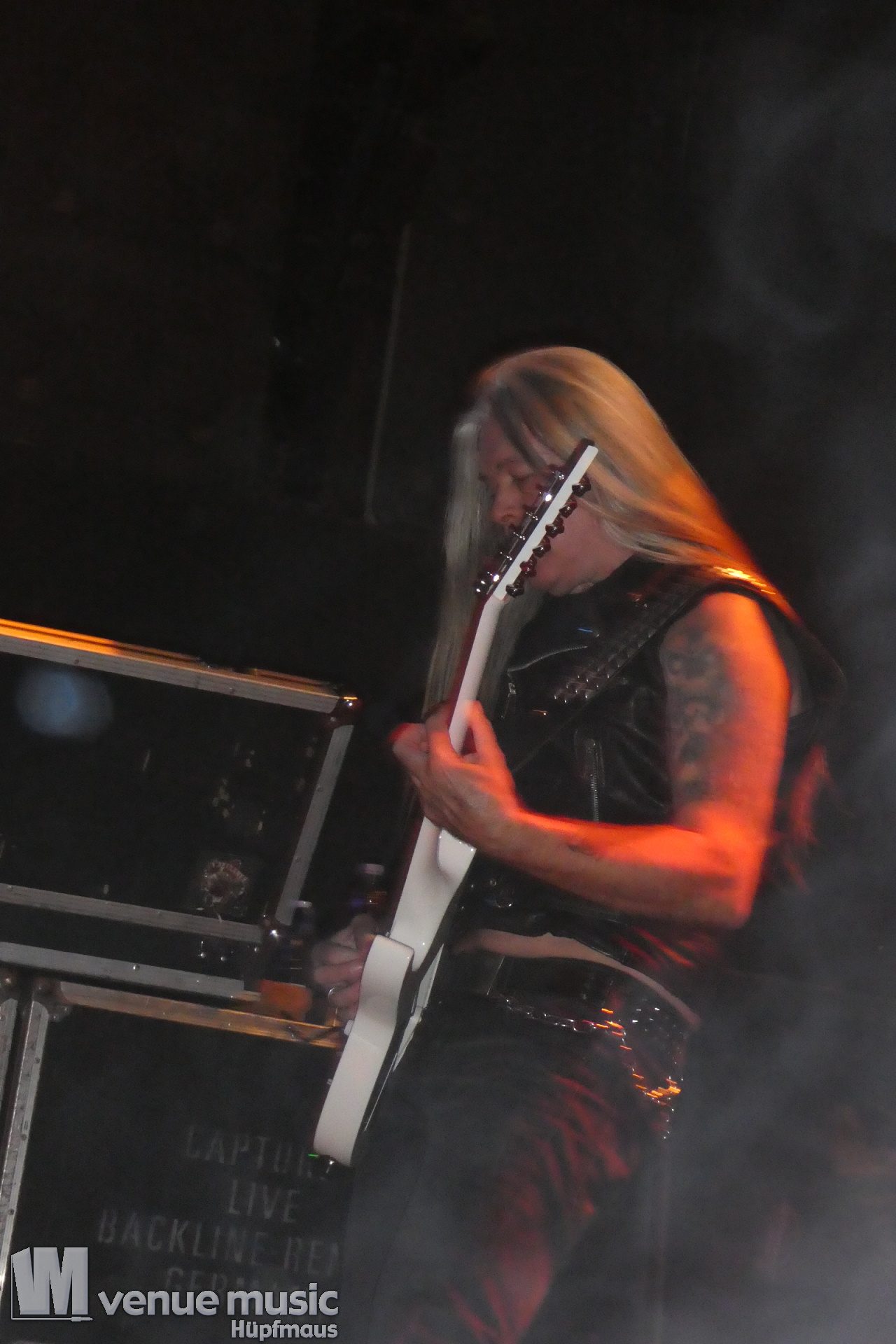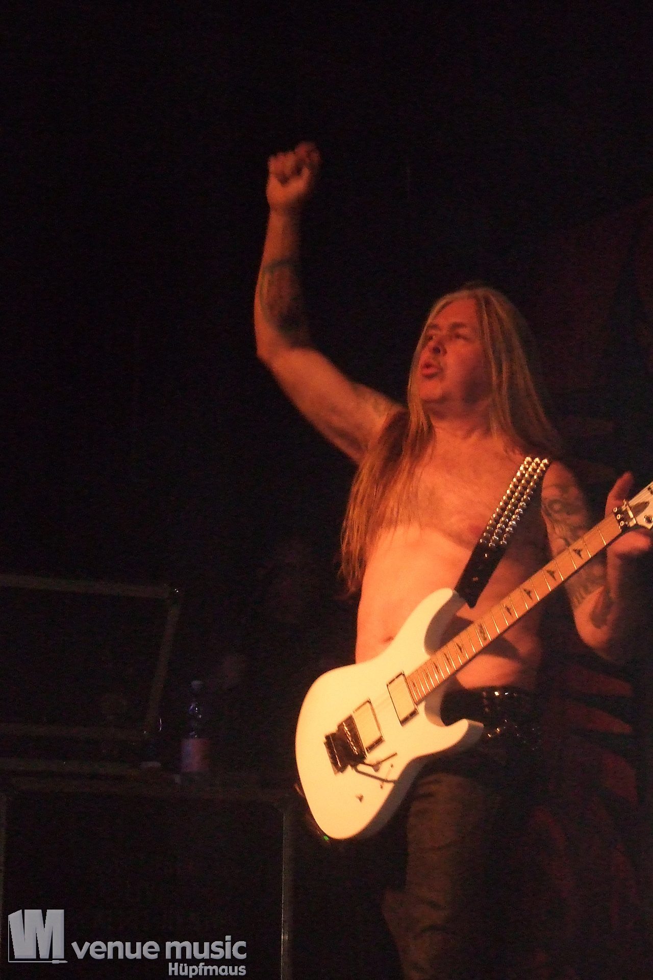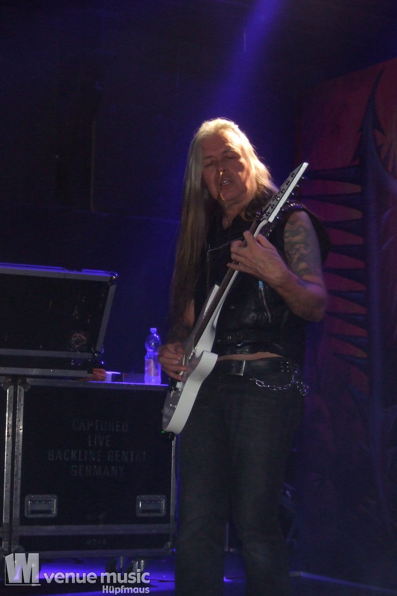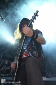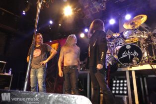 Um ca. 20.45 Uhr ging es dann weiter mit Sodom. Und da muss man sagen: das war grandios. Ziemlich genau 2 Stunden gab es einen Kracher nach dem anderen – manchmal auch auf Zuruf aus dem Publikum. „Das haben wir nicht geprobt, aber wir geben unser bestes“ – und was soll ich sagen: das rockte so richtig. Hier war nichts perfekt einstudiert, keine durchchoreografierte Show, aber das musste es auch nicht. Zack auf die Bühne ab dafür und Spaß haben – so muss das. Nah dran am Publikum (danke Tom für das Plec :) ) Musik noch so richtig zum Anfassen. Auch wenn sich anscheinend dann doch nicht (ich muss sagen zum Glück..) so viele zum Crowdsurfen animieren konnten… „früher gabs hier die geilsten Crowdsurfer – aber macht nichts kaputt“ so Tom Angelripper quasi als Aufforderung…