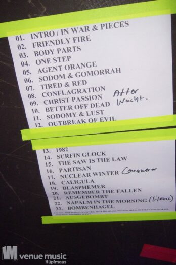 Und danach waren Traitor noch im Publikum zu finden, so dass wir uns die ergatterte Setlist und ein paar Fotos vom Rock Hard Festival 2018 bzw. von der Premiere der Doku „Total Thrash – The Teutonic Story“ unterschreiben lassen und mit den Jungs noch quatschen konnten. Die sind echt super nett, das war cool :) Vielen Dank dafür!