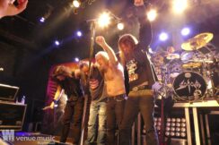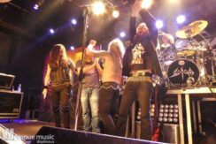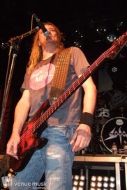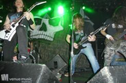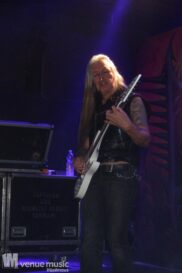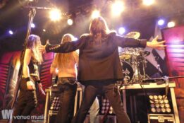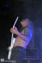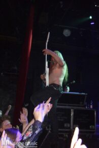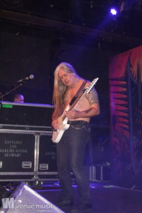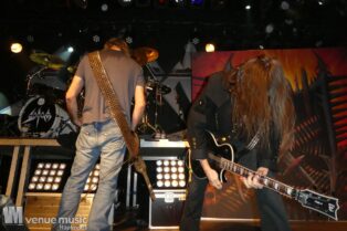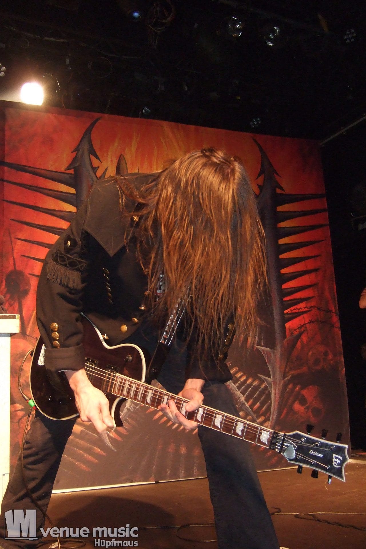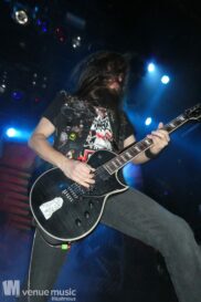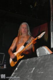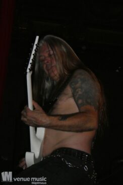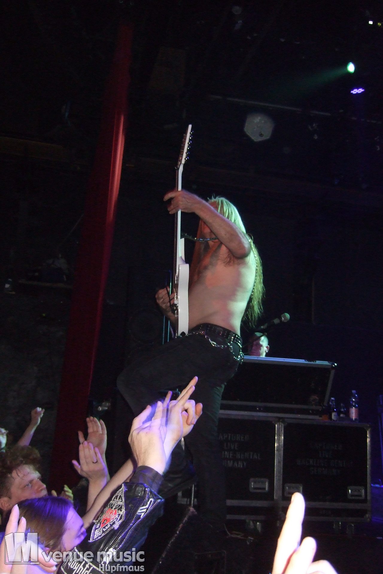 Es war verdammt heiß in der Halle, aber im Gegensatz zu Frank „Blackfire“ kam „Onkel Tom“ (das Projekt liegt übrigens grade auf Eis, wie Tom sagte – sehr schade…) den „Ausziehen“-Rufen nicht nach. Das T-Shirt blieb an ;) dafür gabs dann mehrfach eine Mineralwasserdusche… Und ein paar Glückliche bekamen zwischendrin immer mal ein Bier von der Bühne in die Hand gedrückt. Das nennt man Service ;)
