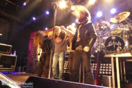 Der Sound war auch inzwischen wesentlich besser, Gesang, Gitarre, Bass, Schlagezeug – alles war zu hören. Und dass die Jungs seit einiger Zeit zu viert auf der Bühne sind, ist auch richtig geil. Da ist direkt noch mehr Druck auf dem Kessel. Ich kann gar nicht sagen, welcher Song der geilste war. Dafür jagte ein Klassiker den nächsten. Schade nur, dass „Ausgebombt“ wie so oft auf Deutsch kam, denn irgendwie ist die englische Fassung besser. Aber das nur eine kleine Anmerkung am Rande.