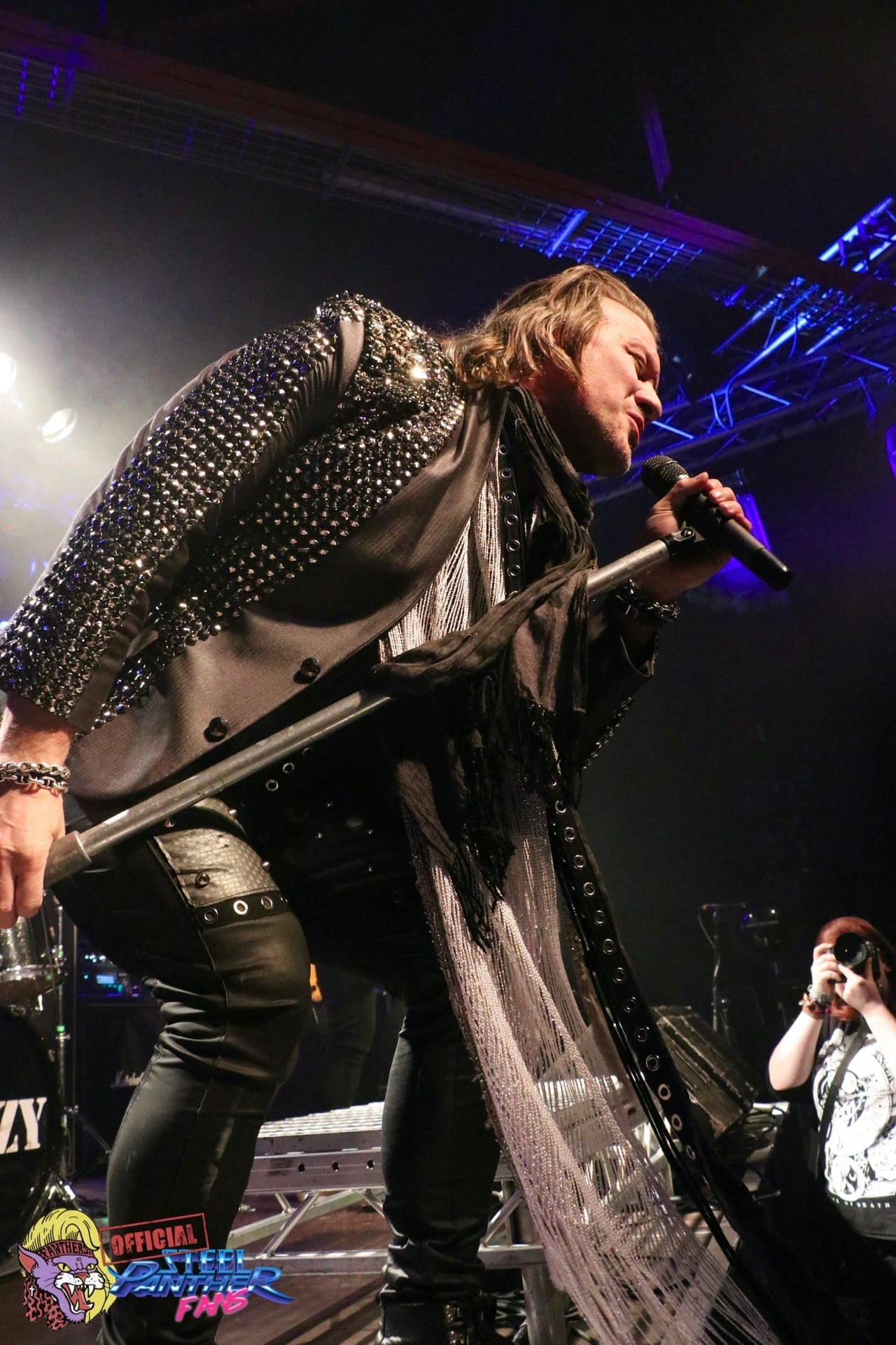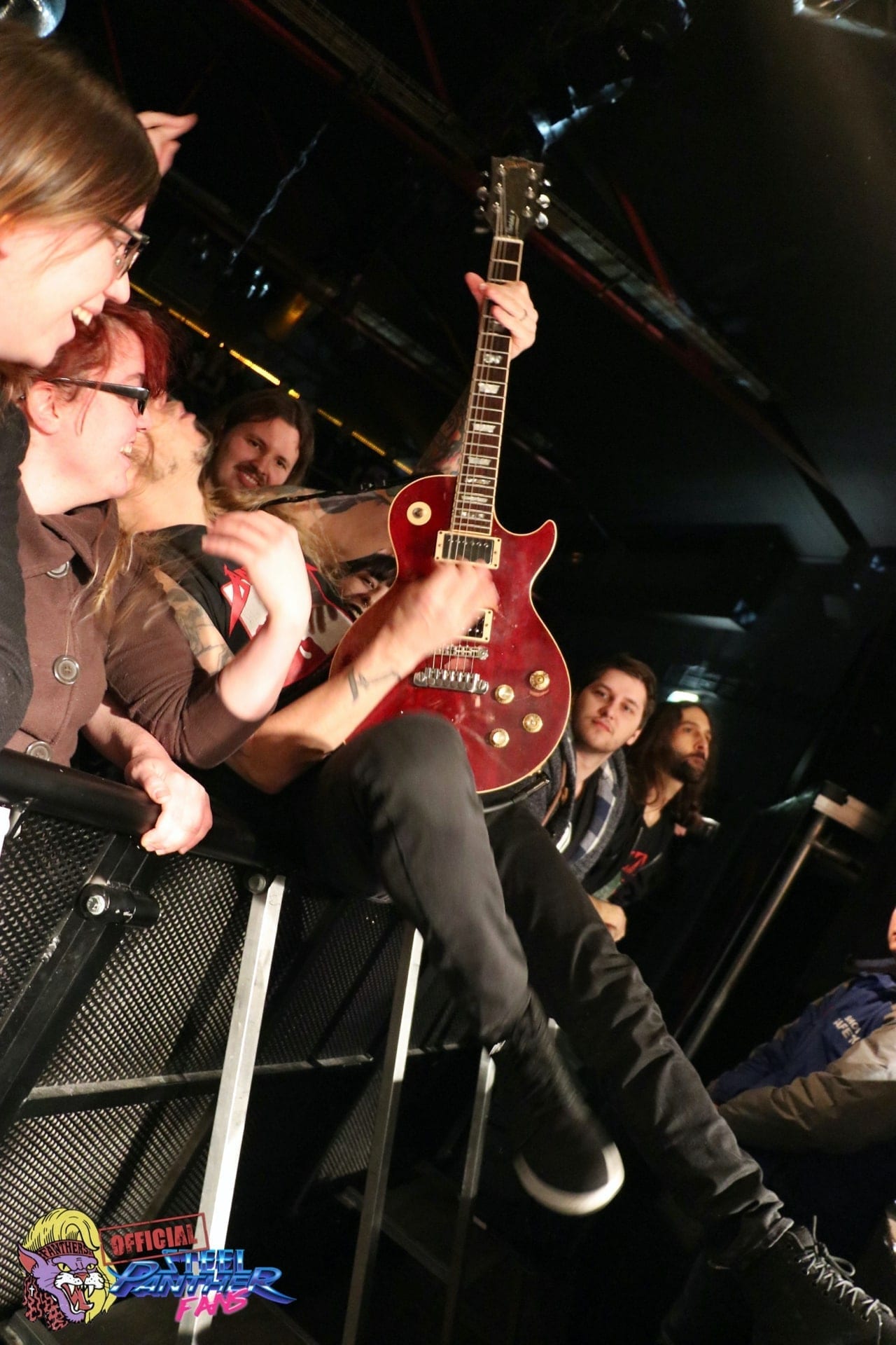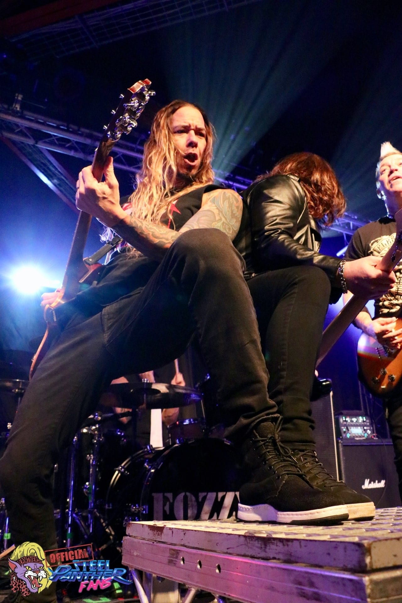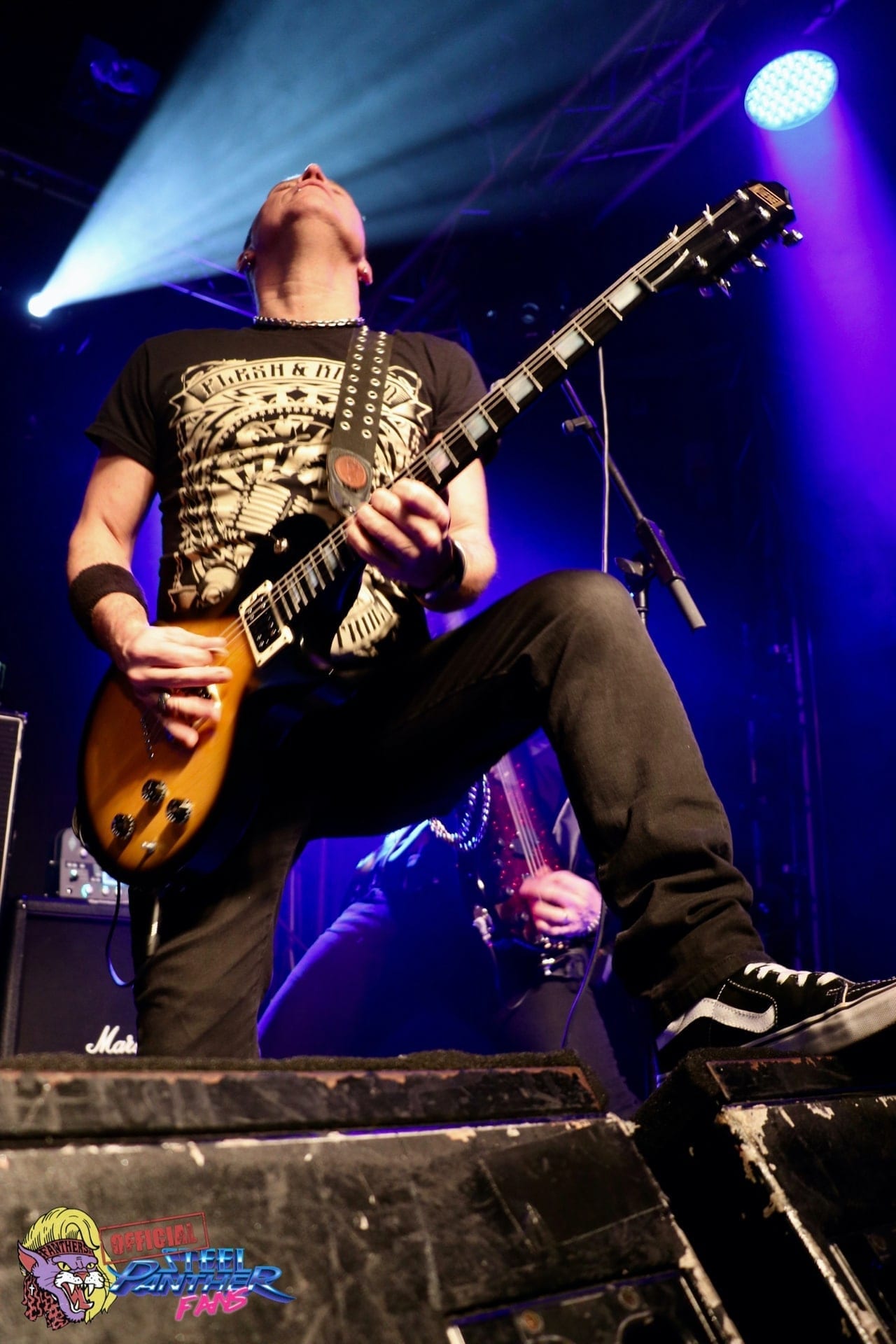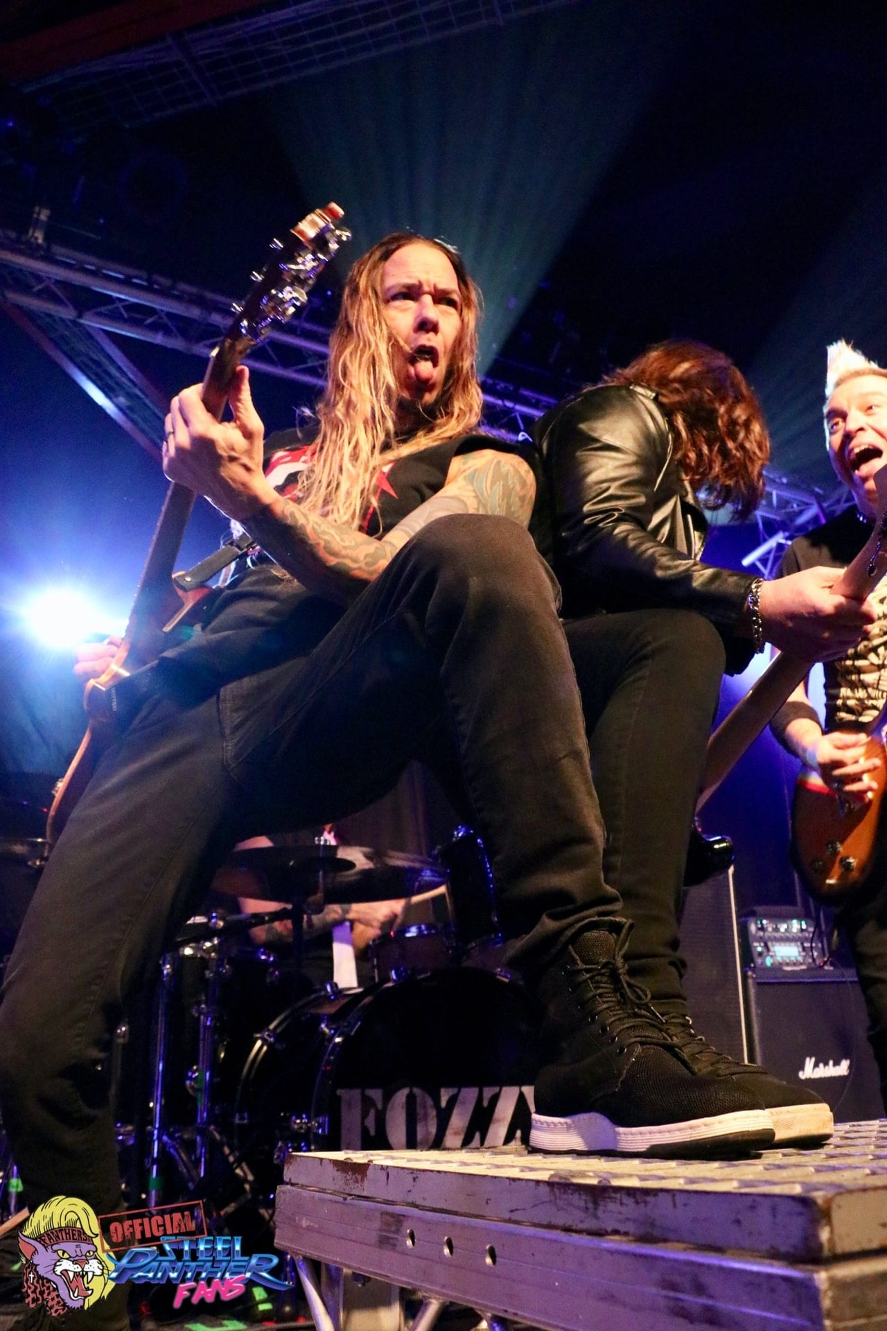 Im Vergleich zur Show im L’Olympia in Paris ging es im Den Atelier gleich eine ganze Portion gemütlicher zu – zumindest was die Hallengröße angeht. Denn die Musiker waren alles andere als gechillt. Die rissen alle sprichwörtlich die Bühne ab. Den Opener machten wieder FOZZY und dank sehr schmal gehaltenem Bühnengraben, waren wir mittendrin statt zu dabei. Da kam es auch mal vor, dass Rich Ward (ihr erinnert euch vielleicht, dass er sich in Paris schon nicht bremsen konnte) in den Graben sprang, um die Front-Row zu bekuscheln oder um auf einem Gitarrenkoffer über die Köpfe der Fans zu surfen. Gitarre spielend versteht sich ;-) Ich bekam im Graben auch noch ein paar Kuscheleinheiten ab – vielen Dank dafür. Kaum fertig verschnauft und vom Schock erholt waren auch schon Steel Panther an der Reihe, die auf der kleineren Bühne, zwar keine akrobatischen Kunststückchen zeigen konnten, aber dennoch bei „17 Girls In A Row“ die Bühne bis zum Anschlag mit mehr oder weniger bekleideten Damen füllten. Das Publikum feierte die Jungs und die Show war wie immer zu kurz. Auch „Er hat einen kleinen Schwanz“-Gesänge, konnten die Jungs nicht aufhalten. Die Fotos wurden wie auch schon die aus Paris von mir für den offiziellen Steel Panther Fan Club „Fanthers Worldwide“ gemacht.