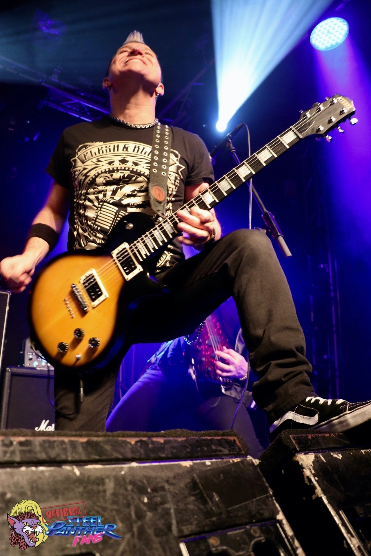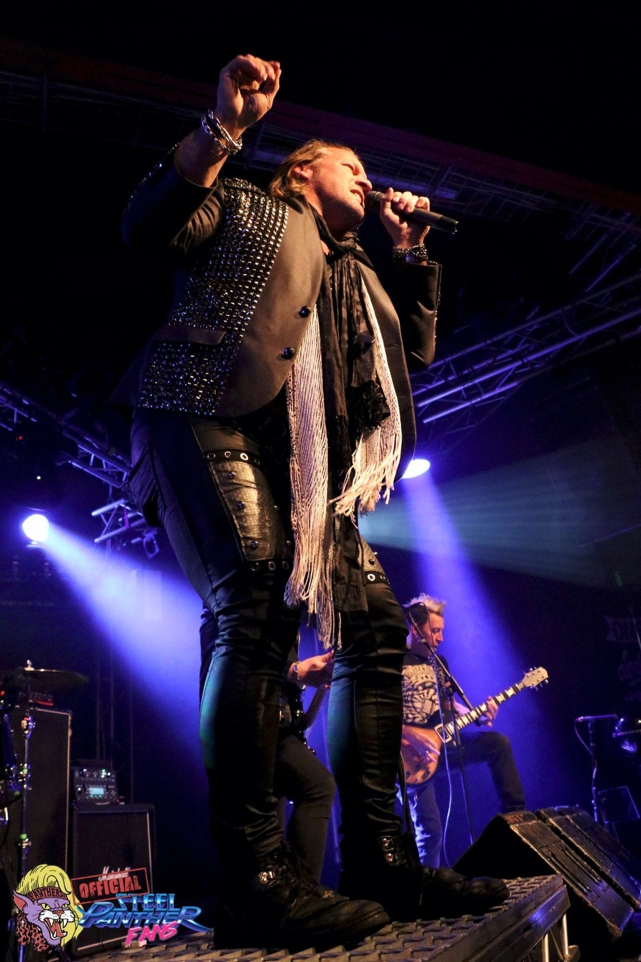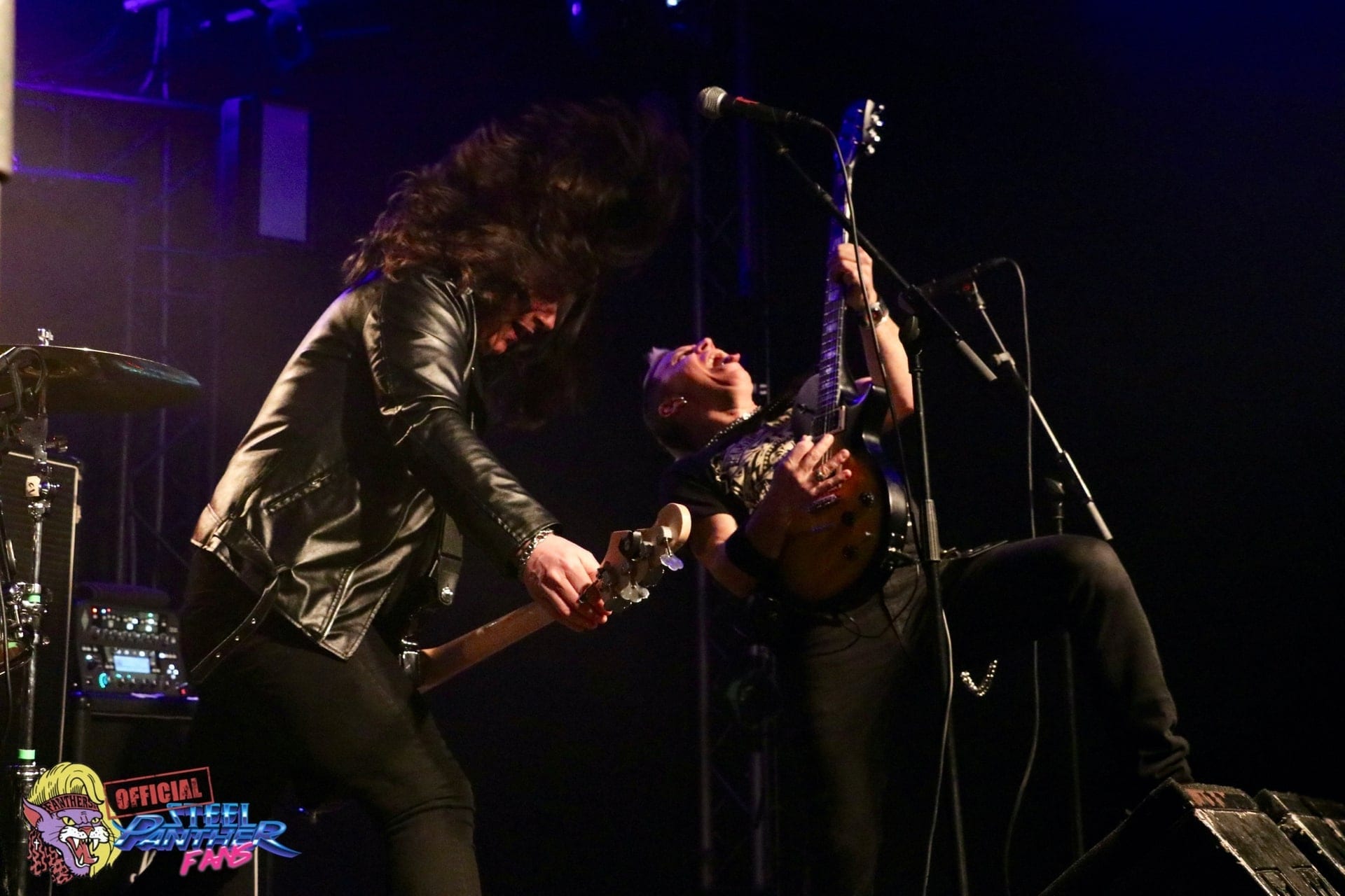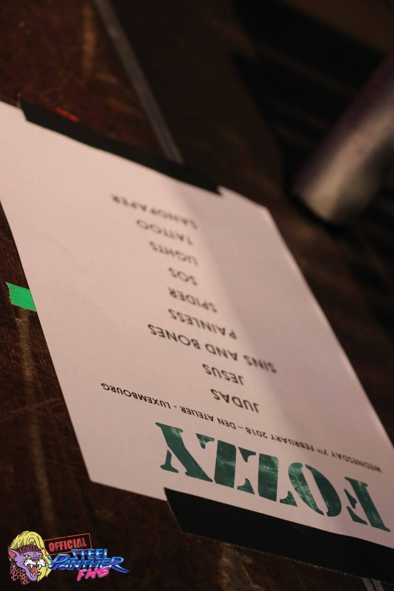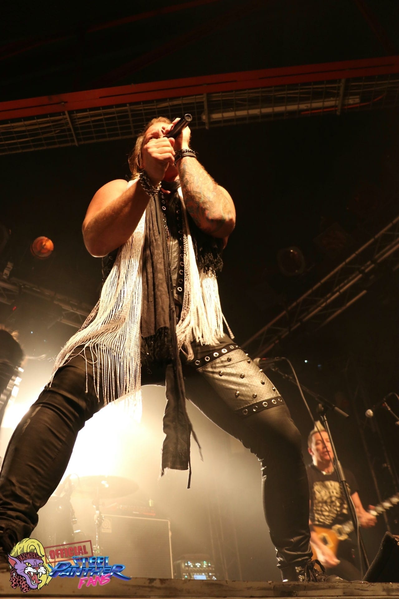 Im Vergleich zur Show im L’Olympia in Paris ging es im Den Atelier gleich eine ganze Portion gemütlicher zu – zumindest was die Hallengröße angeht. Denn die Musiker waren alles andere als gechillt. Die rissen alle sprichwörtlich die Bühne ab. Den Opener machten wieder FOZZY und dank sehr schmal gehaltenem Bühnengraben, waren wir mittendrin statt zu dabei. Da kam es auch mal vor, dass Rich Ward (ihr erinnert euch vielleicht, dass er sich in Paris schon nicht bremsen konnte) in den Graben sprang, um die Front-Row zu bekuscheln oder um auf einem Gitarrenkoffer über die Köpfe der Fans zu surfen. Gitarre spielend versteht sich ;-) Ich bekam im Graben auch noch ein paar Kuscheleinheiten ab – vielen Dank dafür. Kaum fertig verschnauft und vom Schock erholt waren auch schon Steel Panther an der Reihe, die auf der kleineren Bühne, zwar keine akrobatischen Kunststückchen zeigen konnten, aber dennoch bei „17 Girls In A Row“ die Bühne bis zum Anschlag mit mehr oder weniger bekleideten Damen füllten. Das Publikum feierte die Jungs und die Show war wie immer zu kurz. Auch „Er hat einen kleinen Schwanz“-Gesänge, konnten die Jungs nicht aufhalten. Die Fotos wurden wie auch schon die aus Paris von mir für den offiziellen Steel Panther Fan Club „Fanthers Worldwide“ gemacht.