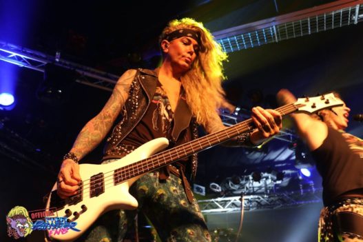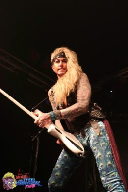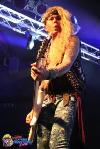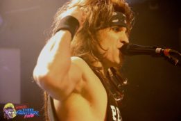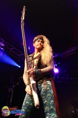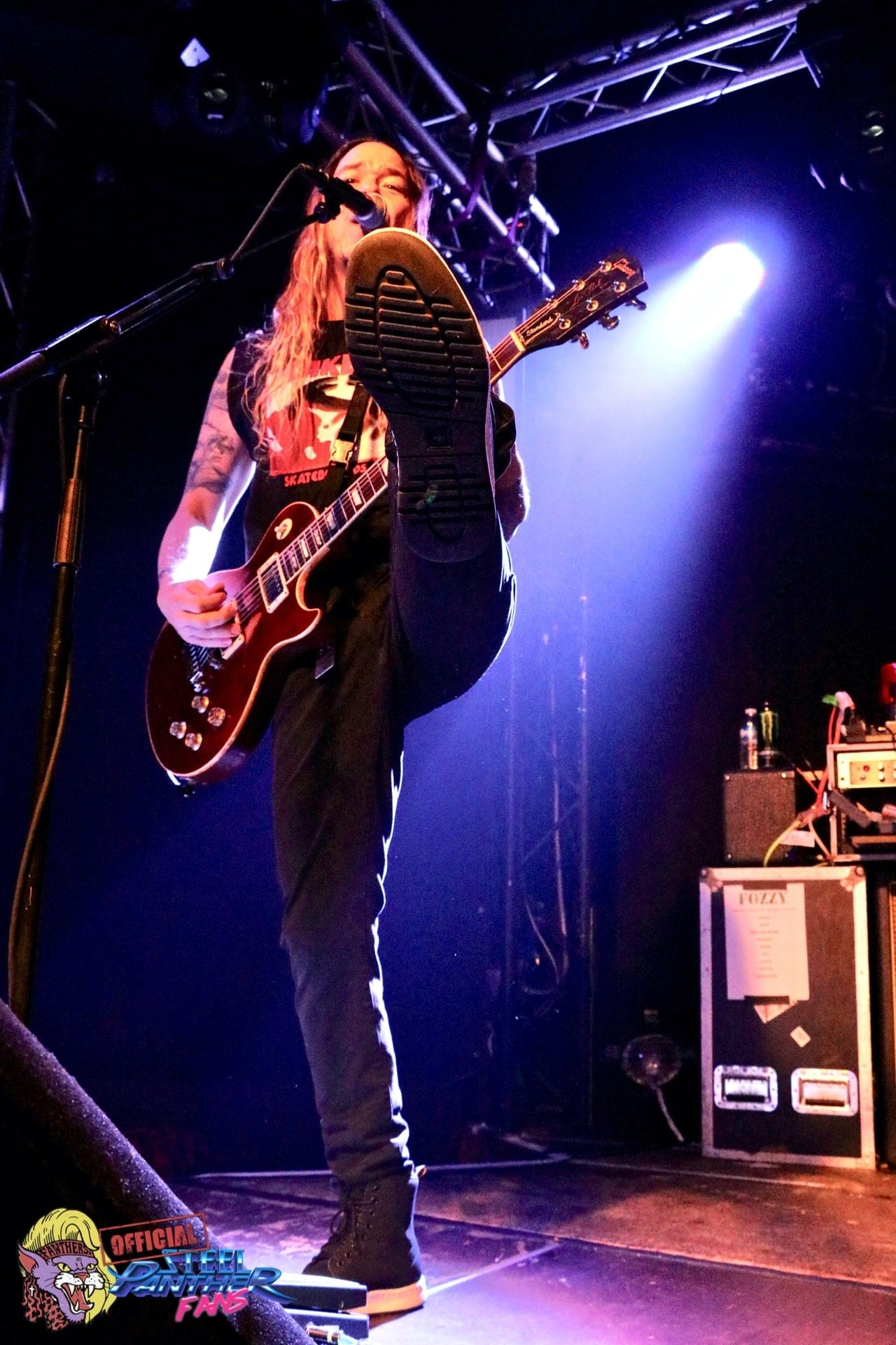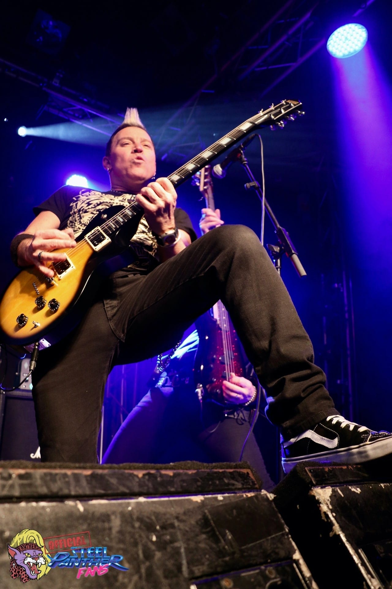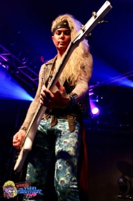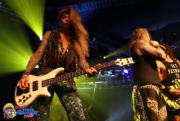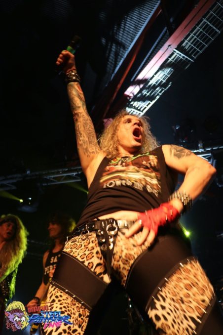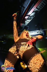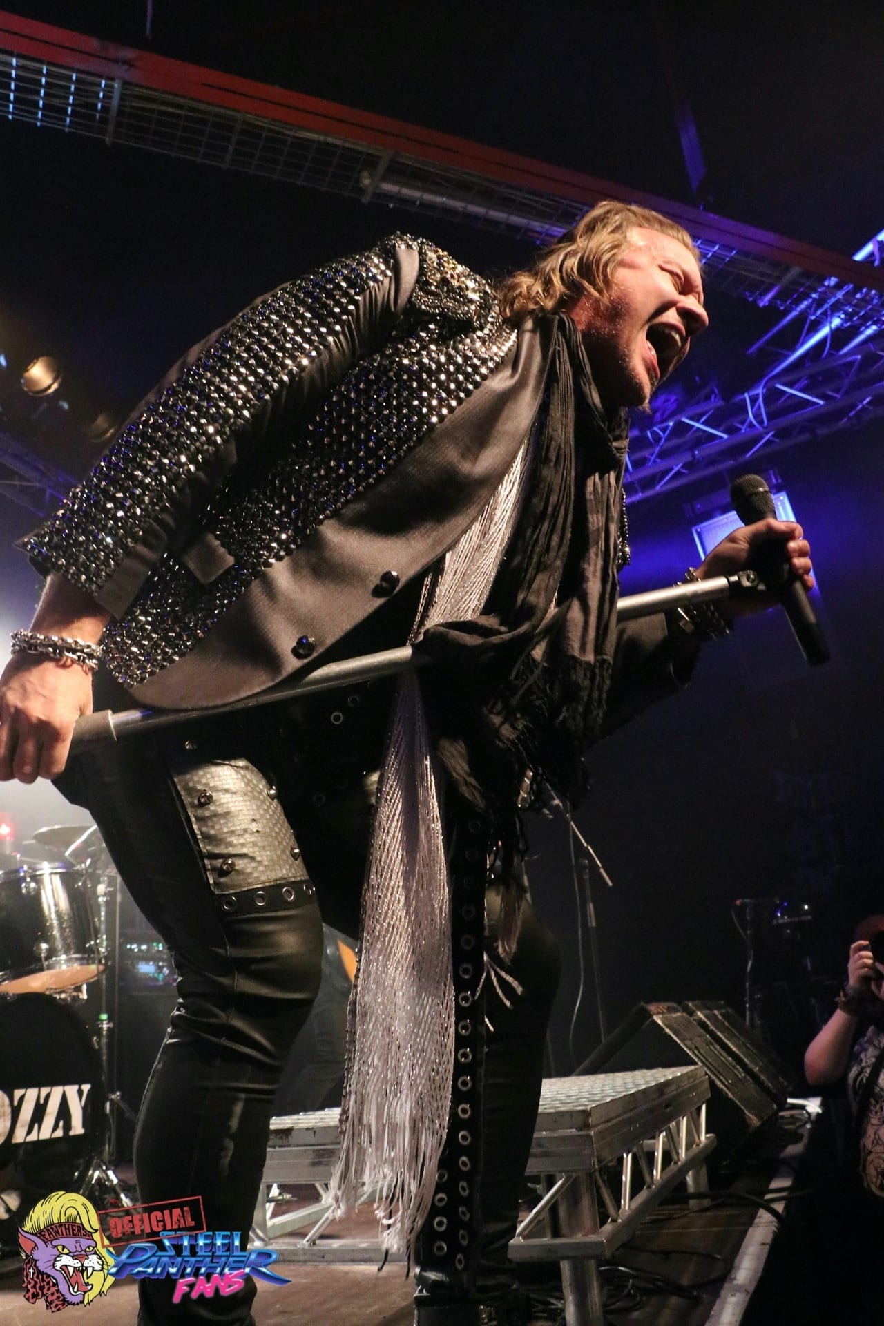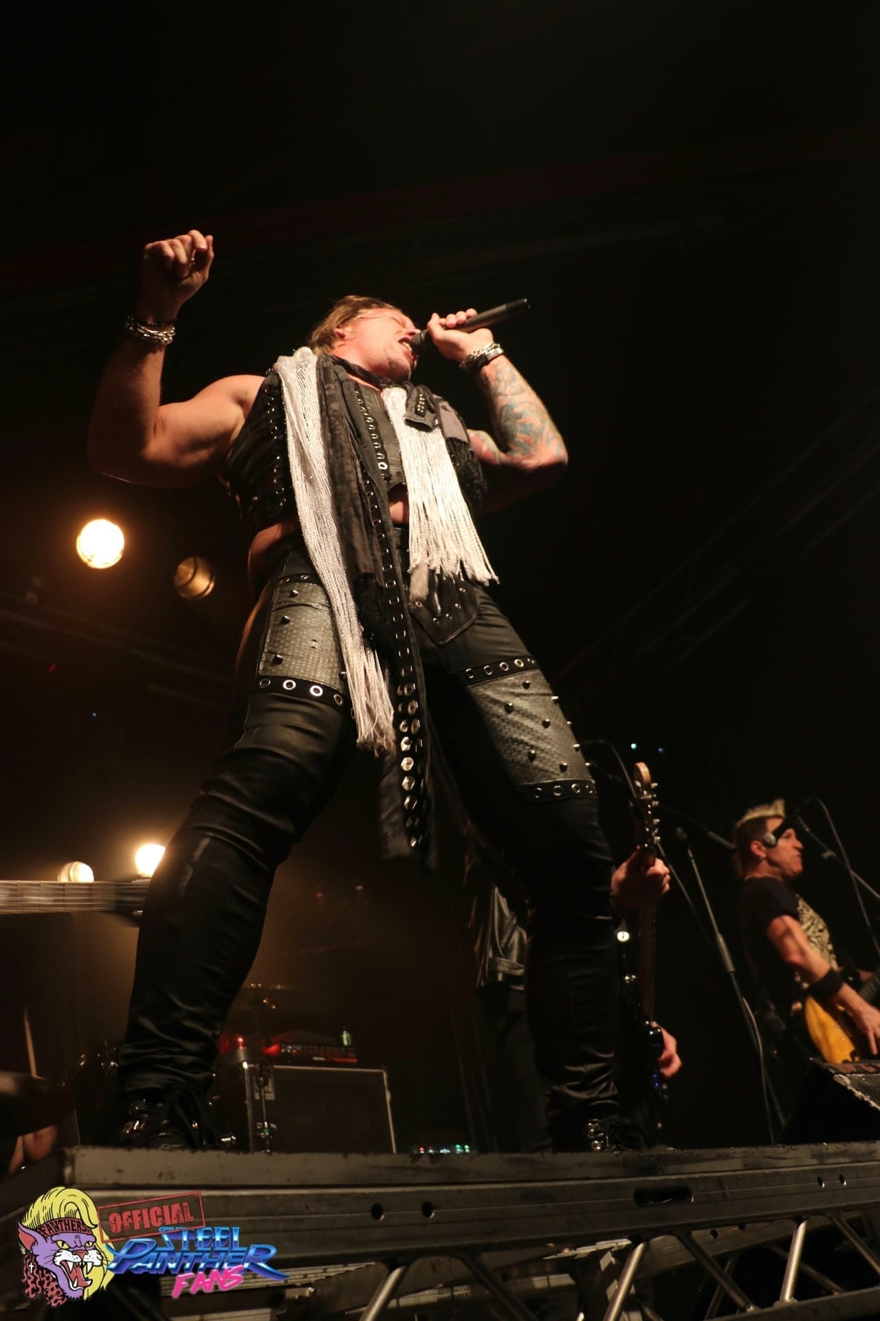 Im Vergleich zur Show im L’Olympia in Paris ging es im Den Atelier gleich eine ganze Portion gemütlicher zu – zumindest was die Hallengröße angeht. Denn die Musiker waren alles andere als gechillt. Die rissen alle sprichwörtlich die Bühne ab. Den Opener machten wieder FOZZY und dank sehr schmal gehaltenem Bühnengraben, waren wir mittendrin statt zu dabei. Da kam es auch mal vor, dass Rich Ward (ihr erinnert euch vielleicht, dass er sich in Paris schon nicht bremsen konnte) in den Graben sprang, um die Front-Row zu bekuscheln oder um auf einem Gitarrenkoffer über die Köpfe der Fans zu surfen. Gitarre spielend versteht sich ;-) Ich bekam im Graben auch noch ein paar Kuscheleinheiten ab – vielen Dank dafür. Kaum fertig verschnauft und vom Schock erholt waren auch schon Steel Panther an der Reihe, die auf der kleineren Bühne, zwar keine akrobatischen Kunststückchen zeigen konnten, aber dennoch bei „17 Girls In A Row“ die Bühne bis zum Anschlag mit mehr oder weniger bekleideten Damen füllten. Das Publikum feierte die Jungs und die Show war wie immer zu kurz. Auch „Er hat einen kleinen Schwanz“-Gesänge, konnten die Jungs nicht aufhalten. Die Fotos wurden wie auch schon die aus Paris von mir für den offiziellen Steel Panther Fan Club „Fanthers Worldwide“ gemacht.