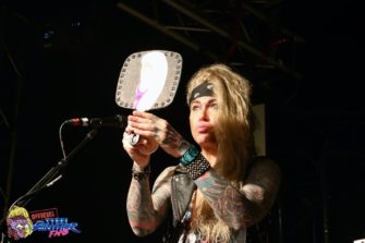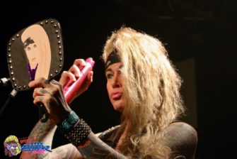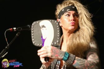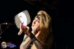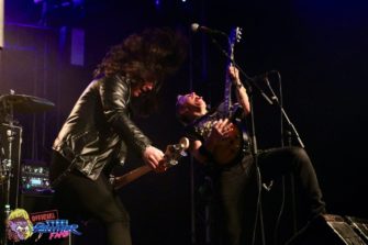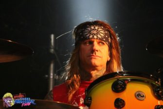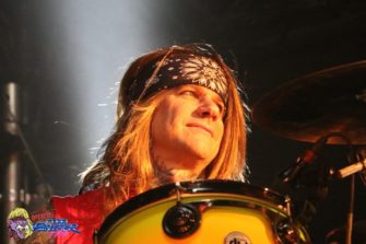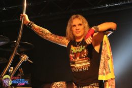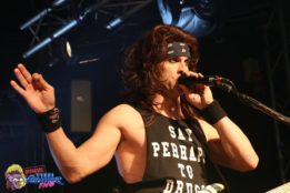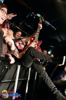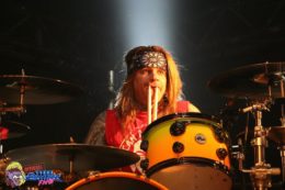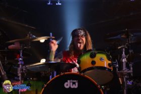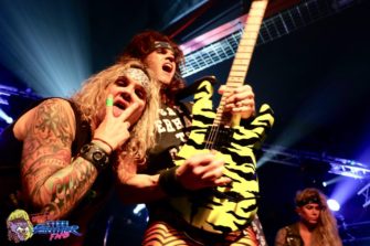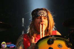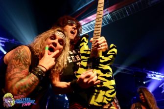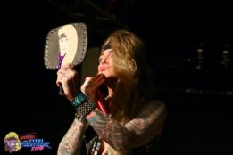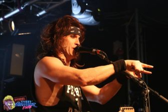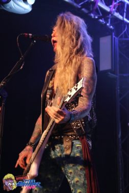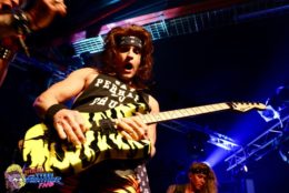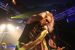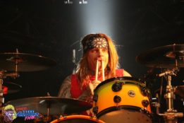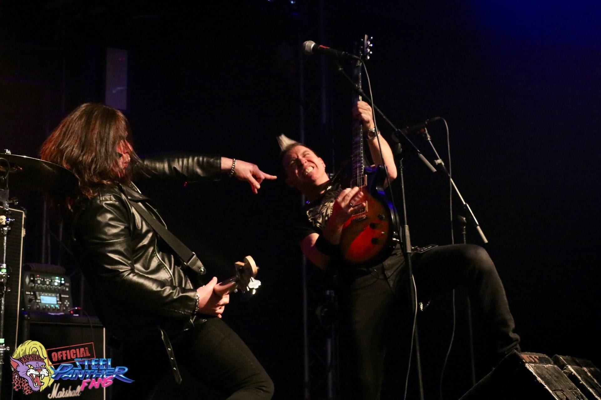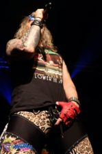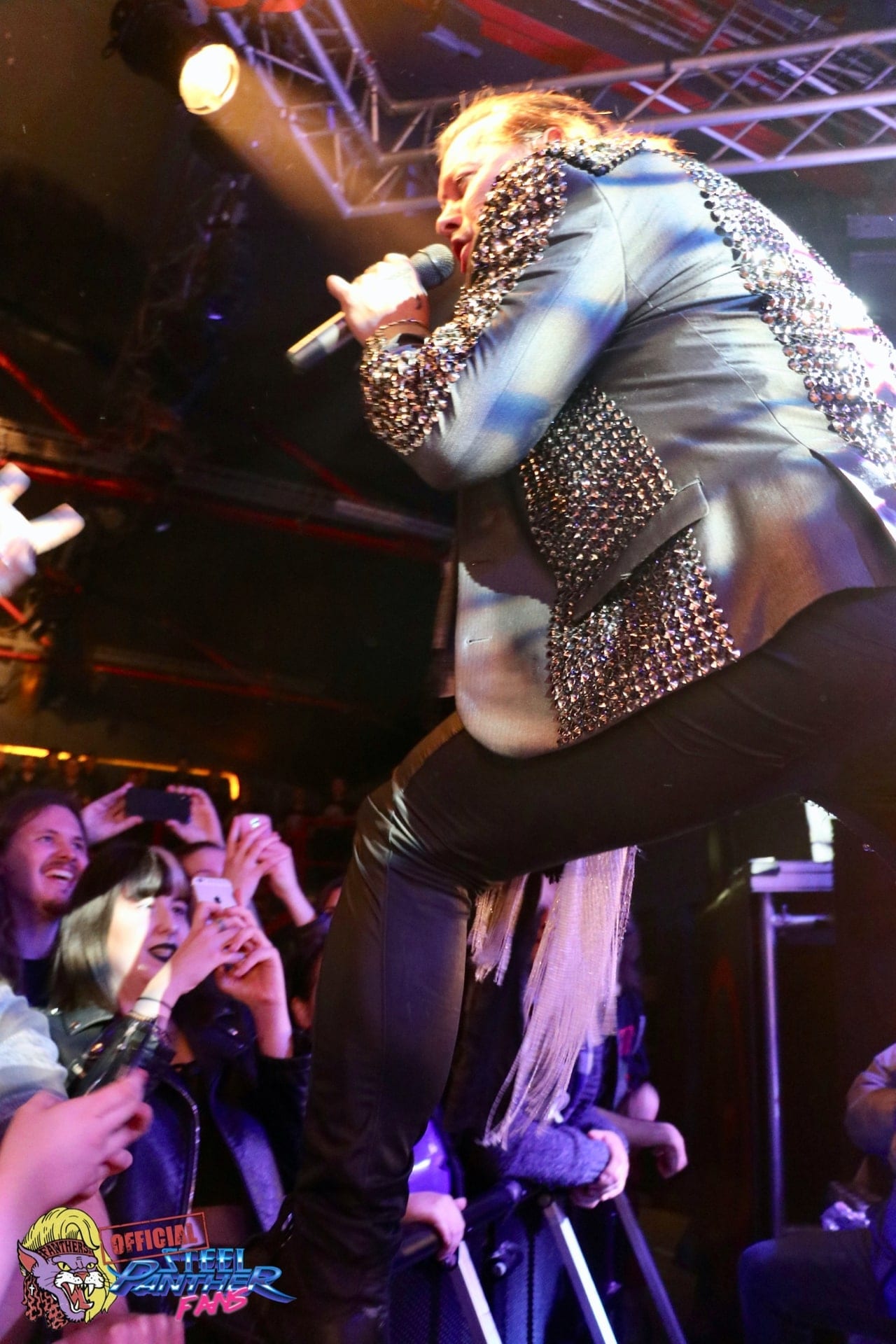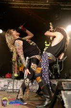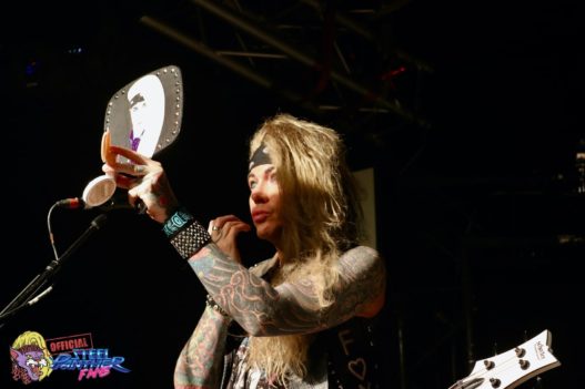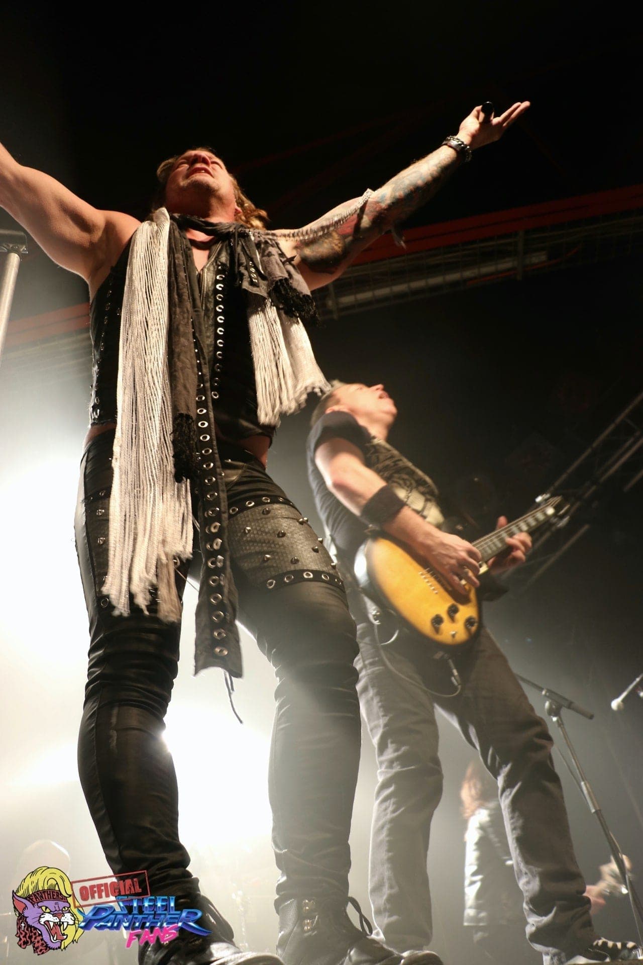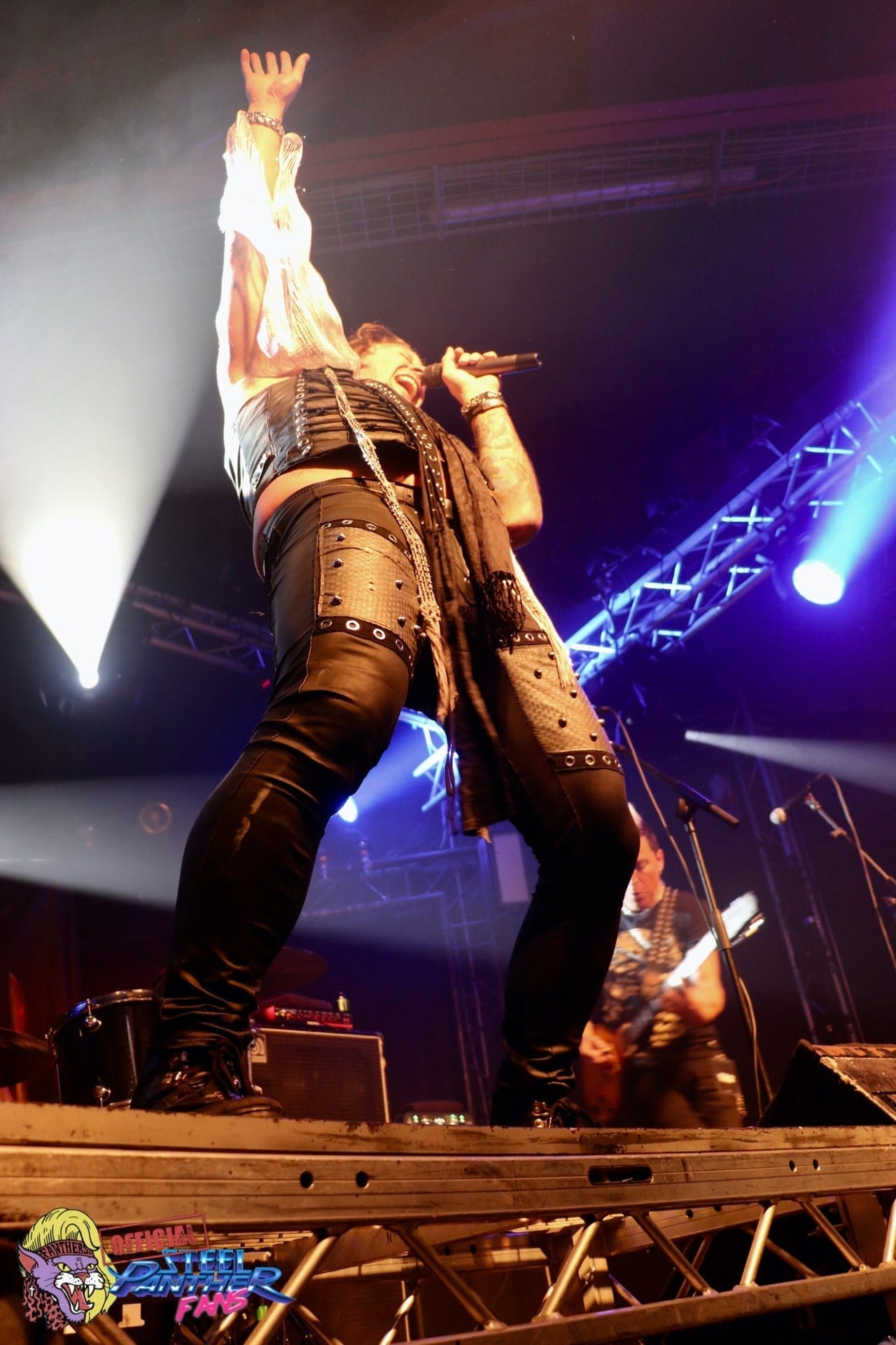 Im Vergleich zur Show im L’Olympia in Paris ging es im Den Atelier gleich eine ganze Portion gemütlicher zu – zumindest was die Hallengröße angeht. Denn die Musiker waren alles andere als gechillt. Die rissen alle sprichwörtlich die Bühne ab. Den Opener machten wieder FOZZY und dank sehr schmal gehaltenem Bühnengraben, waren wir mittendrin statt zu dabei. Da kam es auch mal vor, dass Rich Ward (ihr erinnert euch vielleicht, dass er sich in Paris schon nicht bremsen konnte) in den Graben sprang, um die Front-Row zu bekuscheln oder um auf einem Gitarrenkoffer über die Köpfe der Fans zu surfen. Gitarre spielend versteht sich ;-) Ich bekam im Graben auch noch ein paar Kuscheleinheiten ab – vielen Dank dafür. Kaum fertig verschnauft und vom Schock erholt waren auch schon Steel Panther an der Reihe, die auf der kleineren Bühne, zwar keine akrobatischen Kunststückchen zeigen konnten, aber dennoch bei „17 Girls In A Row“ die Bühne bis zum Anschlag mit mehr oder weniger bekleideten Damen füllten. Das Publikum feierte die Jungs und die Show war wie immer zu kurz. Auch „Er hat einen kleinen Schwanz“-Gesänge, konnten die Jungs nicht aufhalten. Die Fotos wurden wie auch schon die aus Paris von mir für den offiziellen Steel Panther Fan Club „Fanthers Worldwide“ gemacht.