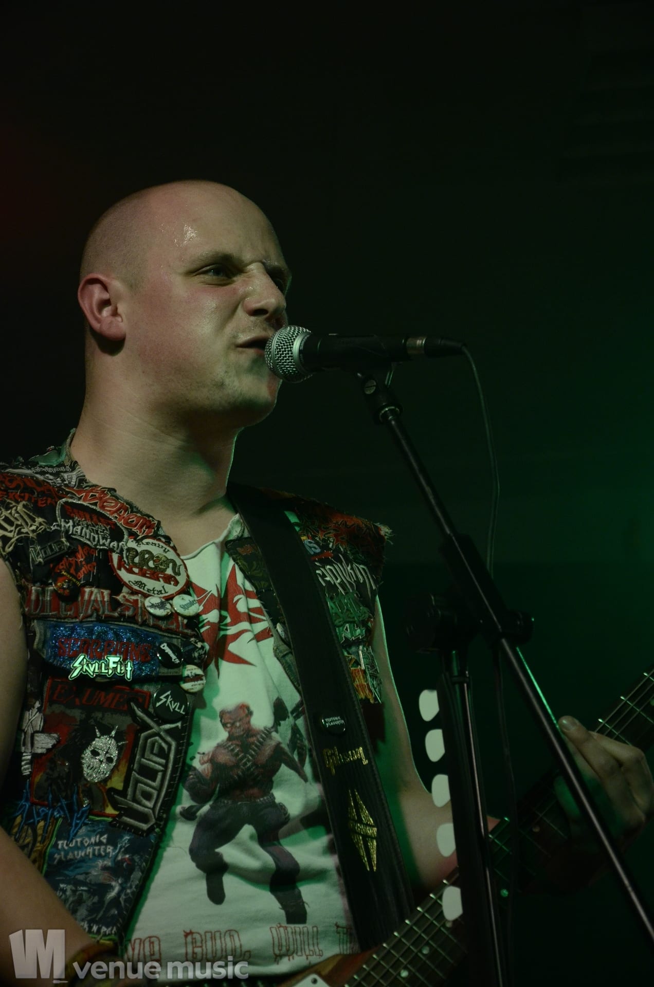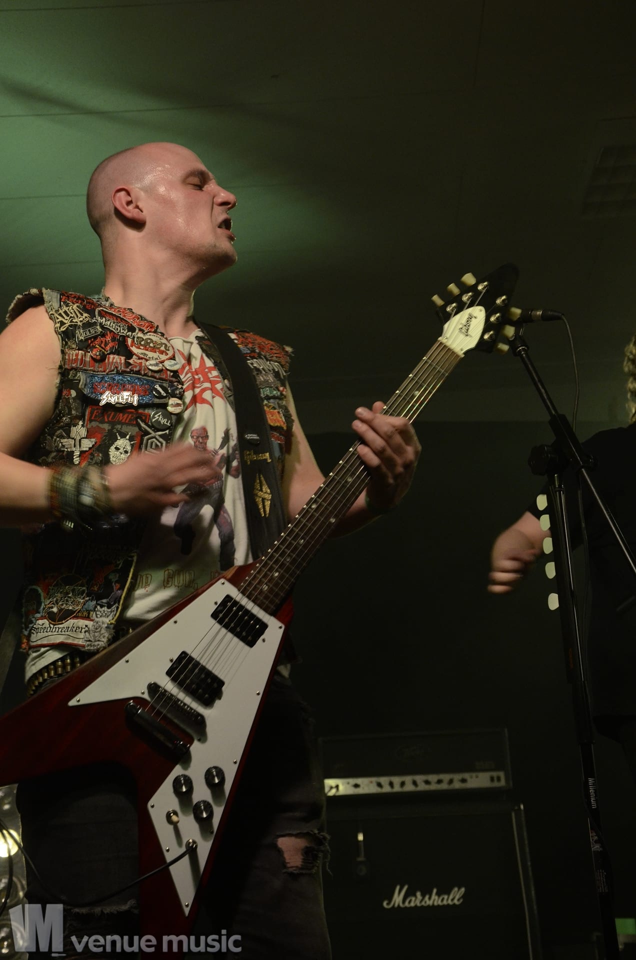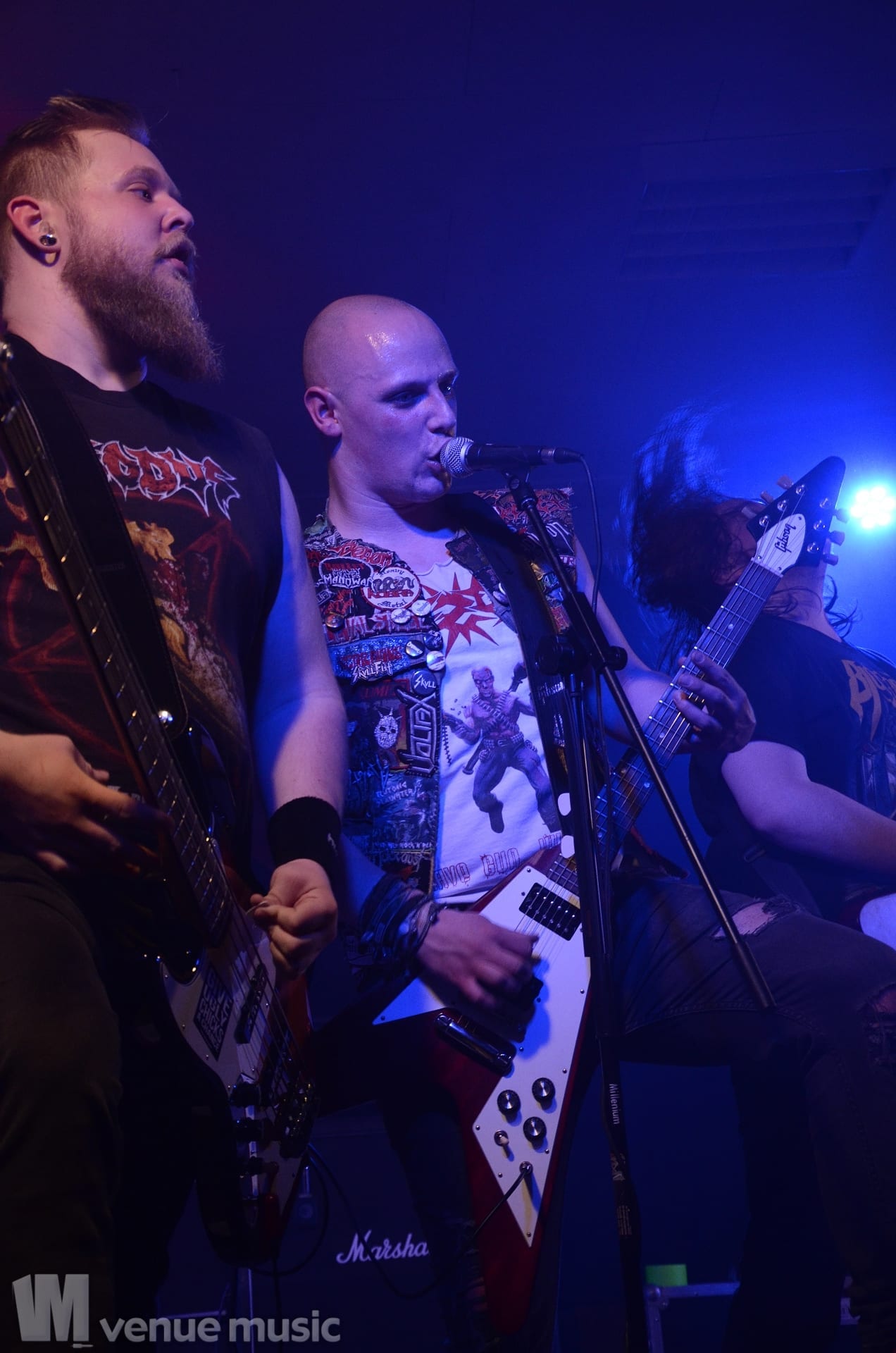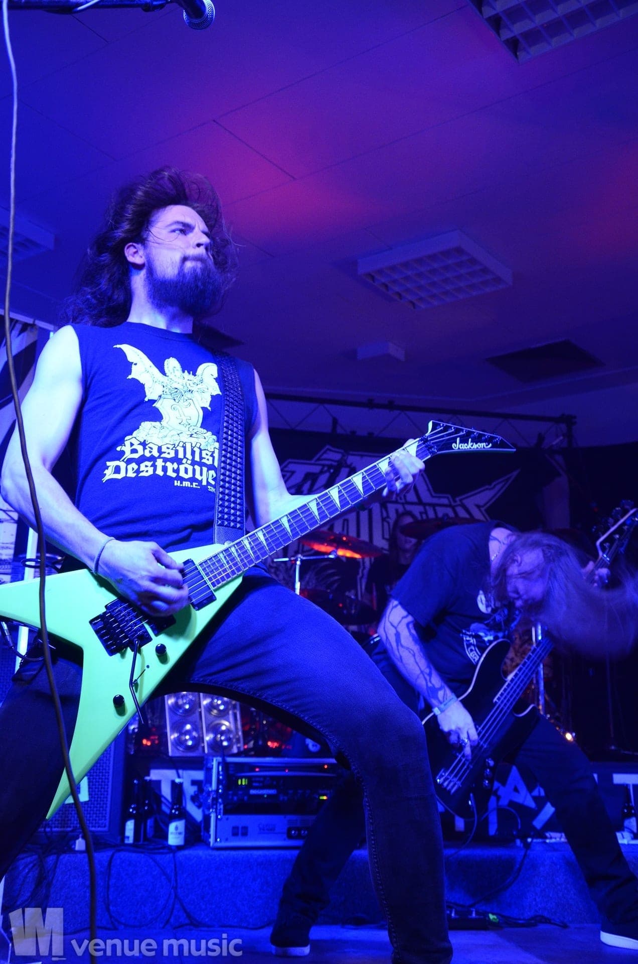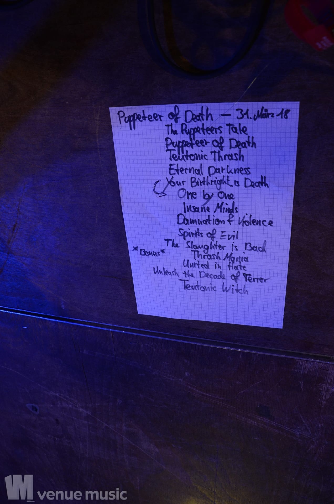 Dann folgte aber der Hauptact: Teutonic Slaughter, die ihr komplettes neues Album „Puppeteer of Death“ live präsentierten. Natürlich konnten die Fans da noch nicht textsicher mitsingen, aber zum Headbangen ist das schließlich auch kein Muss.