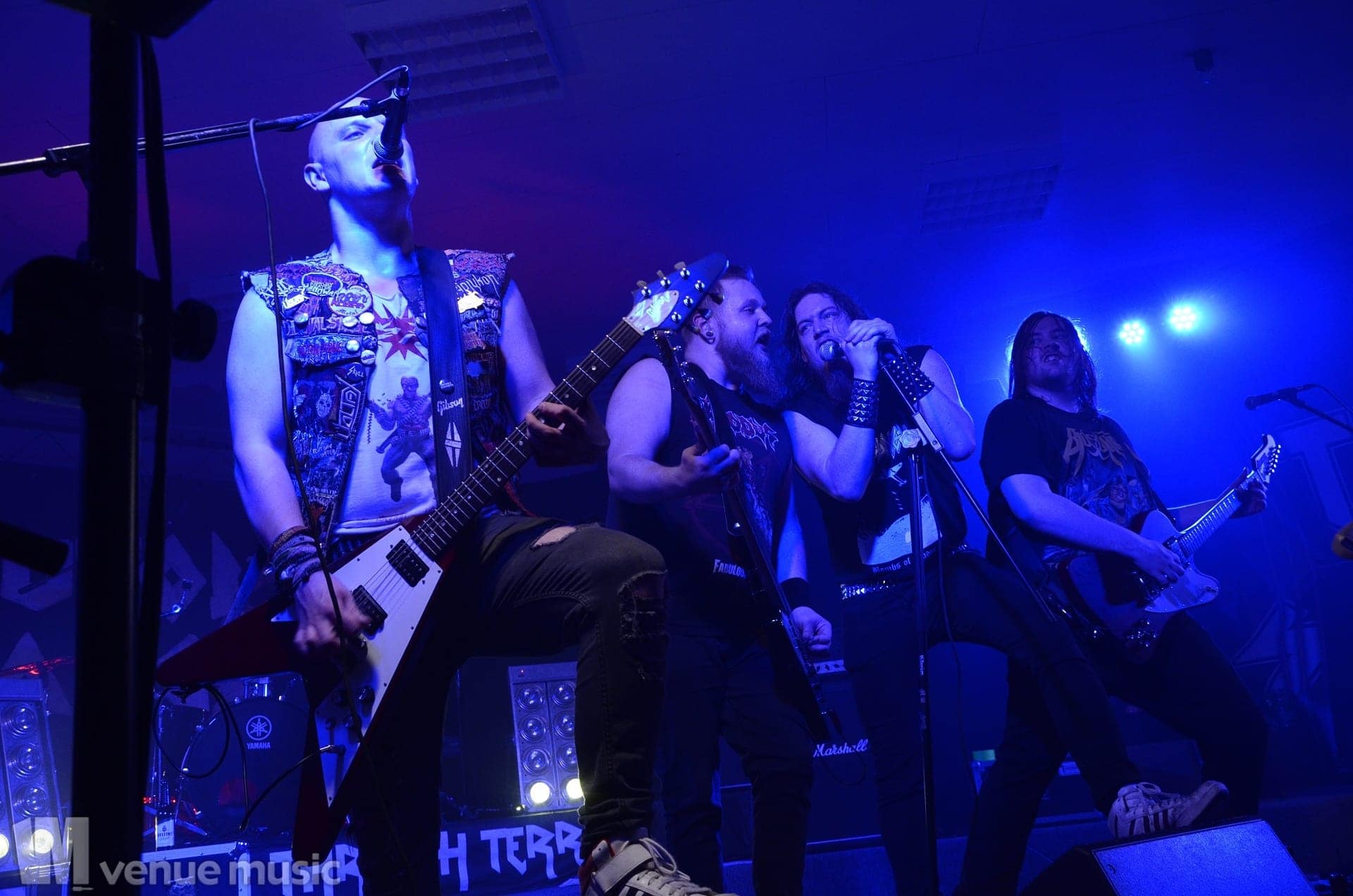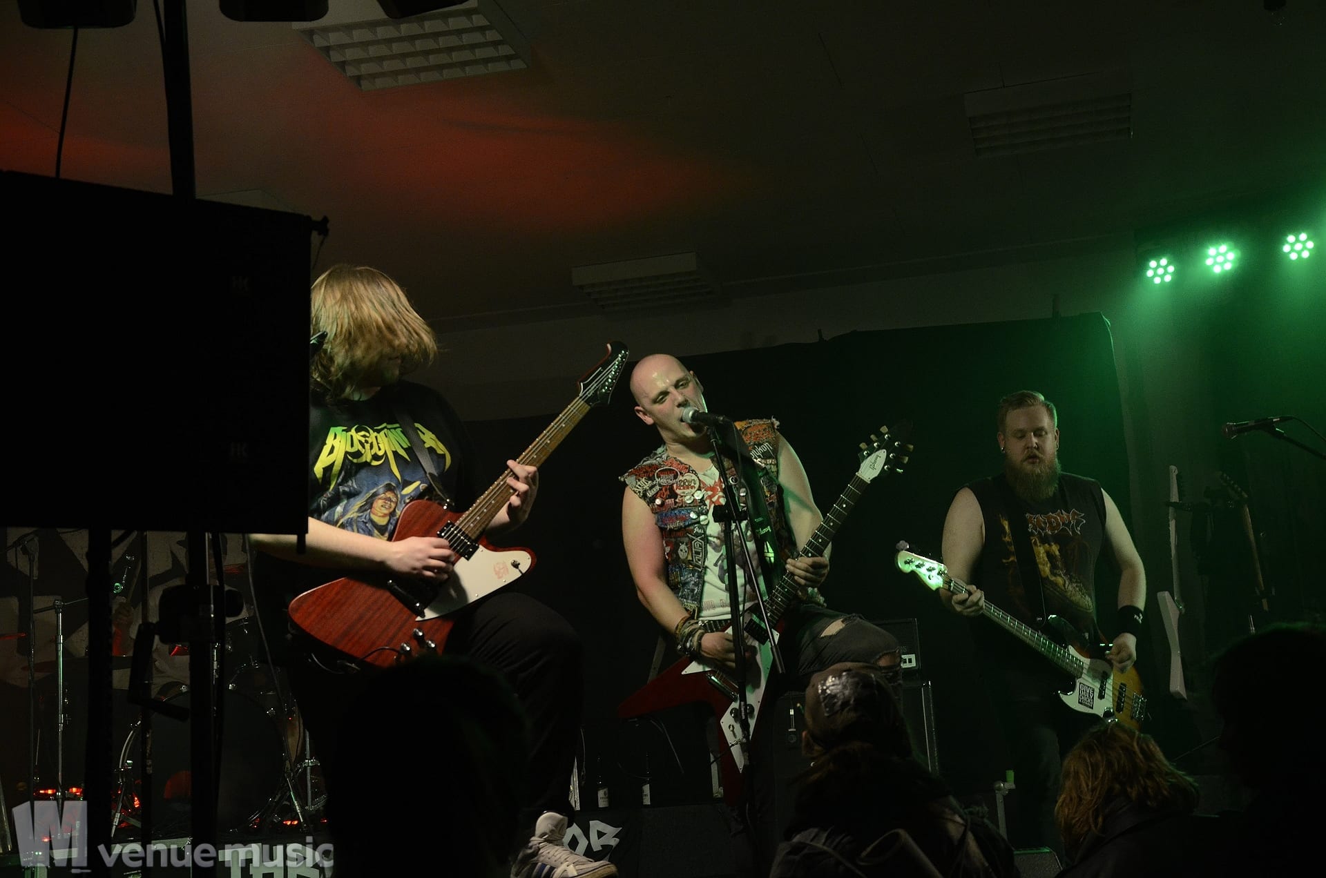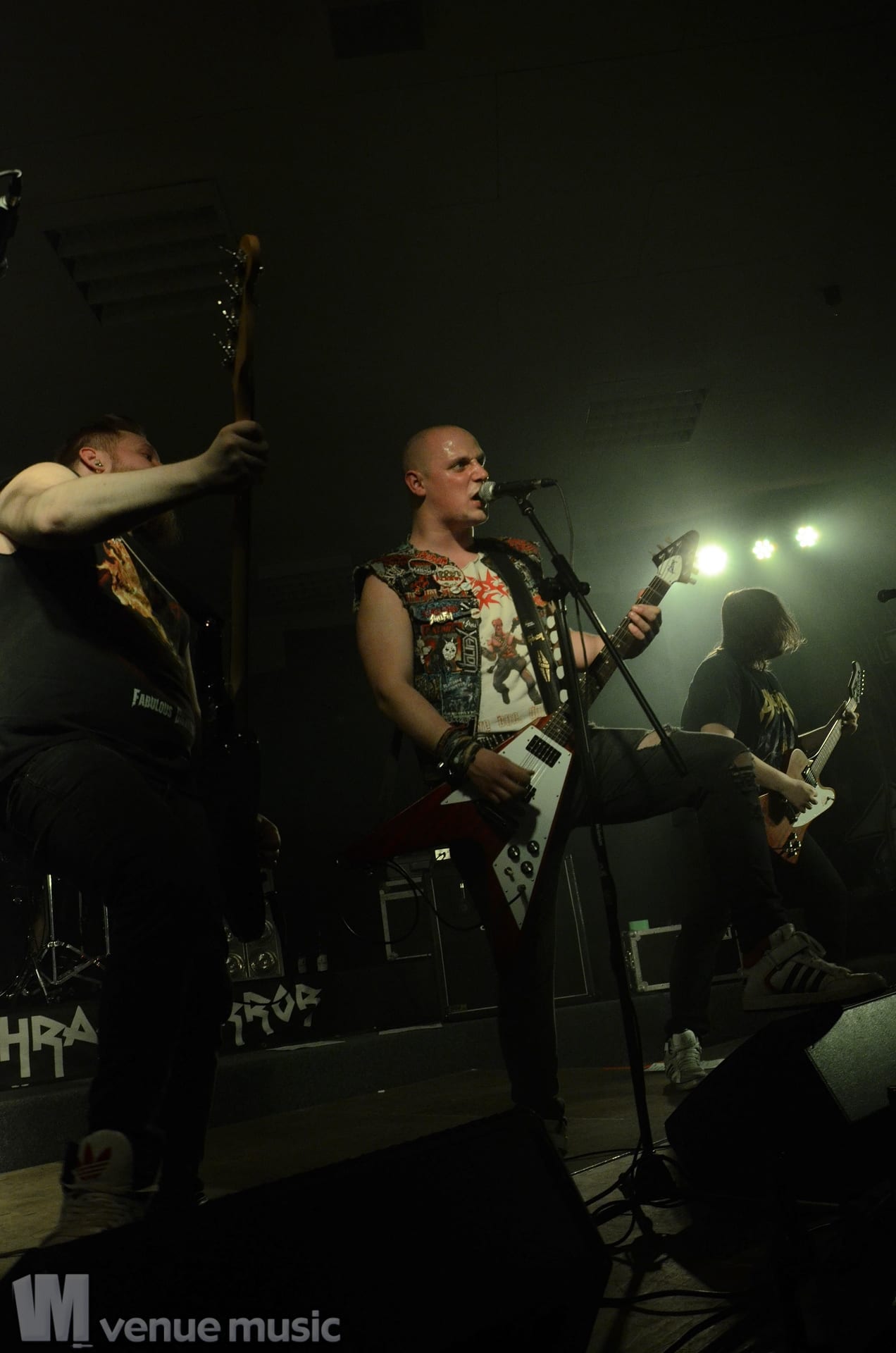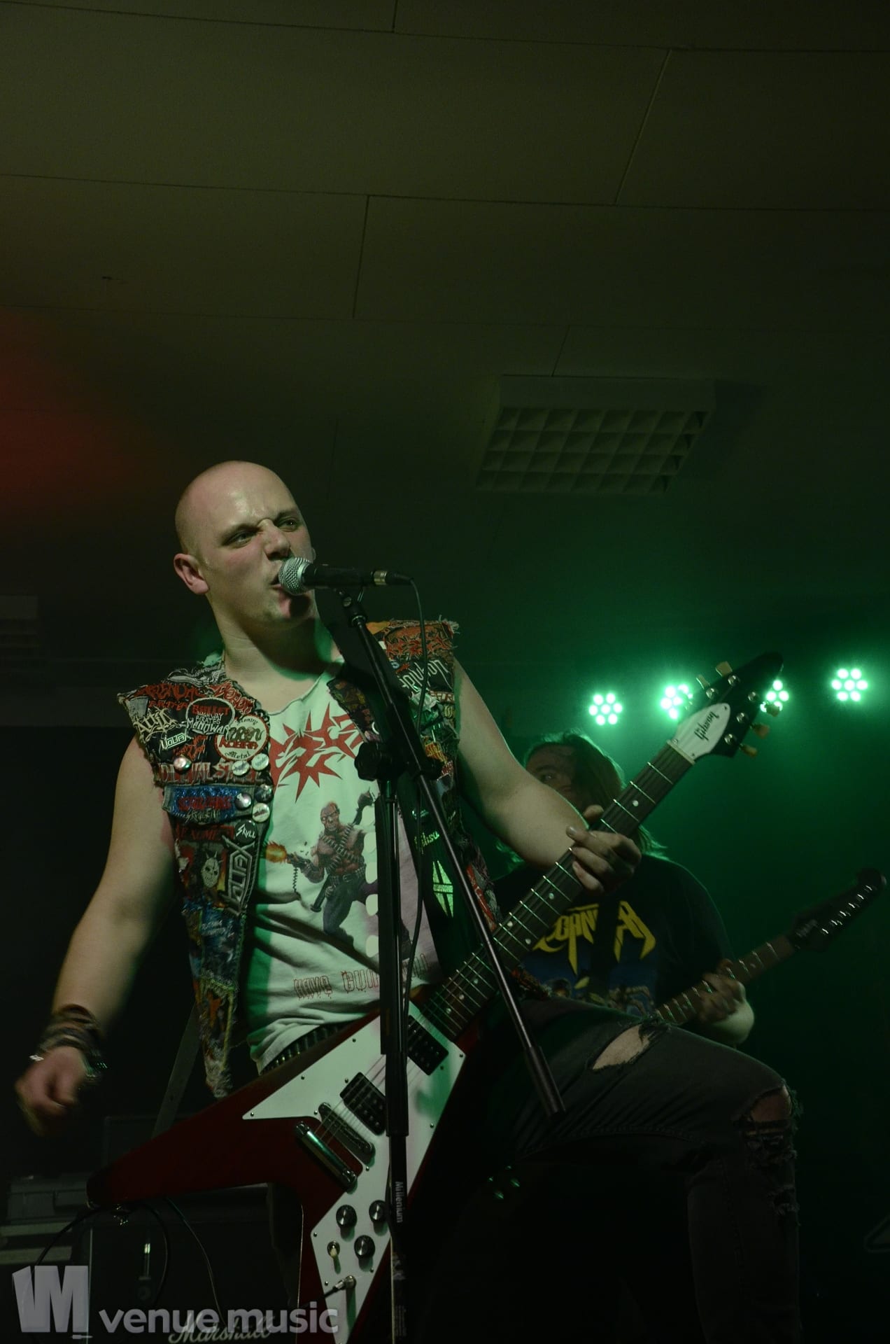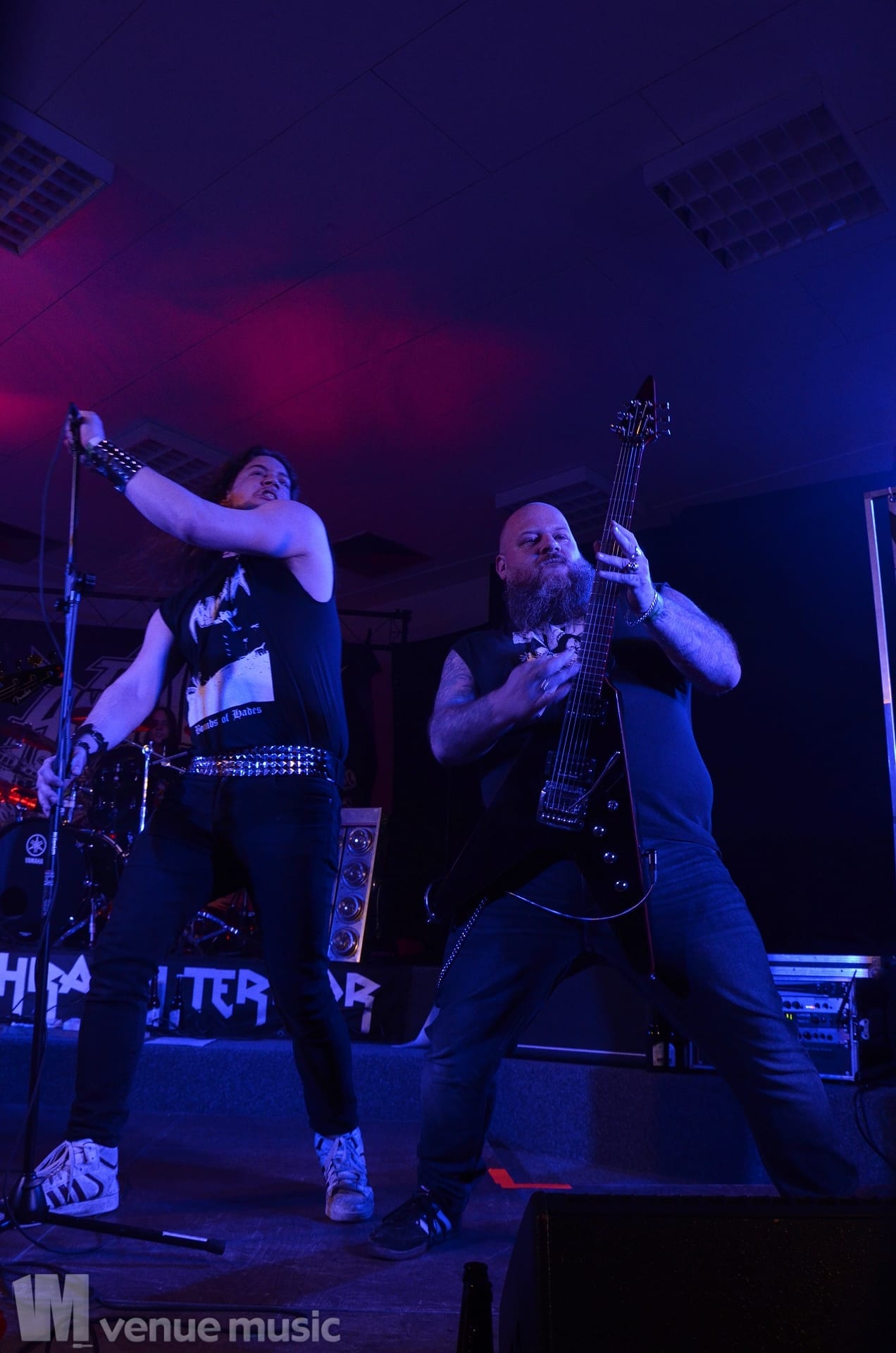 Dann folgte aber der Hauptact: Teutonic Slaughter, die ihr komplettes neues Album „Puppeteer of Death“ live präsentierten. Natürlich konnten die Fans da noch nicht textsicher mitsingen, aber zum Headbangen ist das schließlich auch kein Muss.