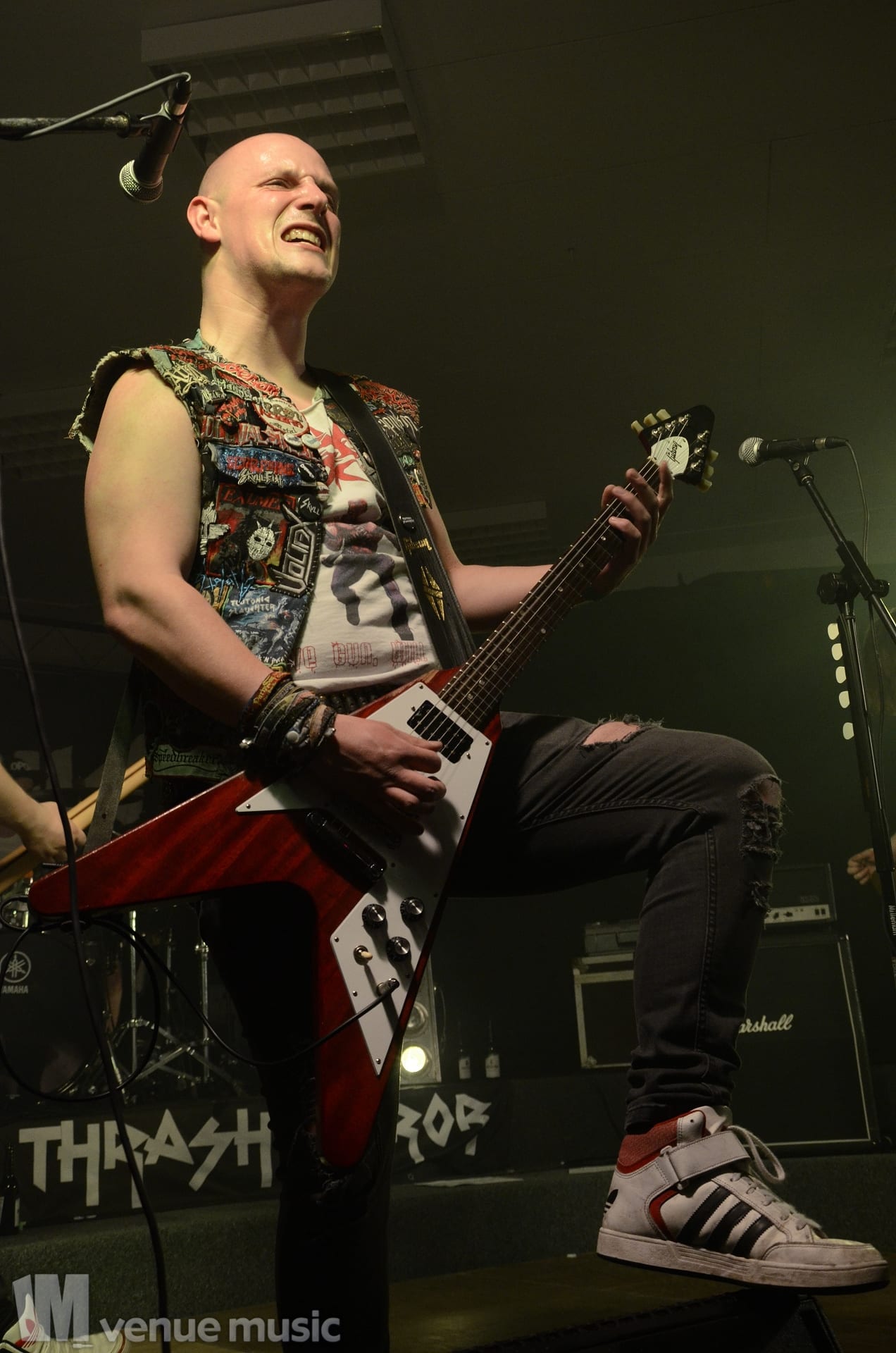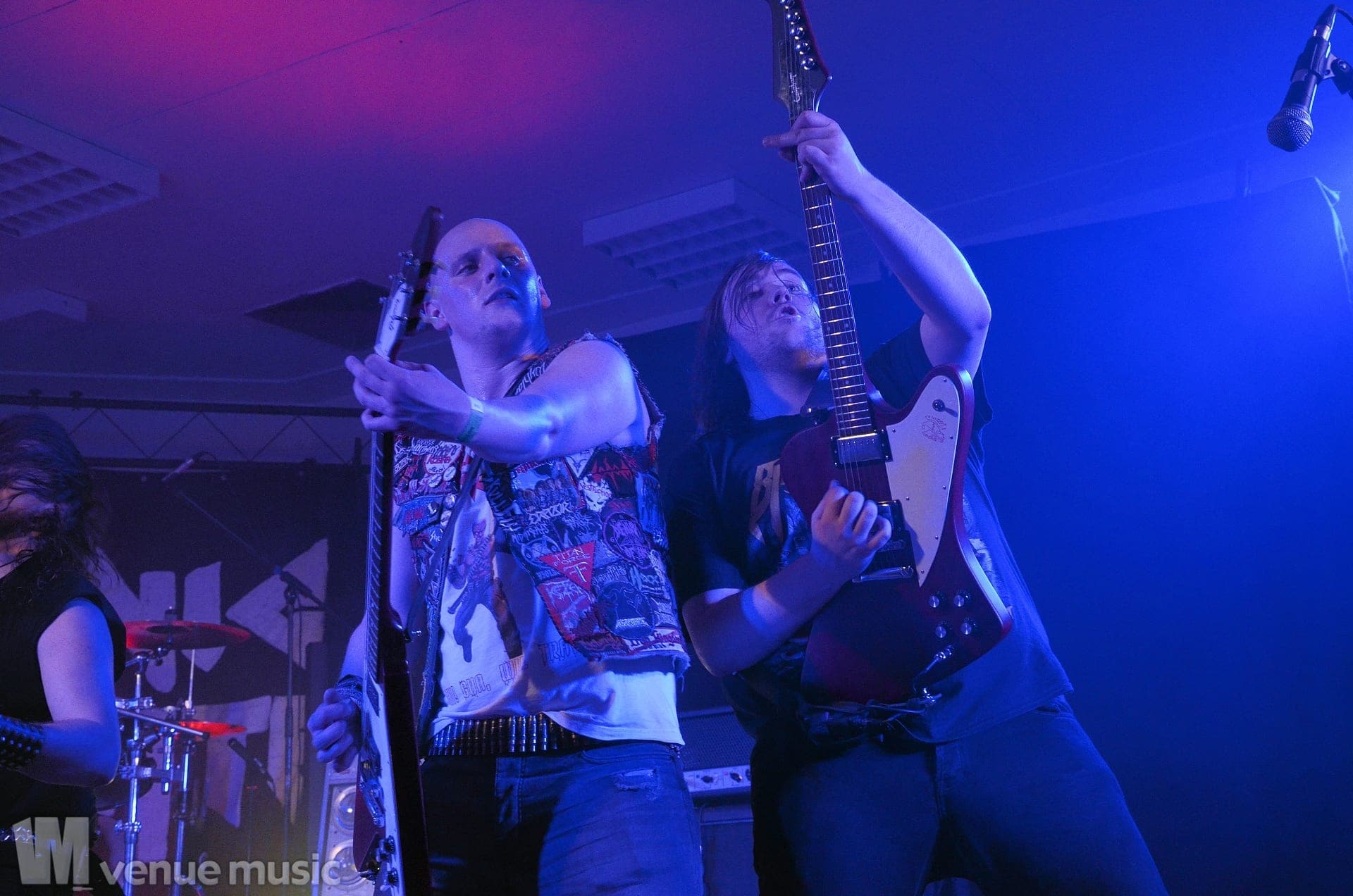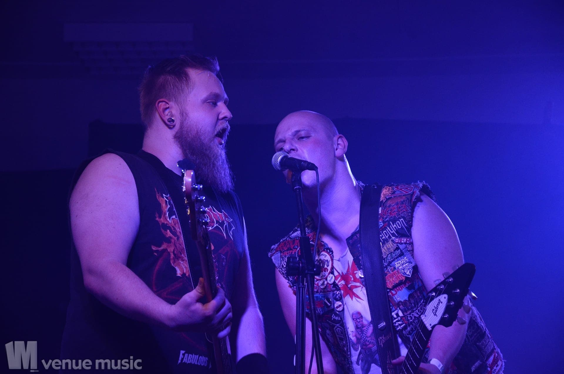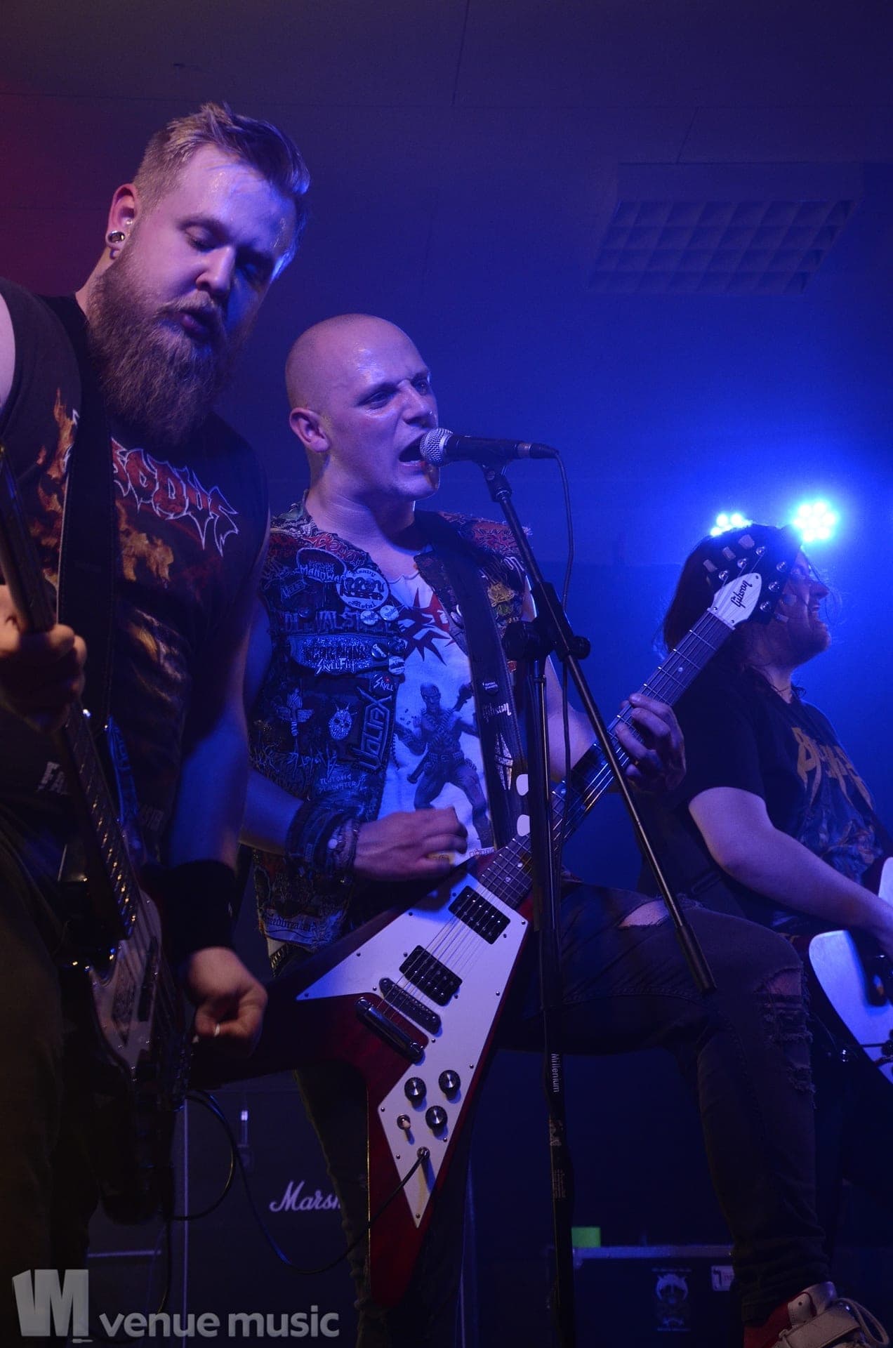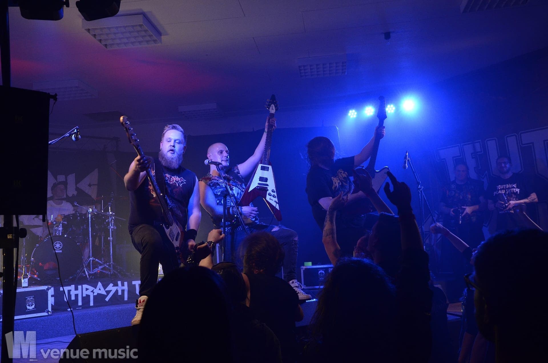 Daher kam auch besondere Freude auf, als die Zugaben „United in Hate“, „Unleash the Pecades of Terror“ und vor allem natürlich „Teutonic Witch“ zum Besten gegeben wurden. Das ist eh der geilste Song der Scheibe. Auch Total Annihilation Sänger Daniel konnte es sich kurzfristig nicht verkneifen, noch mal mit auf die Bühne zu gehen, und die Jungs als zweiten Gesangspart zu unterstützen. Hier feierten eben alle Bands gemeinsam.