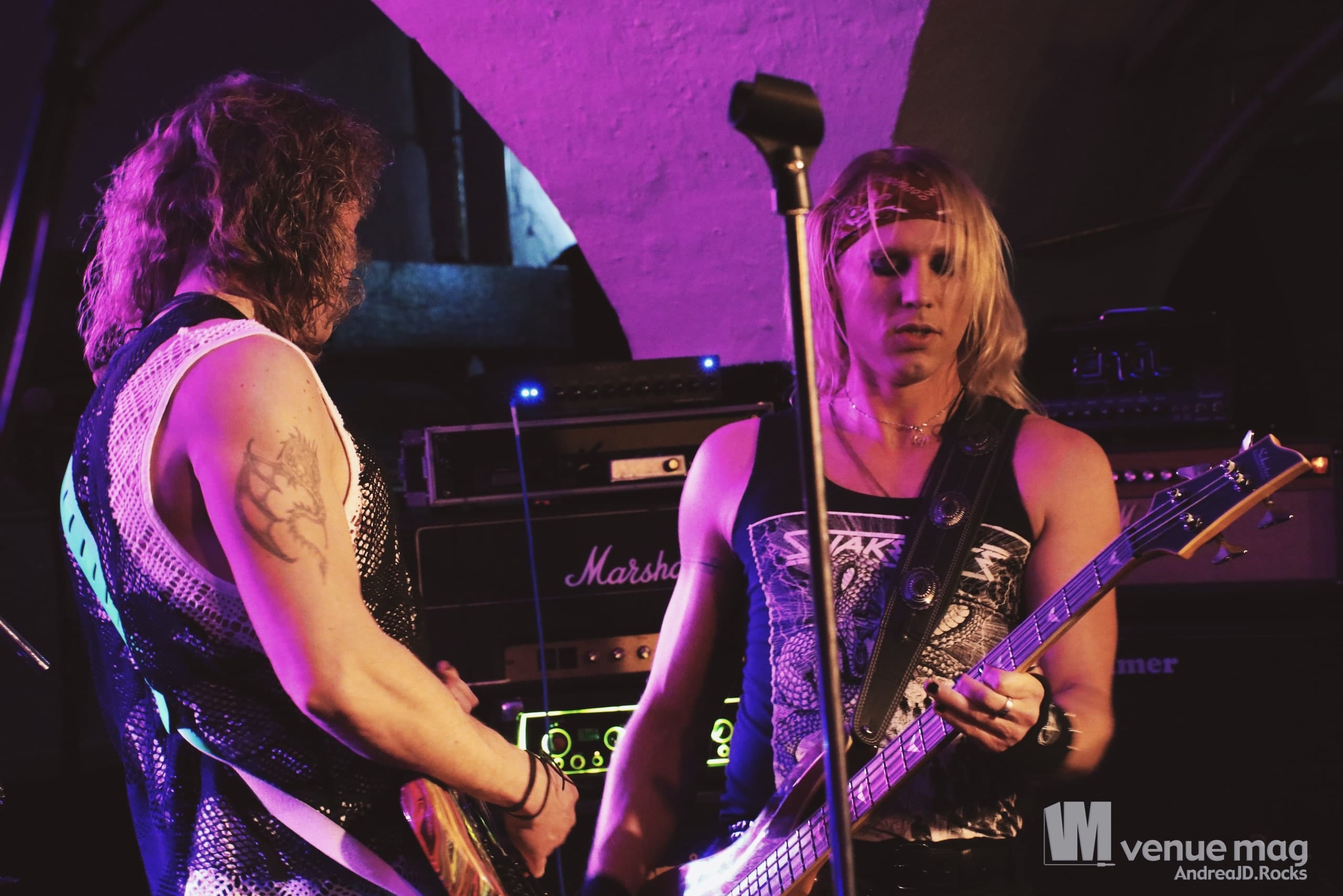 Den Abschluss des Abends machten Snakebite, die ich schon 2018 live sehen wollte, aber leider wurde das Metal Crash Festival dann erst verlegt und dann ganz abgesagt. Man kann es positiv sehen und sagen, dass sich das Warten gelohnt hätte – es ist aber schade, dass ich so lange warten musste. Nur ihre Vorurteile gegenüber Perücken mag ich nicht so ganz teilen, auch wenn der Song „Kill Wig Metal“ wirklich gut abgeht. ;)