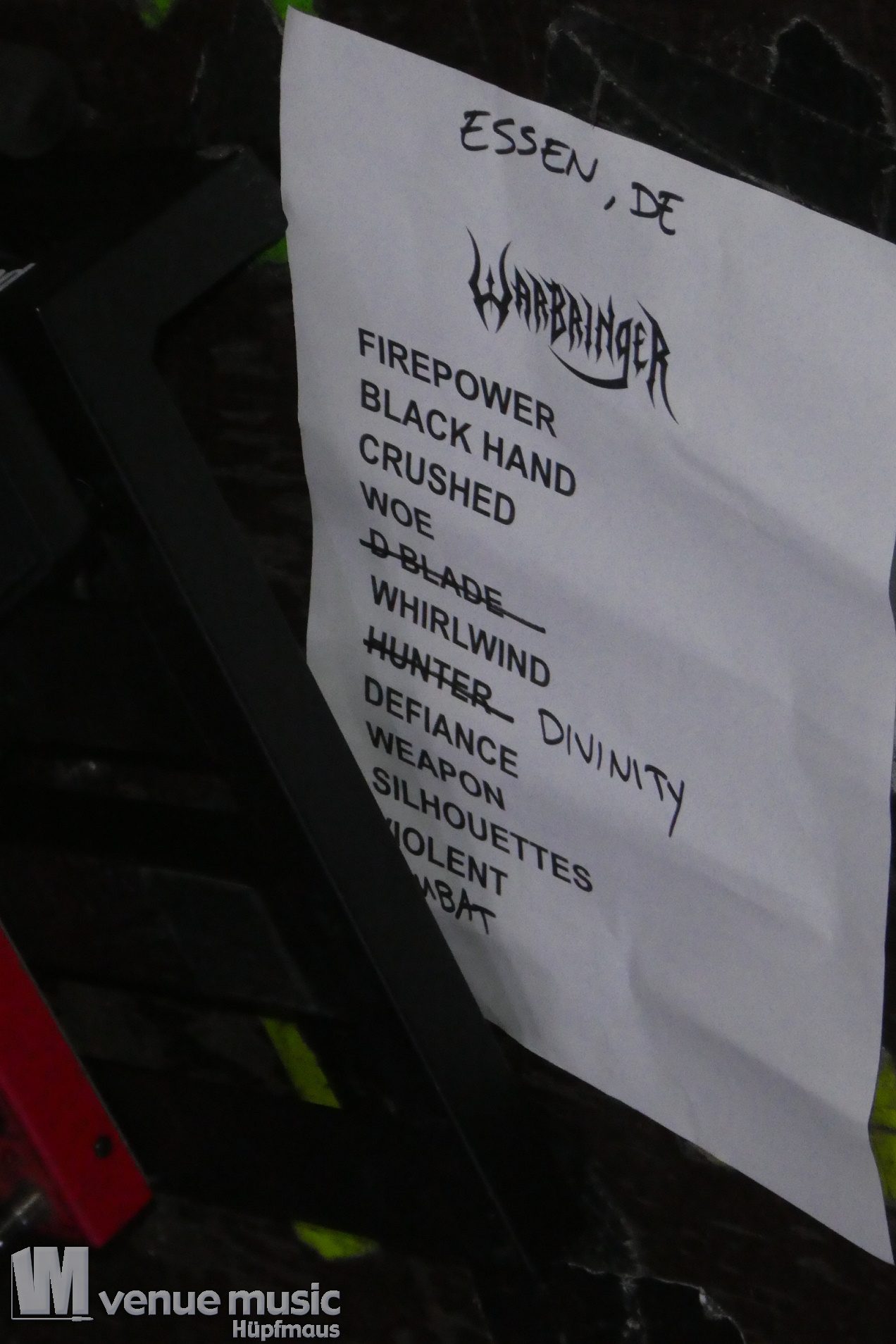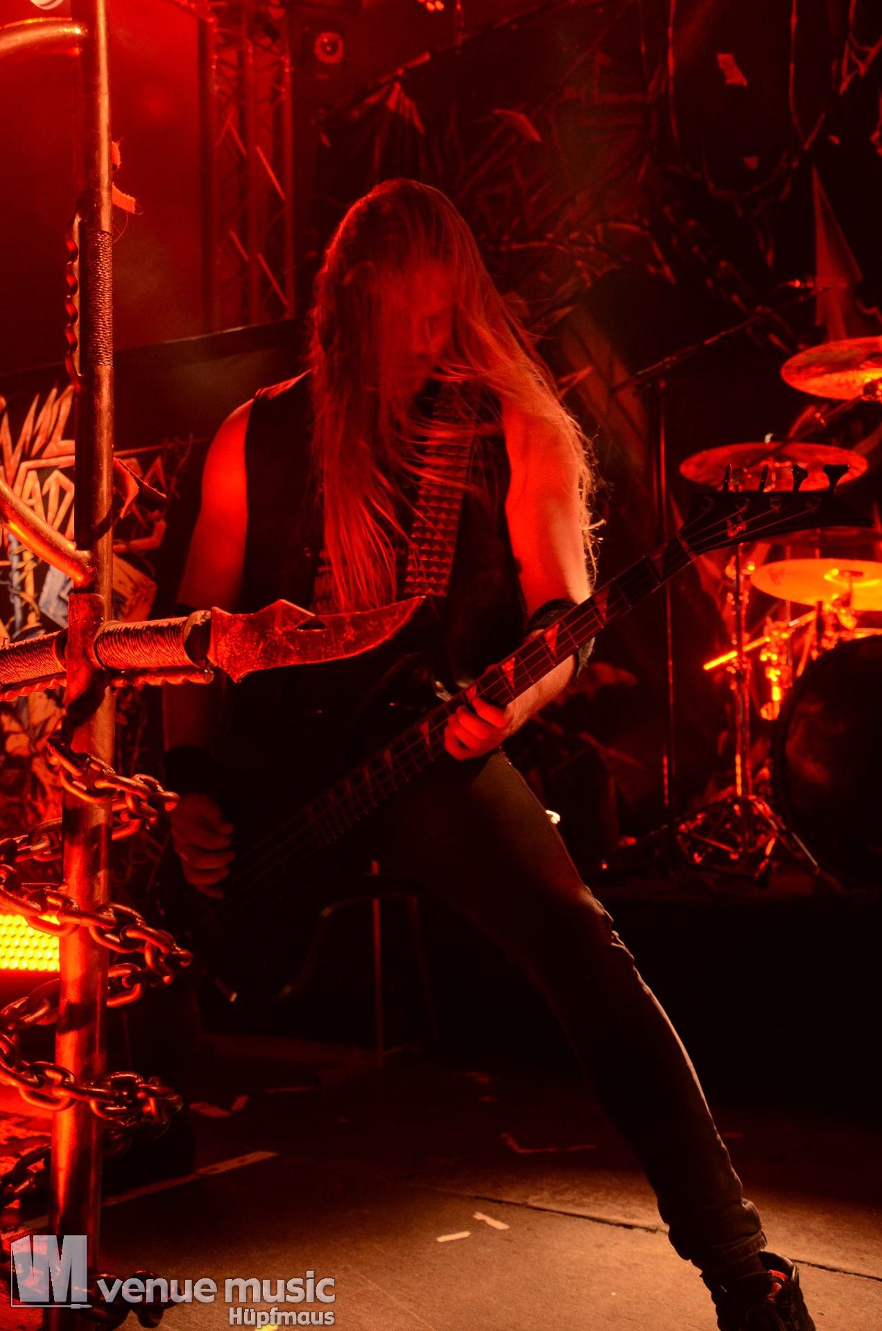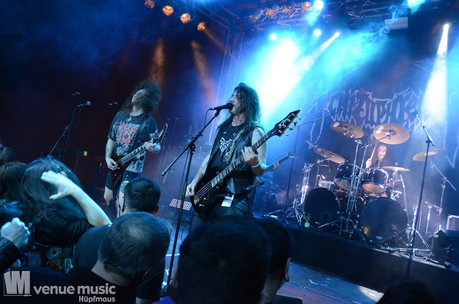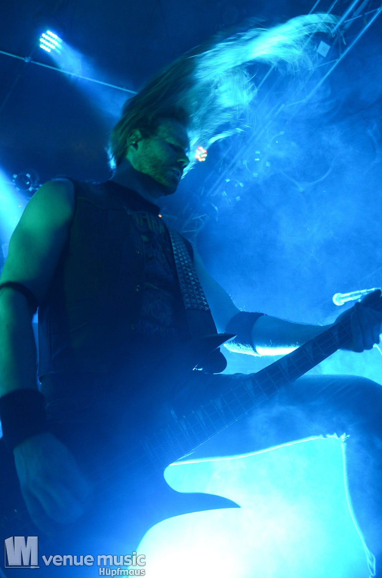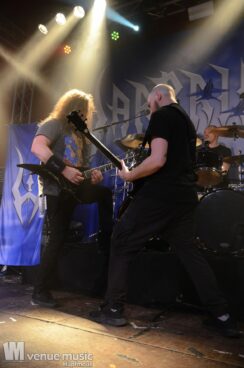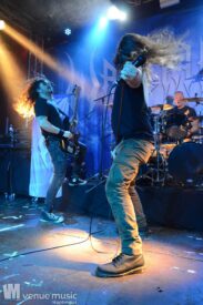 Warbringer haben dann alles so richtig weggeblasen. Der Sound war zwar generell nicht so der Bringer, aber das ist leider im Turock in der ersten Reihe oft so – man steht halt genau unter den Boxen, die an der Decke hängen und bekommt den Sound von da nicht ab. Egal, Spaß hats trotzdem gemacht. Auch auf der Bühne war so richtig Action. Die Jungs haben Gas gegeben ohne Ende. Es war auch voll, aber angenehm voll, eigentlich war es bis auf ein bisschen Moshpit entspannt – bis auf den einen Typen, der doch schon recht angetrunken war und bereits bei Evil Invaders augenscheinlich nicht mehr selber grade stehen konnte. Nervte dann auf Dauer, wenn ein mind 1,90 großer gefühlt mind. 120 kg schwerer Typ genau immer auf den Mädels vorne drauf hängt. Sonst hat nämlich niemand gedrängelt. (Die Duftmarke, wenn man leider nun mal genau das Gesicht auf Achselhöhe von dem hat und der mit ausgestrecktem Arm immer versucht, sich vor zu drängeln und sich auf einen drauf legt, die beschreibe ich auch mal nicht *fg*) Aber mit vereinten Kräften haben wir ihn dann klar gemacht, dass das scheisse ist ;) und dann war Ruhe…