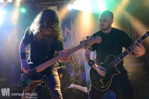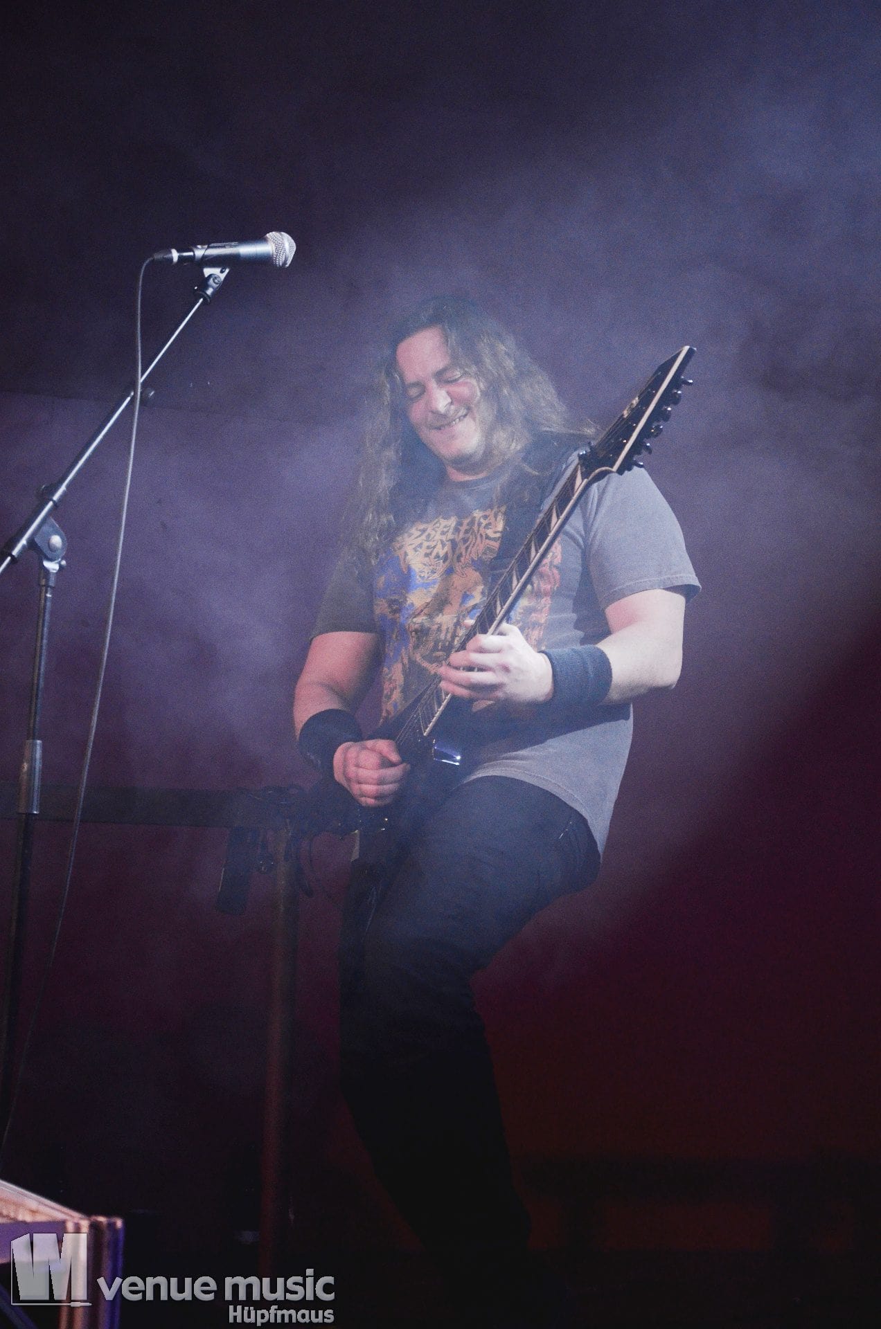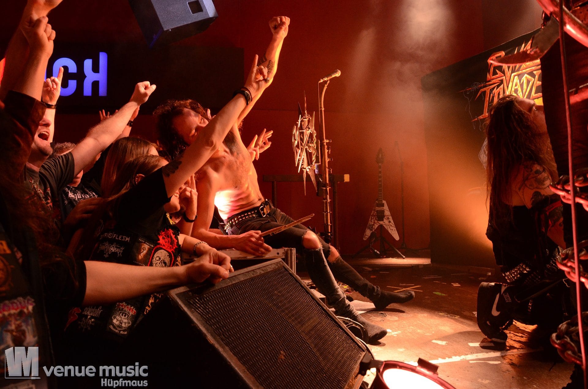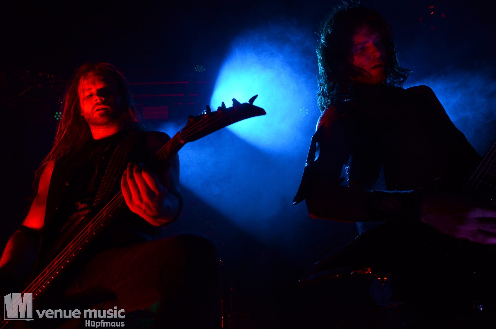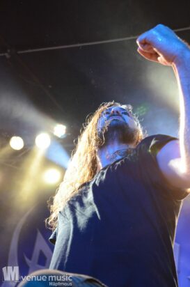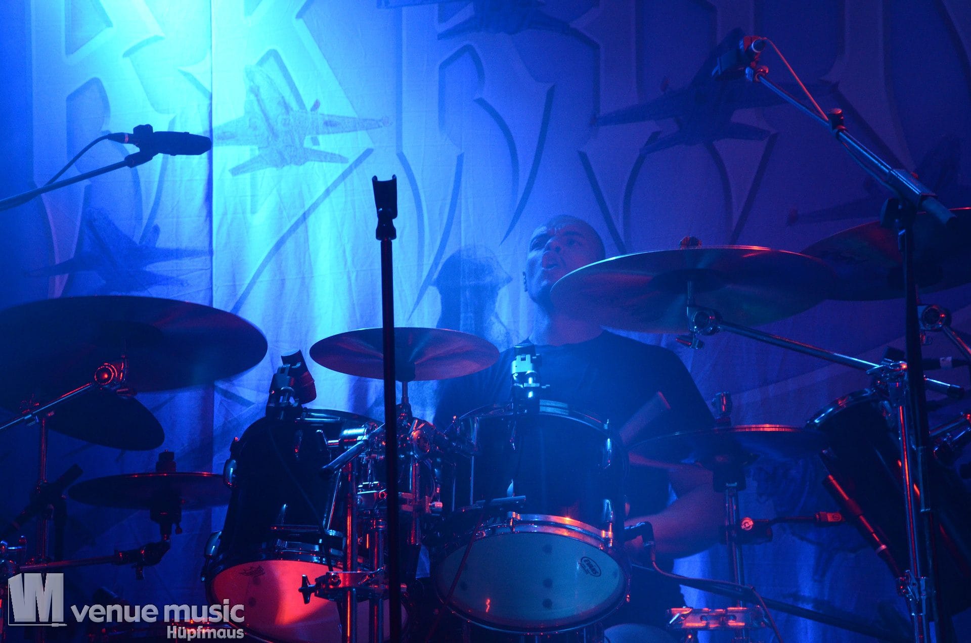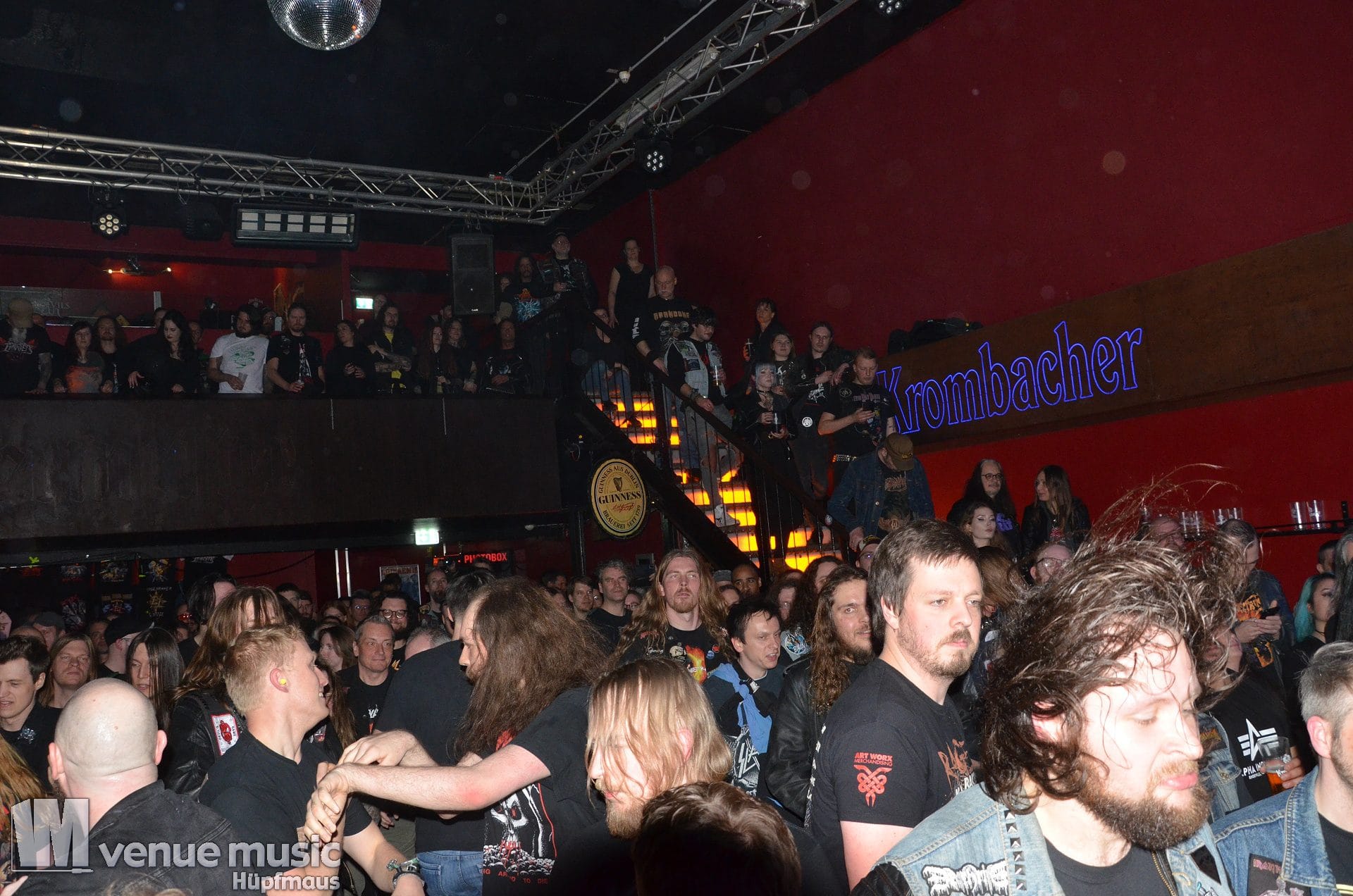 Warbringer haben dann alles so richtig weggeblasen. Der Sound war zwar generell nicht so der Bringer, aber das ist leider im Turock in der ersten Reihe oft so – man steht halt genau unter den Boxen, die an der Decke hängen und bekommt den Sound von da nicht ab. Egal, Spaß hats trotzdem gemacht. Auch auf der Bühne war so richtig Action. Die Jungs haben Gas gegeben ohne Ende. Es war auch voll, aber angenehm voll, eigentlich war es bis auf ein bisschen Moshpit entspannt – bis auf den einen Typen, der doch schon recht angetrunken war und bereits bei Evil Invaders augenscheinlich nicht mehr selber grade stehen konnte. Nervte dann auf Dauer, wenn ein mind 1,90 großer gefühlt mind. 120 kg schwerer Typ genau immer auf den Mädels vorne drauf hängt. Sonst hat nämlich niemand gedrängelt. (Die Duftmarke, wenn man leider nun mal genau das Gesicht auf Achselhöhe von dem hat und der mit ausgestrecktem Arm immer versucht, sich vor zu drängeln und sich auf einen drauf legt, die beschreibe ich auch mal nicht *fg*) Aber mit vereinten Kräften haben wir ihn dann klar gemacht, dass das scheisse ist ;) und dann war Ruhe…