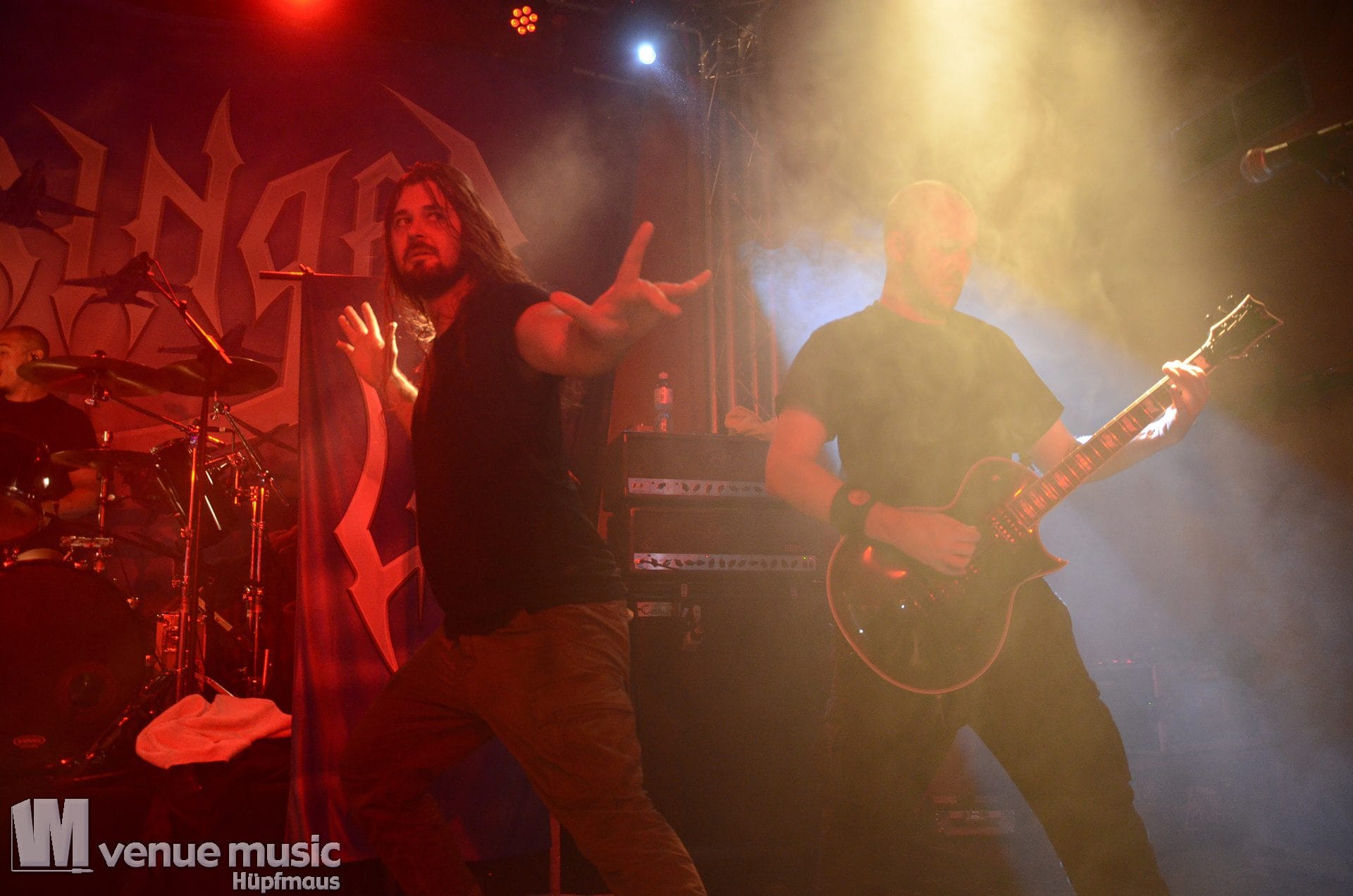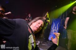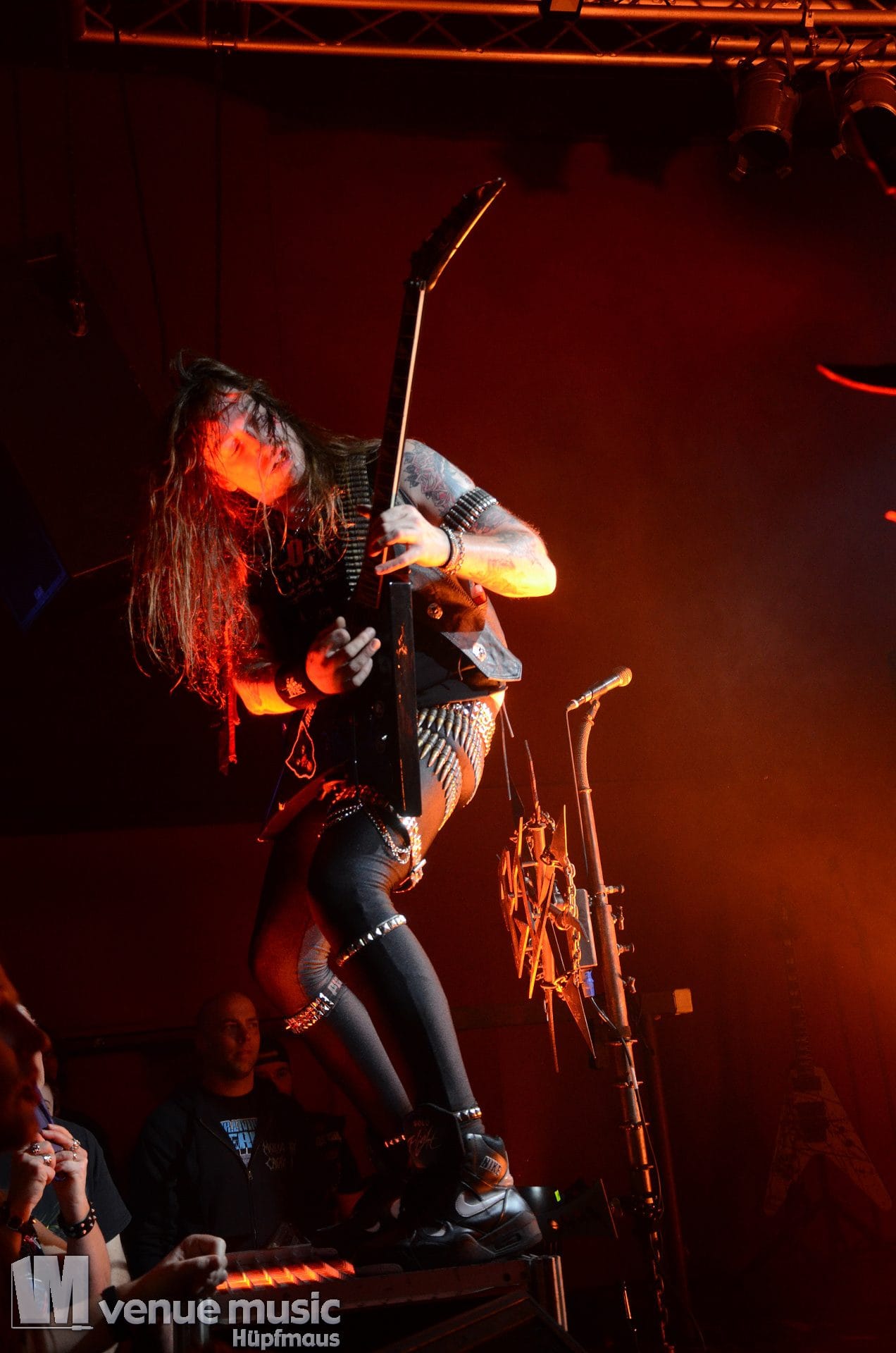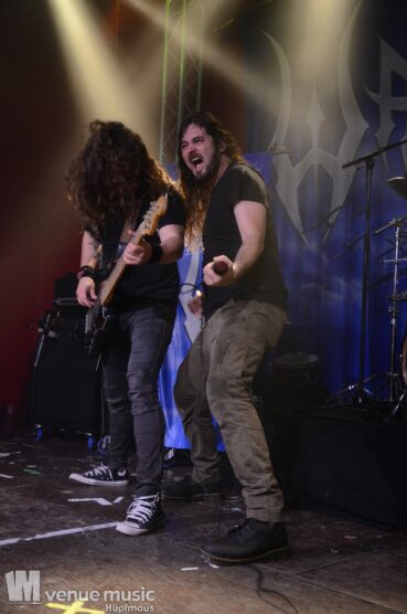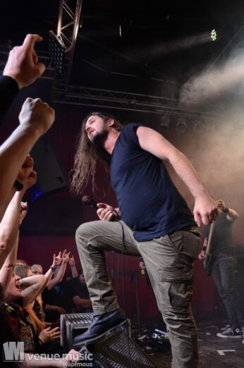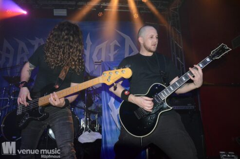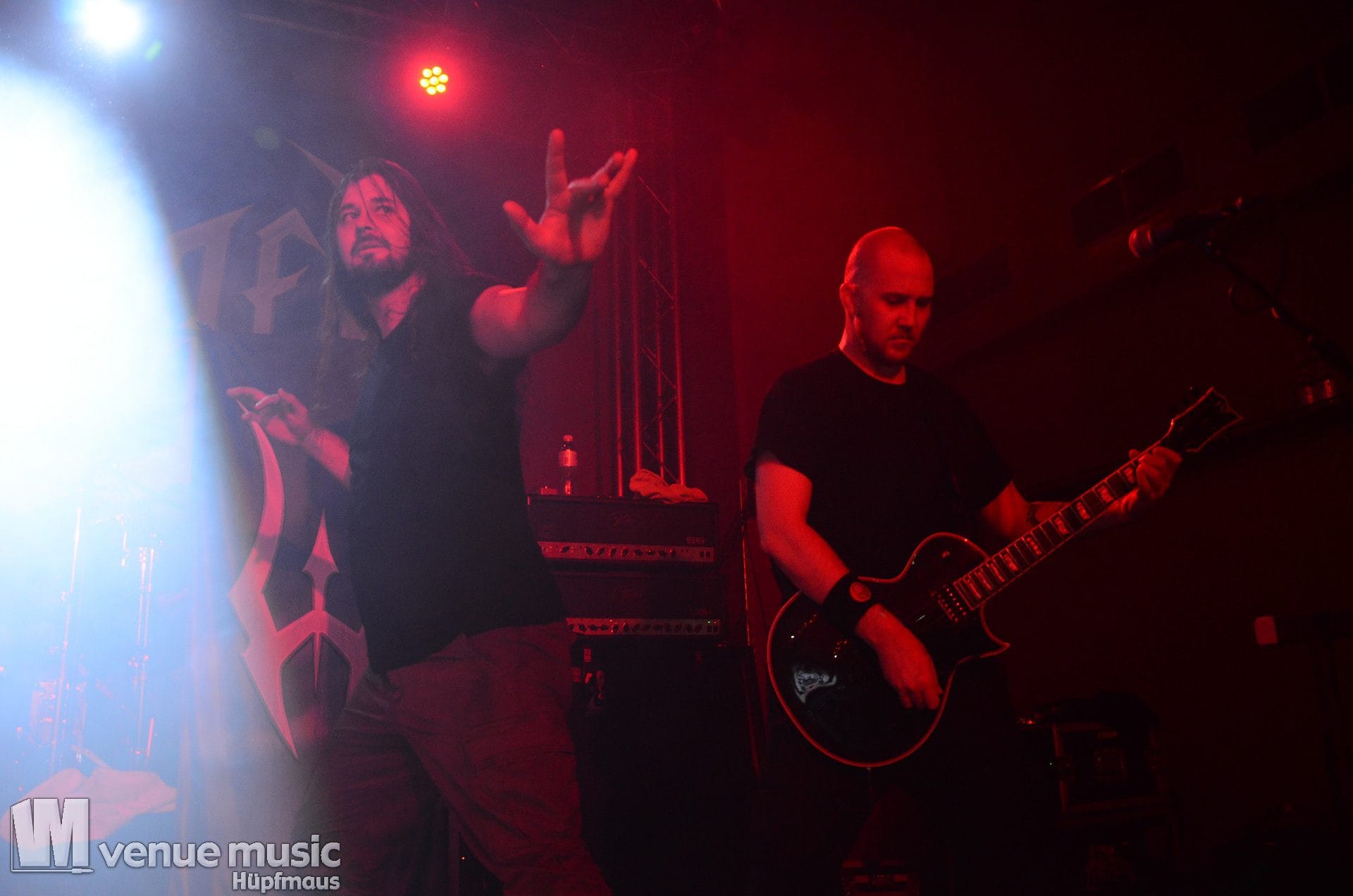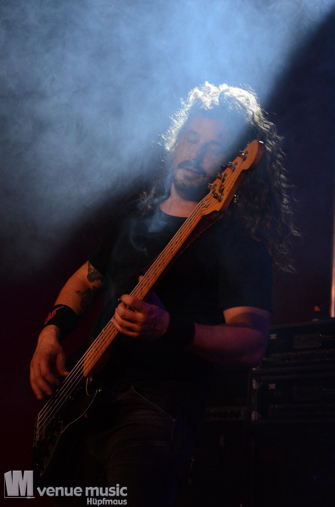 Warbringer haben dann alles so richtig weggeblasen. Der Sound war zwar generell nicht so der Bringer, aber das ist leider im Turock in der ersten Reihe oft so – man steht halt genau unter den Boxen, die an der Decke hängen und bekommt den Sound von da nicht ab. Egal, Spaß hats trotzdem gemacht. Auch auf der Bühne war so richtig Action. Die Jungs haben Gas gegeben ohne Ende. Es war auch voll, aber angenehm voll, eigentlich war es bis auf ein bisschen Moshpit entspannt – bis auf den einen Typen, der doch schon recht angetrunken war und bereits bei Evil Invaders augenscheinlich nicht mehr selber grade stehen konnte. Nervte dann auf Dauer, wenn ein mind 1,90 großer gefühlt mind. 120 kg schwerer Typ genau immer auf den Mädels vorne drauf hängt. Sonst hat nämlich niemand gedrängelt. (Die Duftmarke, wenn man leider nun mal genau das Gesicht auf Achselhöhe von dem hat und der mit ausgestrecktem Arm immer versucht, sich vor zu drängeln und sich auf einen drauf legt, die beschreibe ich auch mal nicht *fg*) Aber mit vereinten Kräften haben wir ihn dann klar gemacht, dass das scheisse ist ;) und dann war Ruhe…