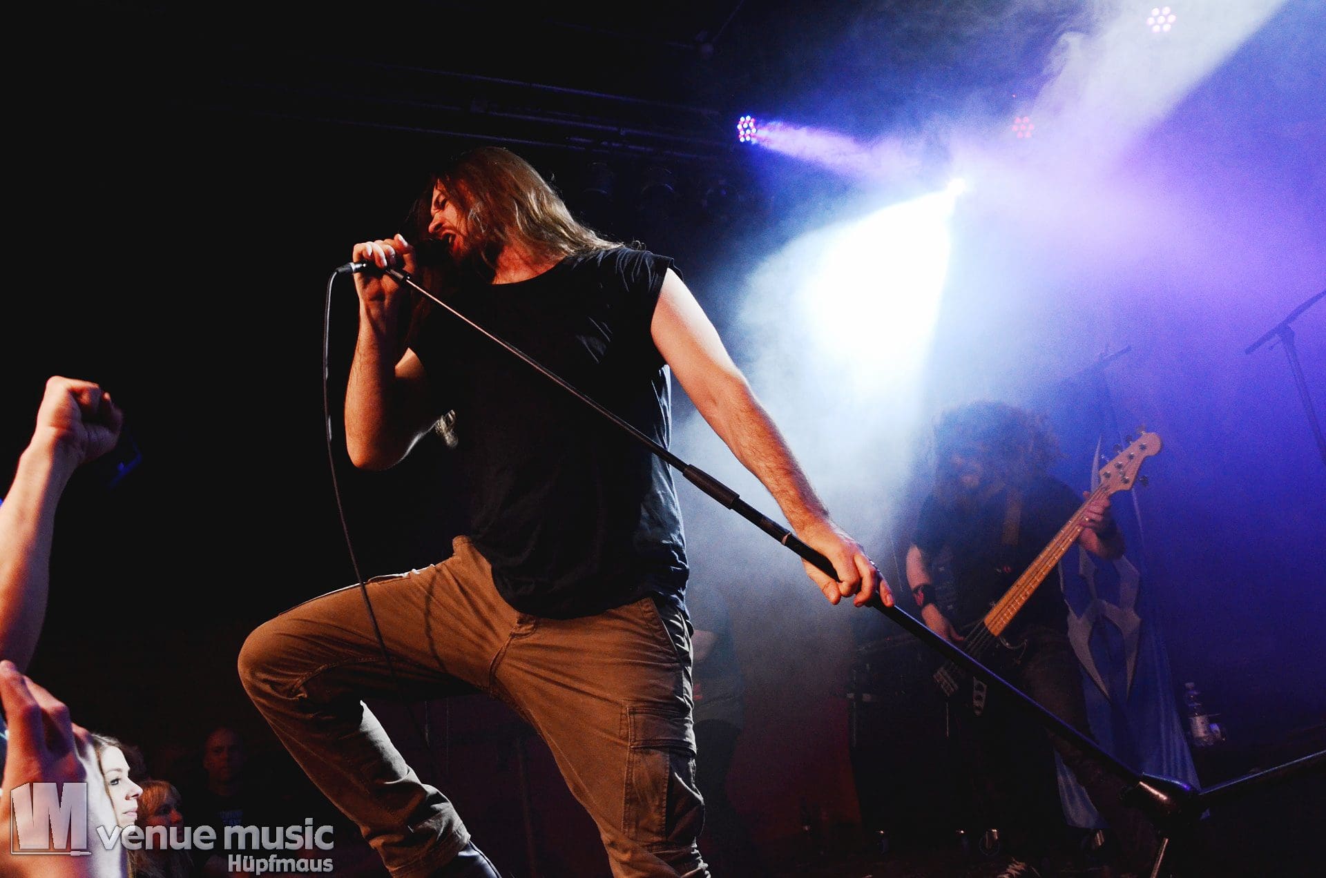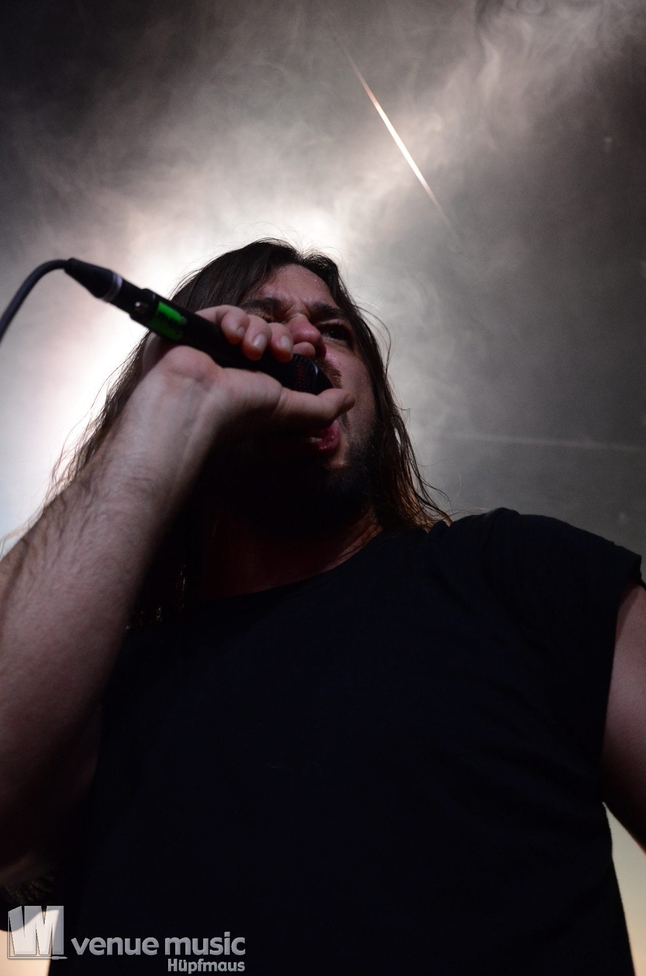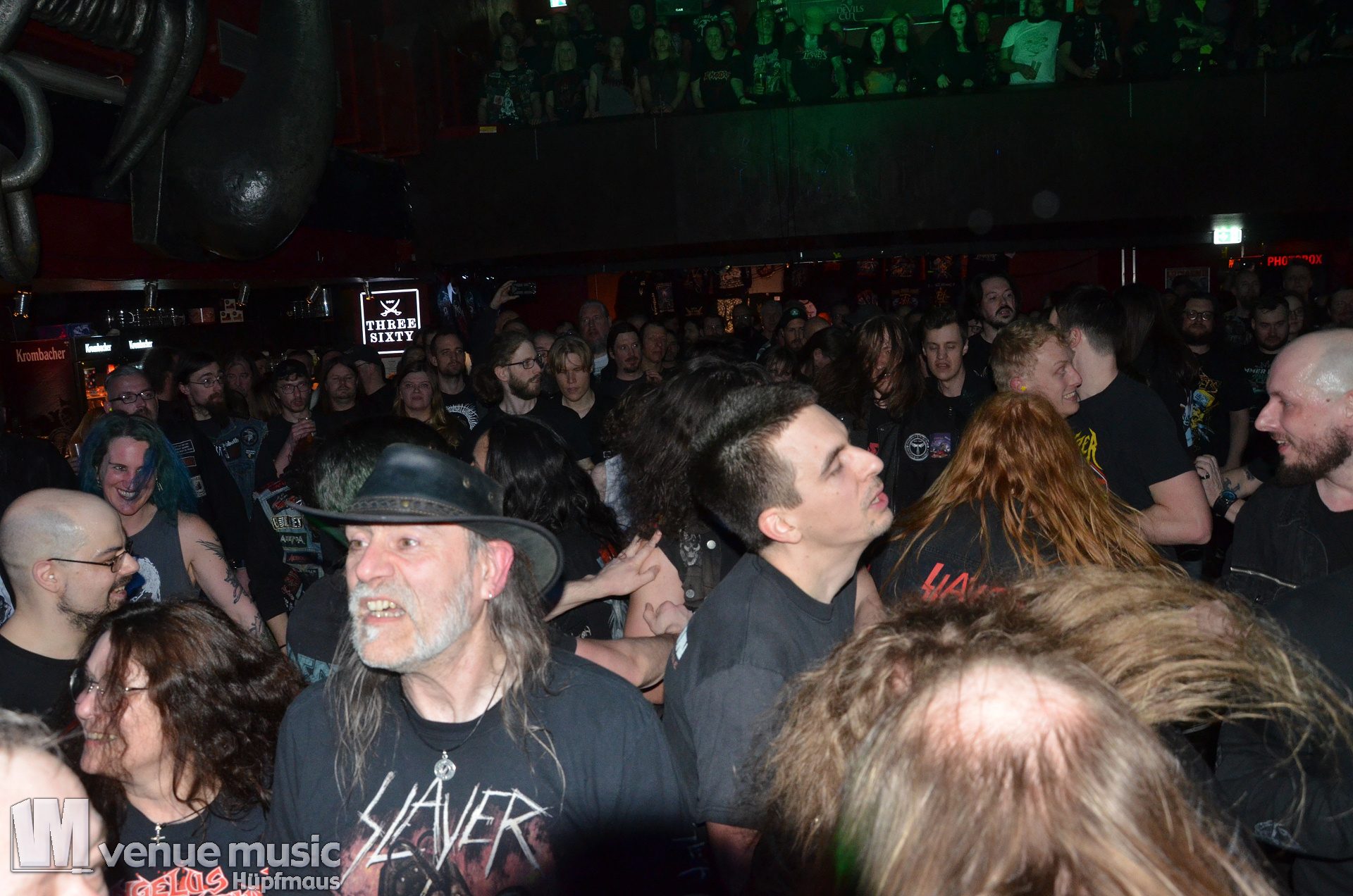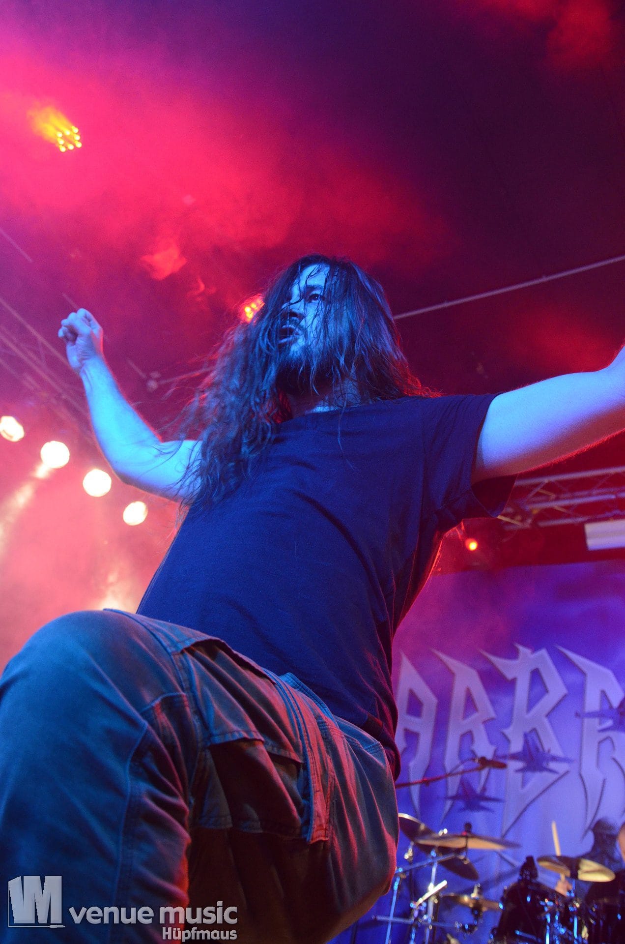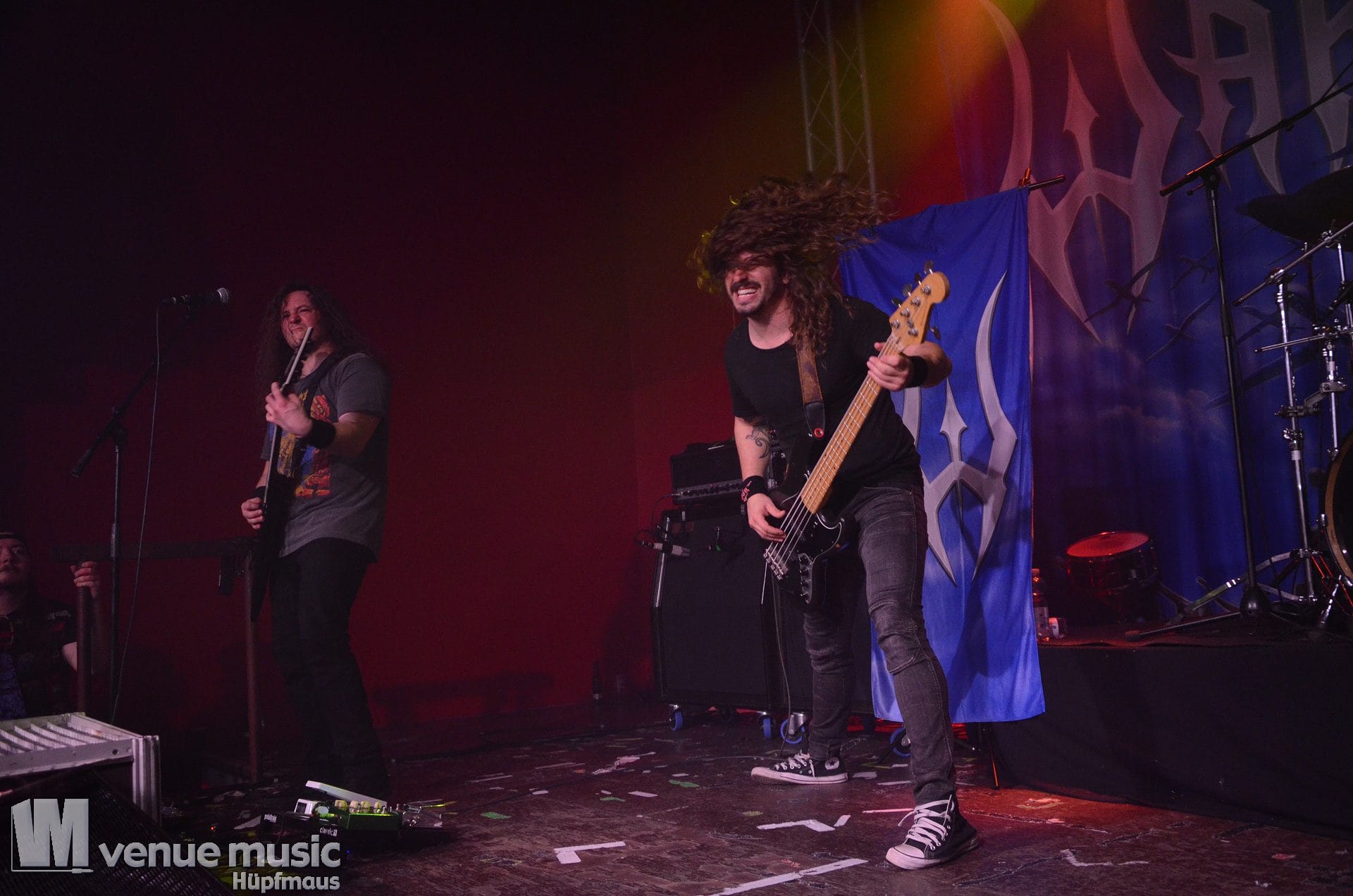 Warbringer haben dann alles so richtig weggeblasen. Der Sound war zwar generell nicht so der Bringer, aber das ist leider im Turock in der ersten Reihe oft so – man steht halt genau unter den Boxen, die an der Decke hängen und bekommt den Sound von da nicht ab. Egal, Spaß hats trotzdem gemacht. Auch auf der Bühne war so richtig Action. Die Jungs haben Gas gegeben ohne Ende. Es war auch voll, aber angenehm voll, eigentlich war es bis auf ein bisschen Moshpit entspannt – bis auf den einen Typen, der doch schon recht angetrunken war und bereits bei Evil Invaders augenscheinlich nicht mehr selber grade stehen konnte. Nervte dann auf Dauer, wenn ein mind 1,90 großer gefühlt mind. 120 kg schwerer Typ genau immer auf den Mädels vorne drauf hängt. Sonst hat nämlich niemand gedrängelt. (Die Duftmarke, wenn man leider nun mal genau das Gesicht auf Achselhöhe von dem hat und der mit ausgestrecktem Arm immer versucht, sich vor zu drängeln und sich auf einen drauf legt, die beschreibe ich auch mal nicht *fg*) Aber mit vereinten Kräften haben wir ihn dann klar gemacht, dass das scheisse ist ;) und dann war Ruhe…