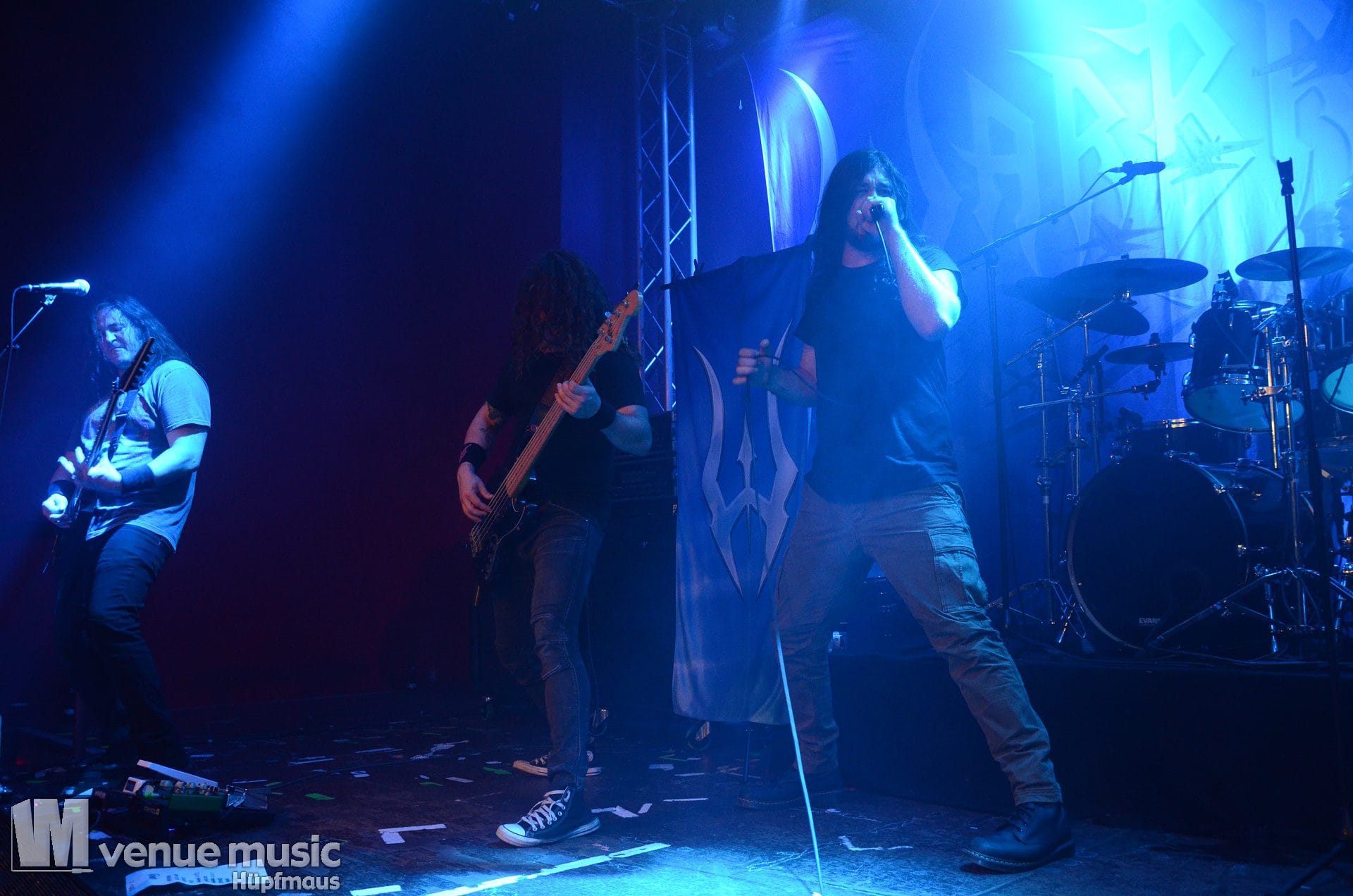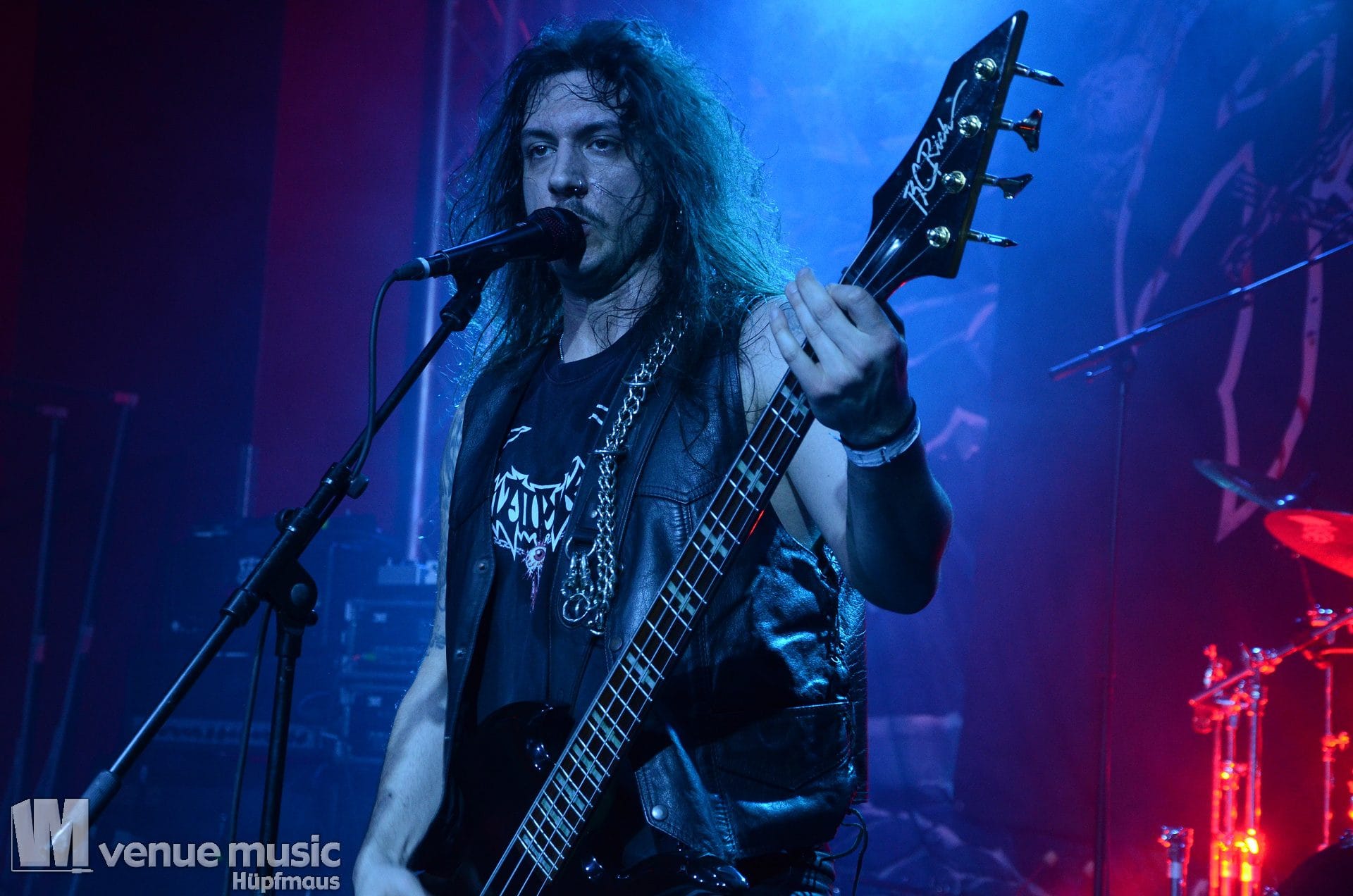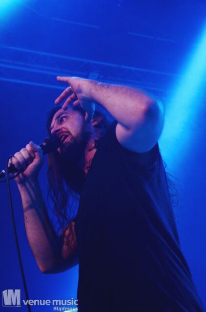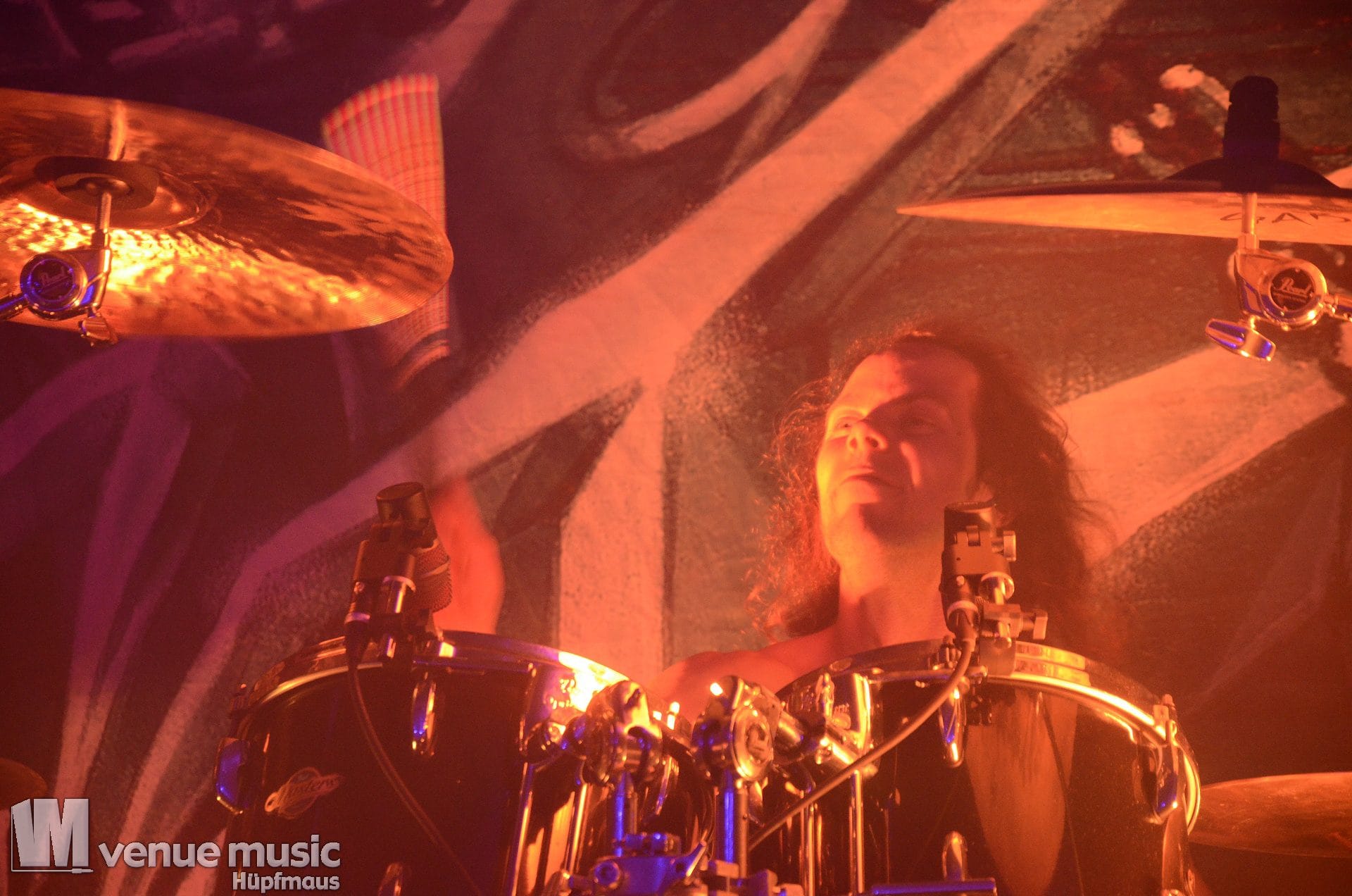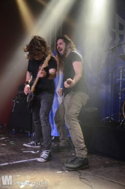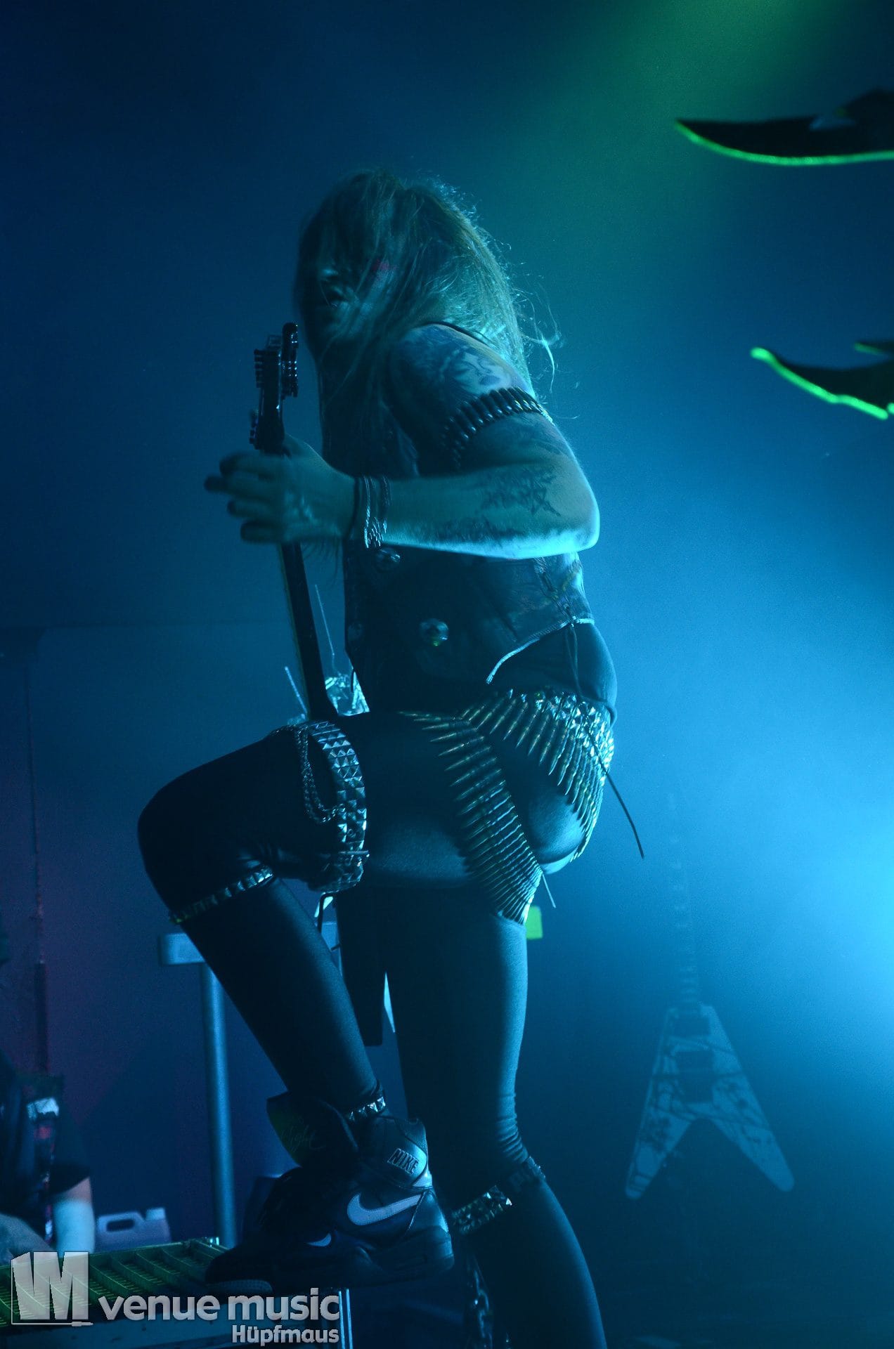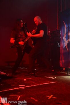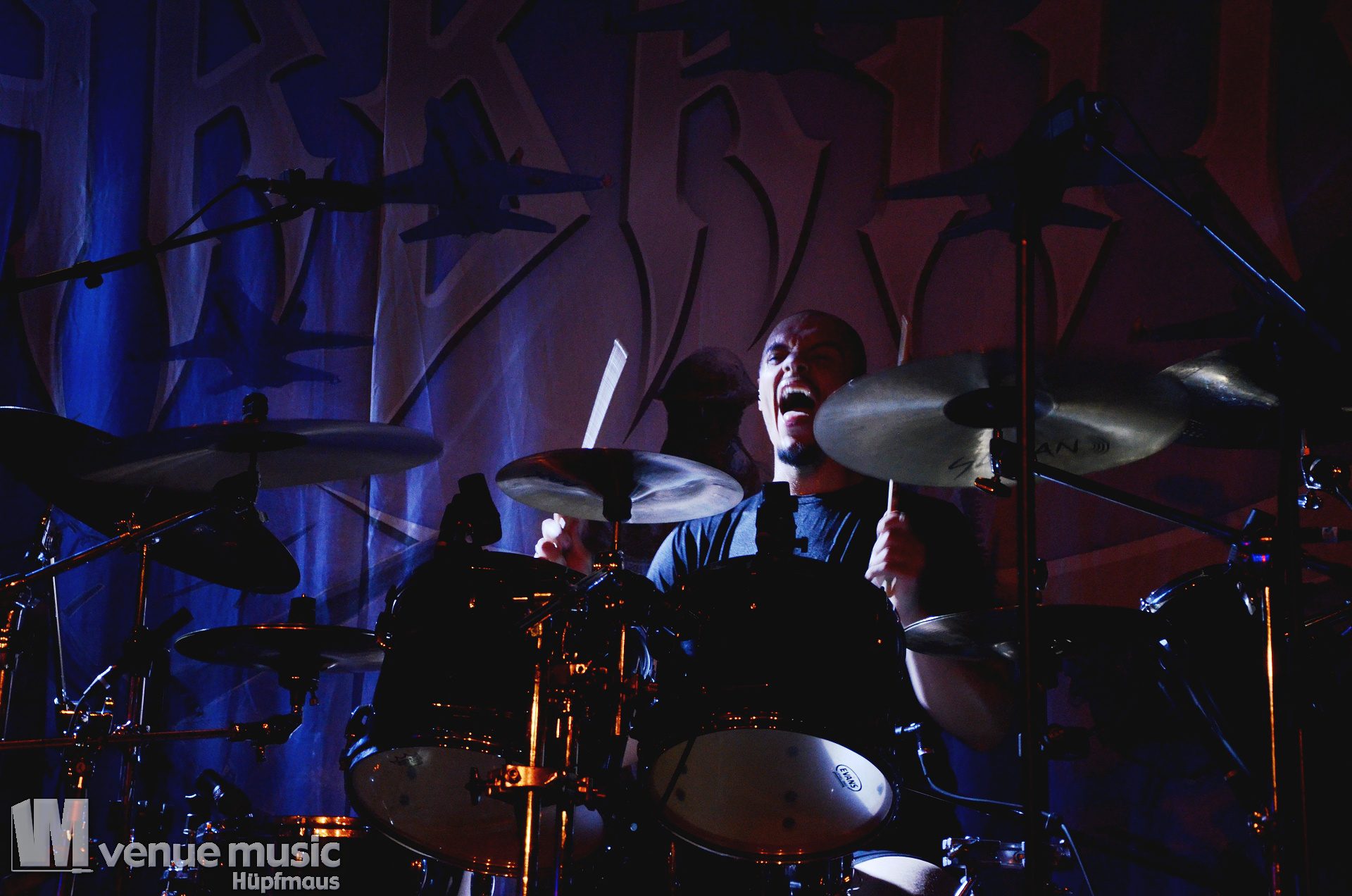 Warbringer haben dann alles so richtig weggeblasen. Der Sound war zwar generell nicht so der Bringer, aber das ist leider im Turock in der ersten Reihe oft so – man steht halt genau unter den Boxen, die an der Decke hängen und bekommt den Sound von da nicht ab. Egal, Spaß hats trotzdem gemacht. Auch auf der Bühne war so richtig Action. Die Jungs haben Gas gegeben ohne Ende. Es war auch voll, aber angenehm voll, eigentlich war es bis auf ein bisschen Moshpit entspannt – bis auf den einen Typen, der doch schon recht angetrunken war und bereits bei Evil Invaders augenscheinlich nicht mehr selber grade stehen konnte. Nervte dann auf Dauer, wenn ein mind 1,90 großer gefühlt mind. 120 kg schwerer Typ genau immer auf den Mädels vorne drauf hängt. Sonst hat nämlich niemand gedrängelt. (Die Duftmarke, wenn man leider nun mal genau das Gesicht auf Achselhöhe von dem hat und der mit ausgestrecktem Arm immer versucht, sich vor zu drängeln und sich auf einen drauf legt, die beschreibe ich auch mal nicht *fg*) Aber mit vereinten Kräften haben wir ihn dann klar gemacht, dass das scheisse ist ;) und dann war Ruhe…