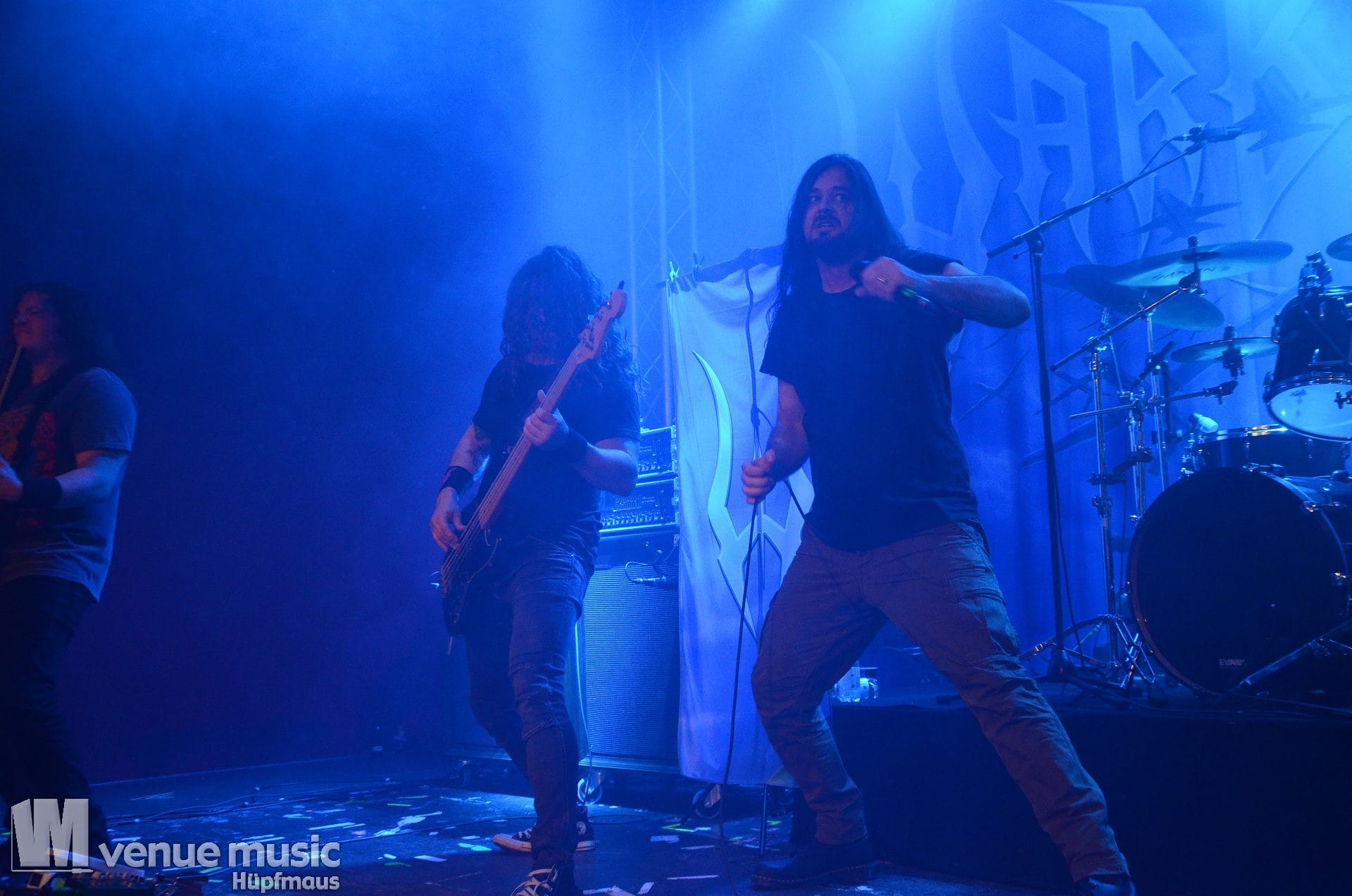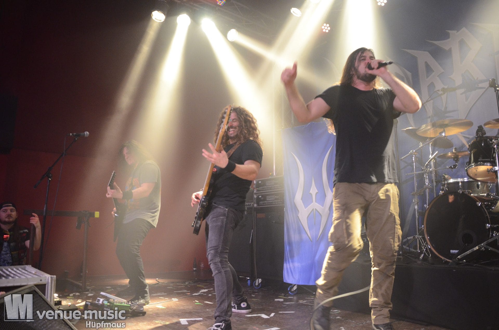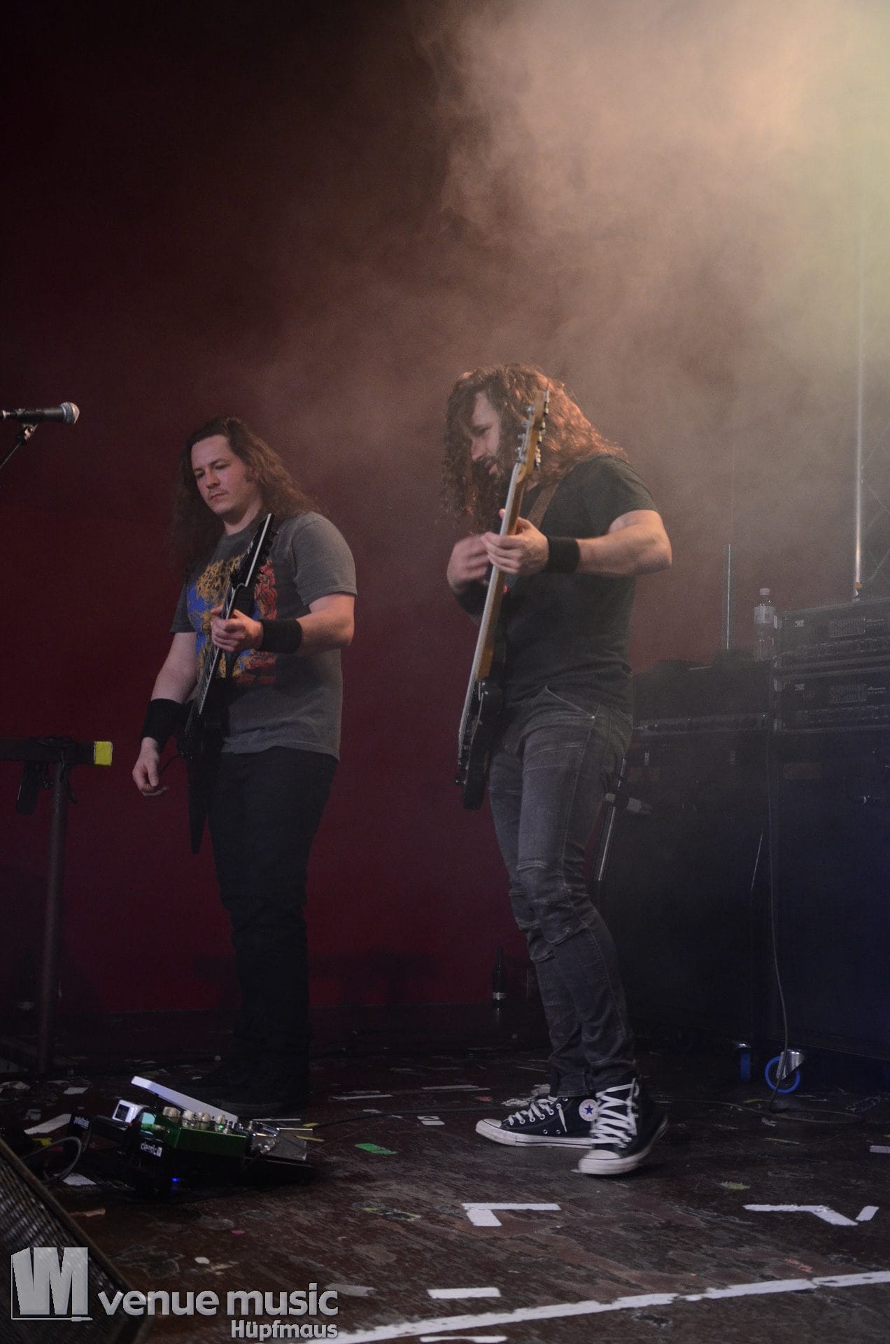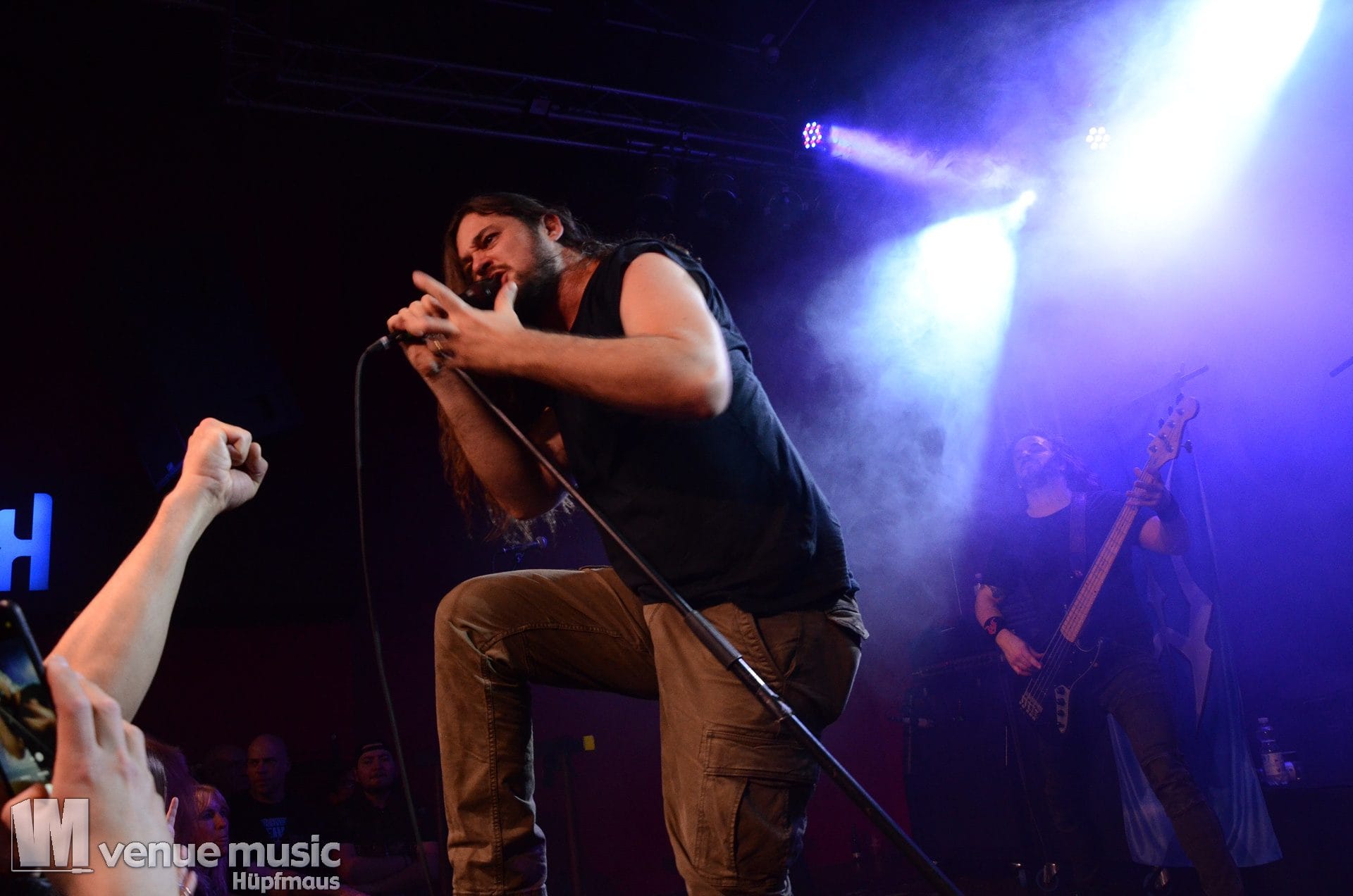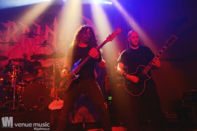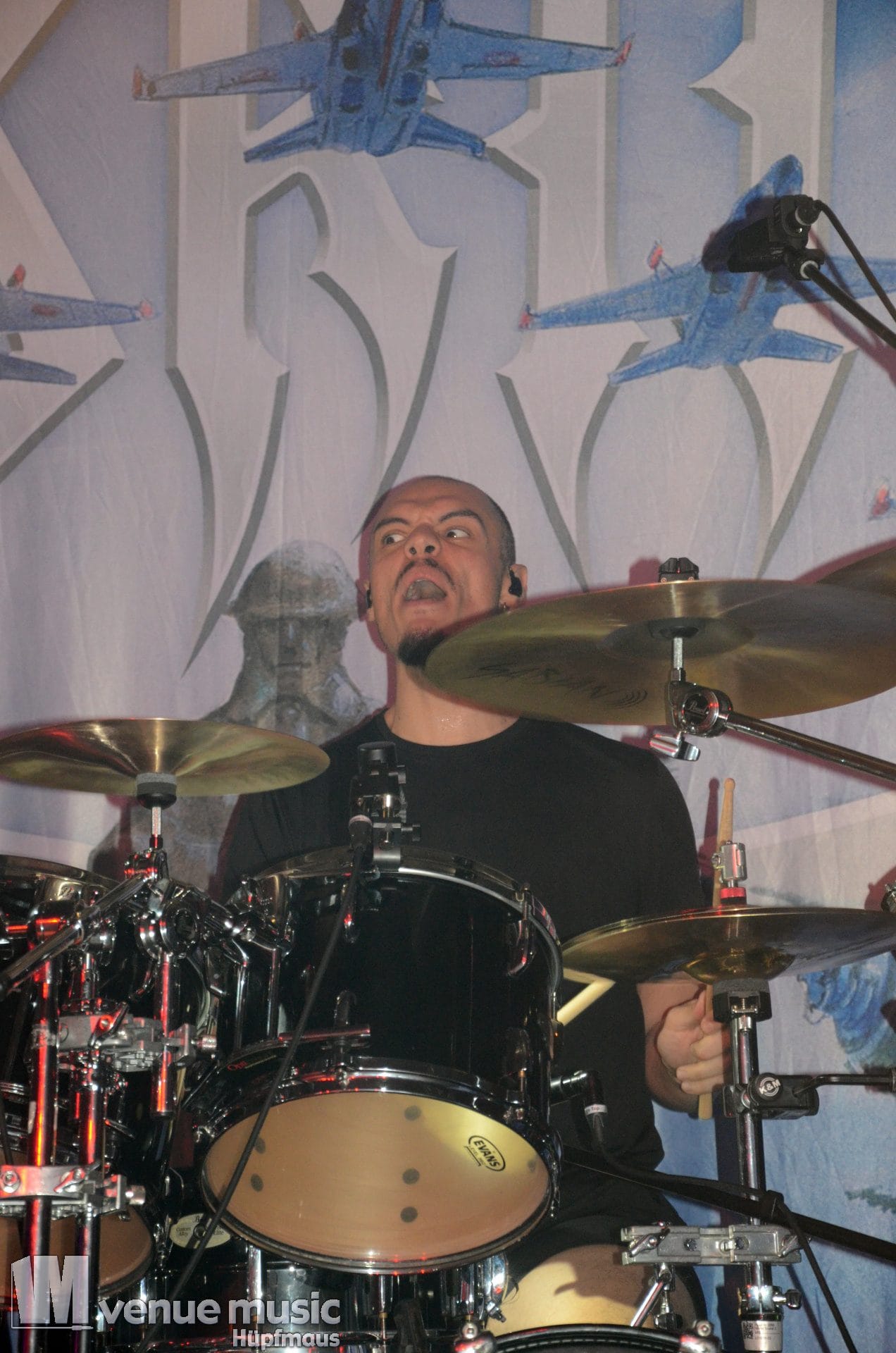 Warbringer haben dann alles so richtig weggeblasen. Der Sound war zwar generell nicht so der Bringer, aber das ist leider im Turock in der ersten Reihe oft so – man steht halt genau unter den Boxen, die an der Decke hängen und bekommt den Sound von da nicht ab. Egal, Spaß hats trotzdem gemacht. Auch auf der Bühne war so richtig Action. Die Jungs haben Gas gegeben ohne Ende. Es war auch voll, aber angenehm voll, eigentlich war es bis auf ein bisschen Moshpit entspannt – bis auf den einen Typen, der doch schon recht angetrunken war und bereits bei Evil Invaders augenscheinlich nicht mehr selber grade stehen konnte. Nervte dann auf Dauer, wenn ein mind 1,90 großer gefühlt mind. 120 kg schwerer Typ genau immer auf den Mädels vorne drauf hängt. Sonst hat nämlich niemand gedrängelt. (Die Duftmarke, wenn man leider nun mal genau das Gesicht auf Achselhöhe von dem hat und der mit ausgestrecktem Arm immer versucht, sich vor zu drängeln und sich auf einen drauf legt, die beschreibe ich auch mal nicht *fg*) Aber mit vereinten Kräften haben wir ihn dann klar gemacht, dass das scheisse ist ;) und dann war Ruhe…