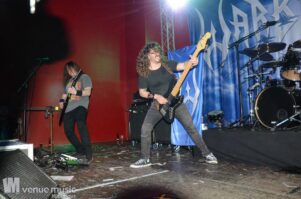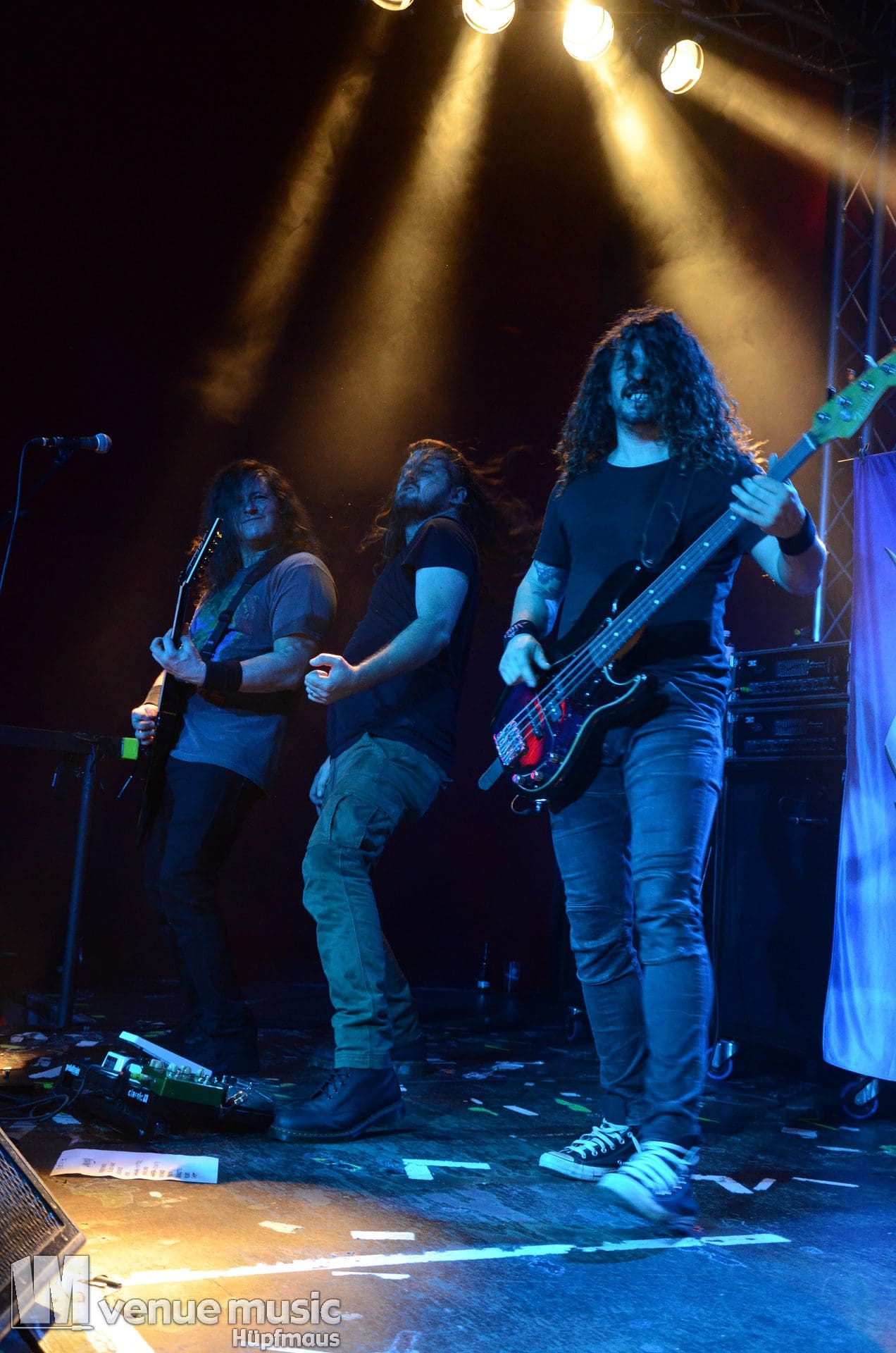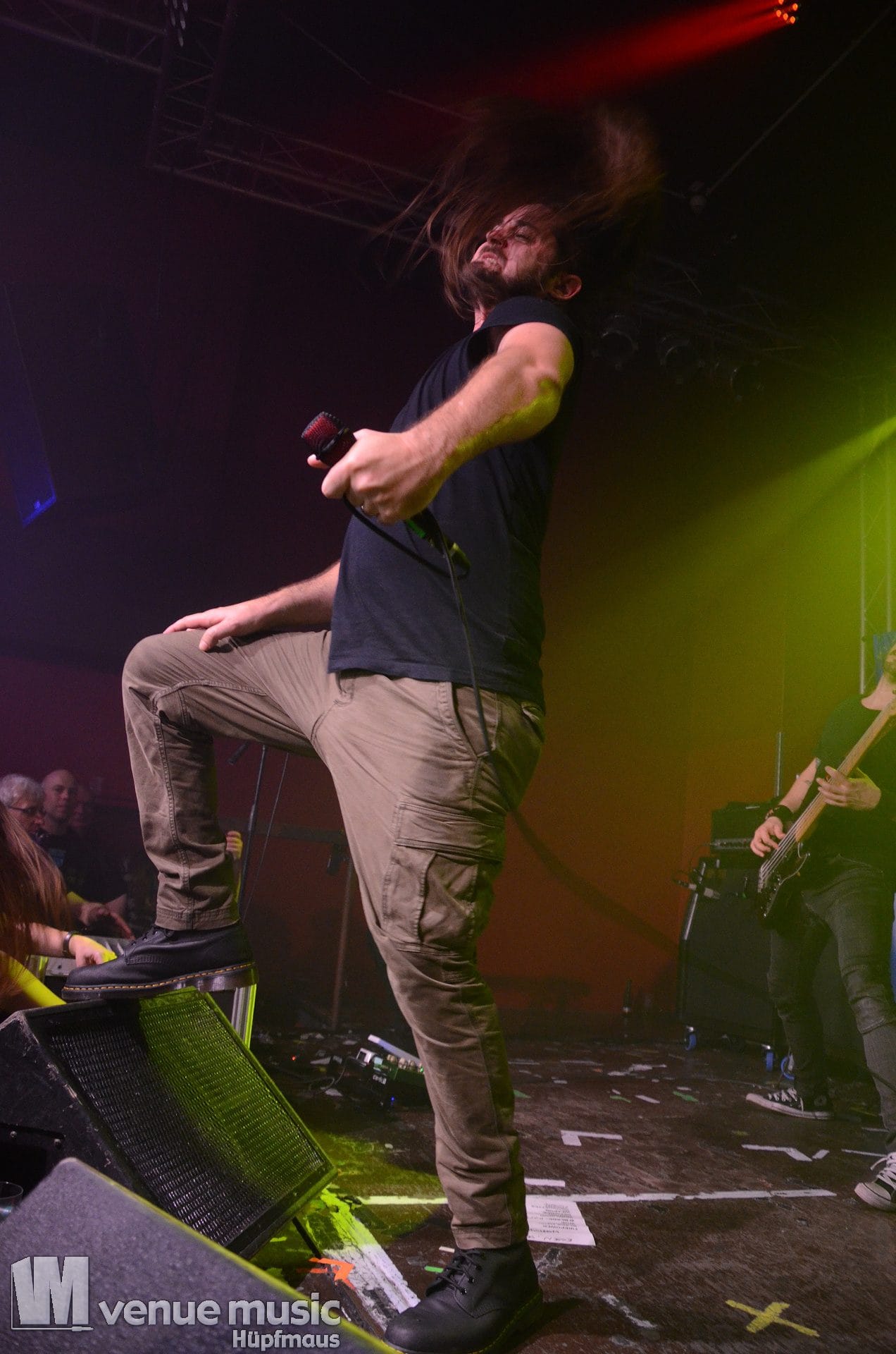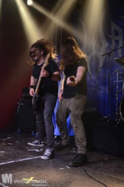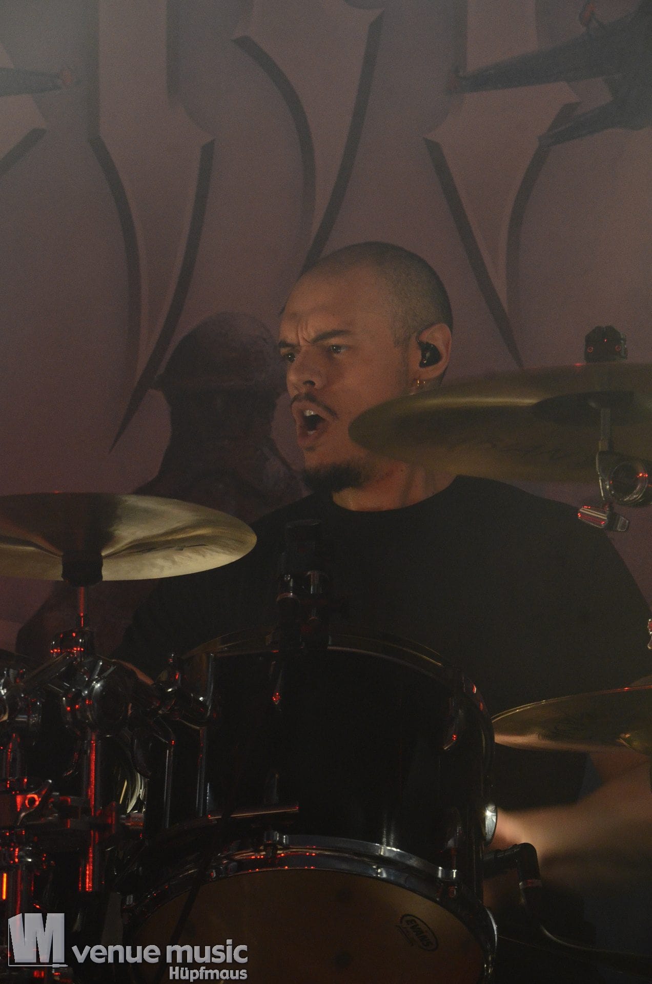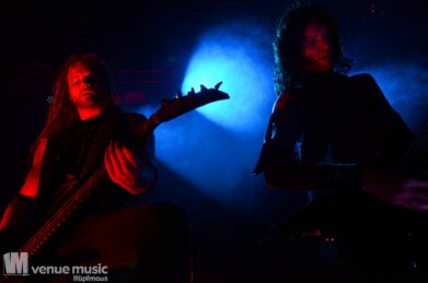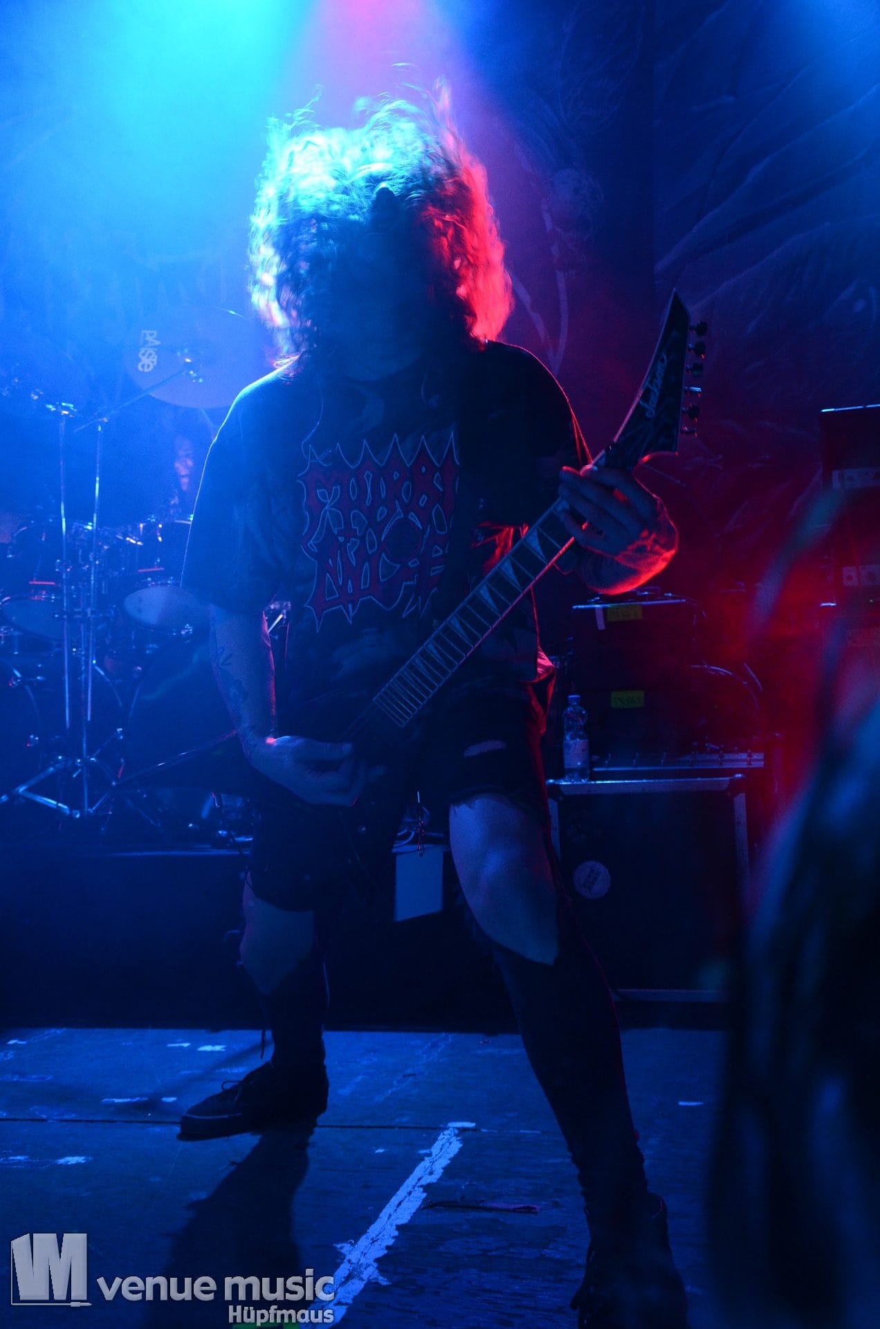 Warbringer haben dann alles so richtig weggeblasen. Der Sound war zwar generell nicht so der Bringer, aber das ist leider im Turock in der ersten Reihe oft so – man steht halt genau unter den Boxen, die an der Decke hängen und bekommt den Sound von da nicht ab. Egal, Spaß hats trotzdem gemacht. Auch auf der Bühne war so richtig Action. Die Jungs haben Gas gegeben ohne Ende. Es war auch voll, aber angenehm voll, eigentlich war es bis auf ein bisschen Moshpit entspannt – bis auf den einen Typen, der doch schon recht angetrunken war und bereits bei Evil Invaders augenscheinlich nicht mehr selber grade stehen konnte. Nervte dann auf Dauer, wenn ein mind 1,90 großer gefühlt mind. 120 kg schwerer Typ genau immer auf den Mädels vorne drauf hängt. Sonst hat nämlich niemand gedrängelt. (Die Duftmarke, wenn man leider nun mal genau das Gesicht auf Achselhöhe von dem hat und der mit ausgestrecktem Arm immer versucht, sich vor zu drängeln und sich auf einen drauf legt, die beschreibe ich auch mal nicht *fg*) Aber mit vereinten Kräften haben wir ihn dann klar gemacht, dass das scheisse ist ;) und dann war Ruhe…