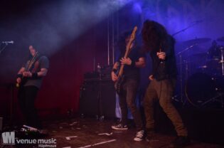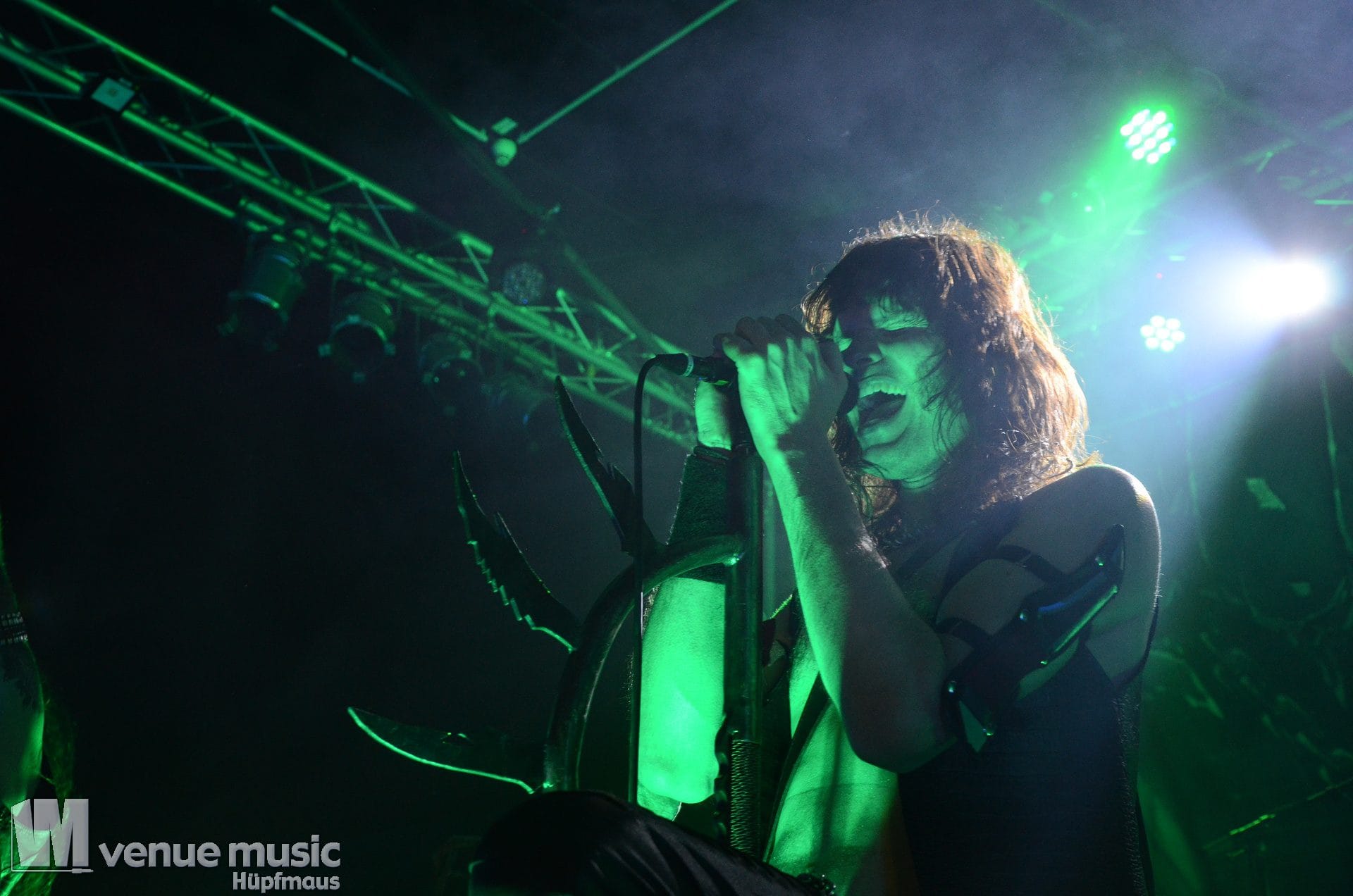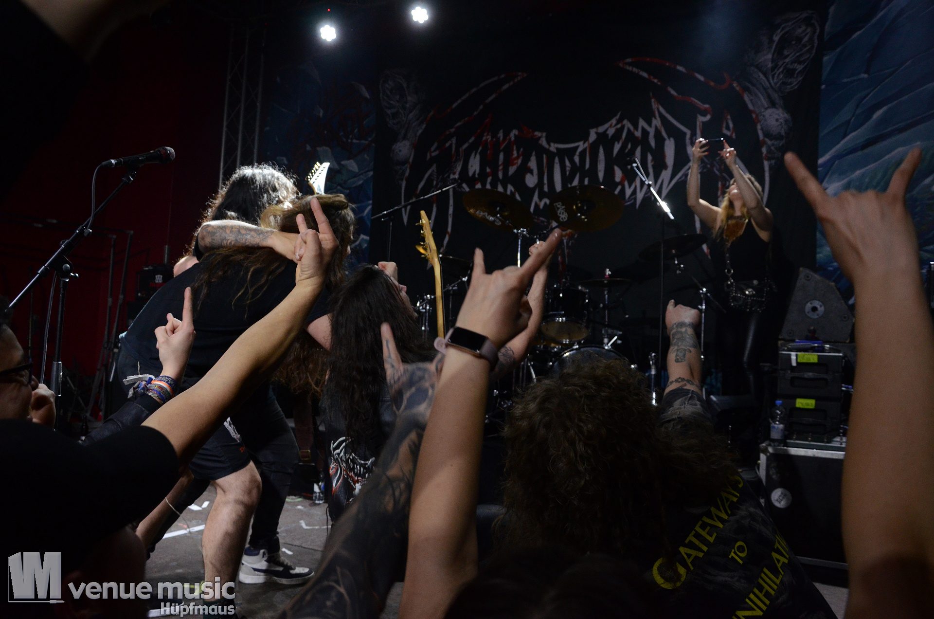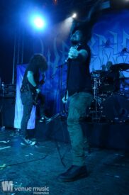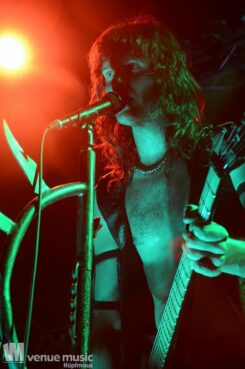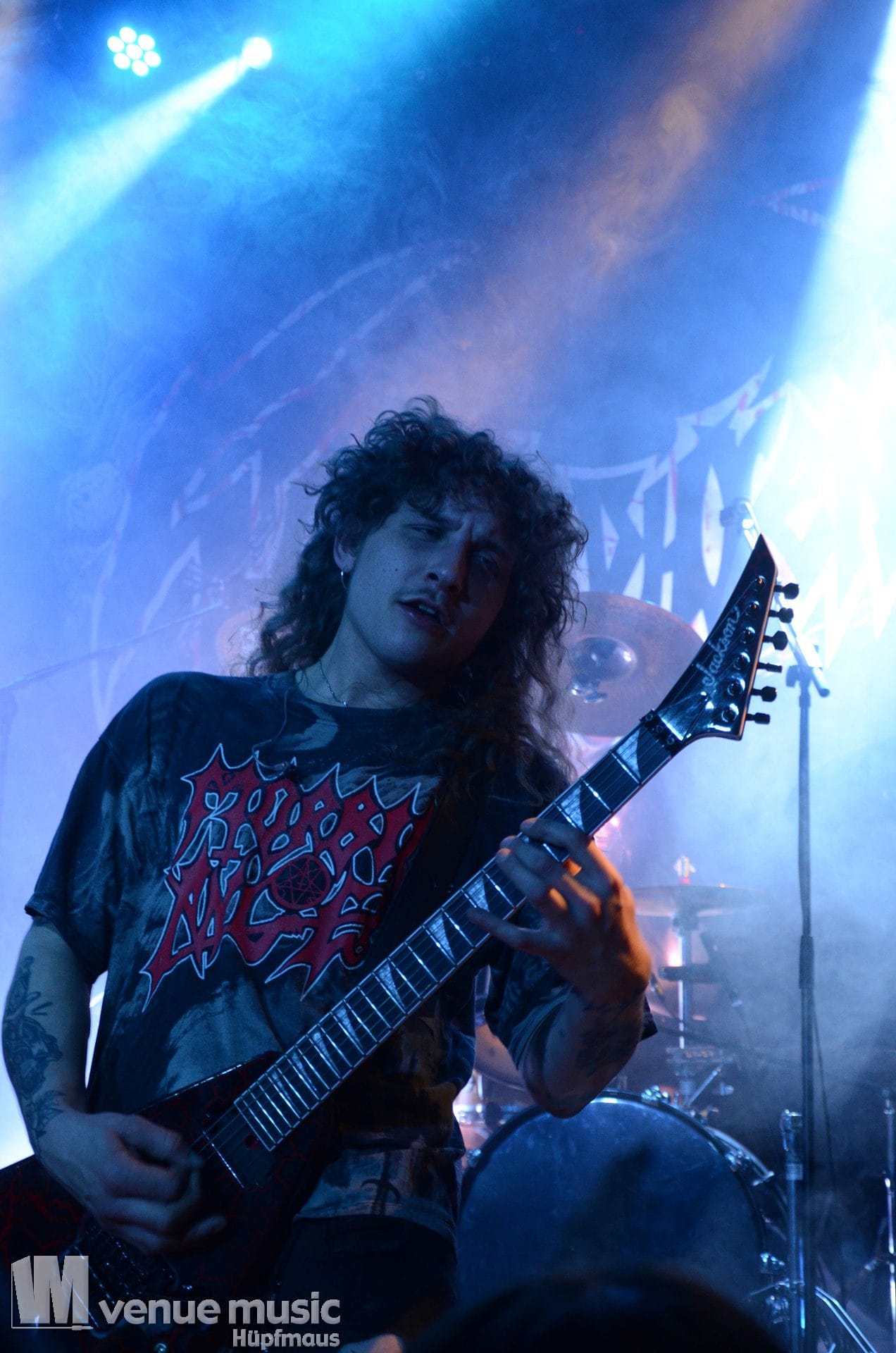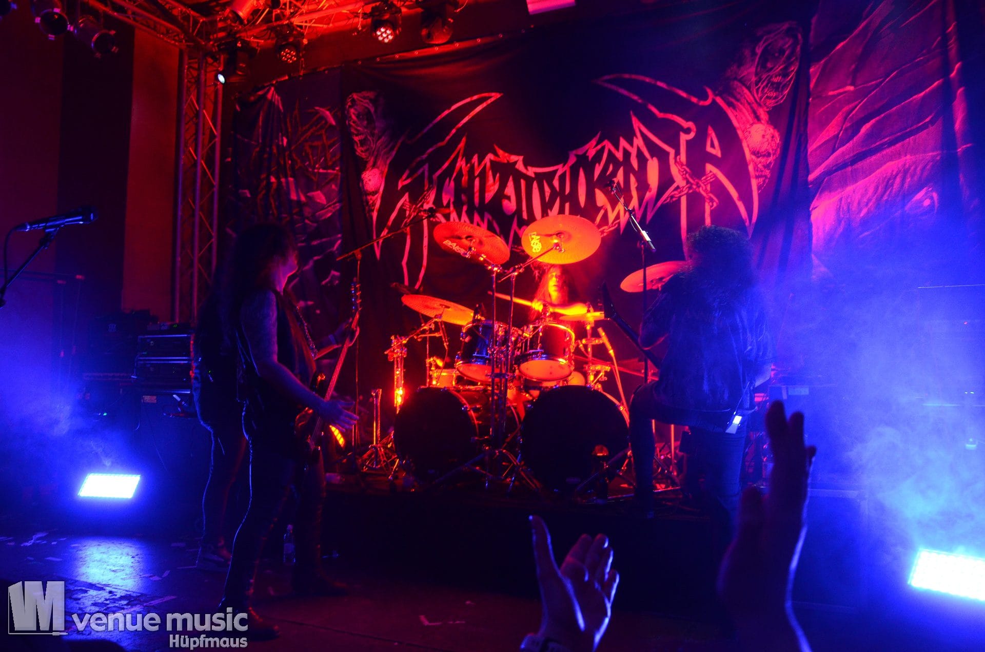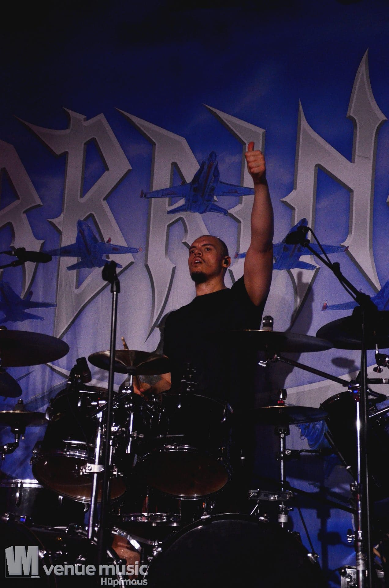 Warbringer haben dann alles so richtig weggeblasen. Der Sound war zwar generell nicht so der Bringer, aber das ist leider im Turock in der ersten Reihe oft so – man steht halt genau unter den Boxen, die an der Decke hängen und bekommt den Sound von da nicht ab. Egal, Spaß hats trotzdem gemacht. Auch auf der Bühne war so richtig Action. Die Jungs haben Gas gegeben ohne Ende. Es war auch voll, aber angenehm voll, eigentlich war es bis auf ein bisschen Moshpit entspannt – bis auf den einen Typen, der doch schon recht angetrunken war und bereits bei Evil Invaders augenscheinlich nicht mehr selber grade stehen konnte. Nervte dann auf Dauer, wenn ein mind 1,90 großer gefühlt mind. 120 kg schwerer Typ genau immer auf den Mädels vorne drauf hängt. Sonst hat nämlich niemand gedrängelt. (Die Duftmarke, wenn man leider nun mal genau das Gesicht auf Achselhöhe von dem hat und der mit ausgestrecktem Arm immer versucht, sich vor zu drängeln und sich auf einen drauf legt, die beschreibe ich auch mal nicht *fg*) Aber mit vereinten Kräften haben wir ihn dann klar gemacht, dass das scheisse ist ;) und dann war Ruhe…