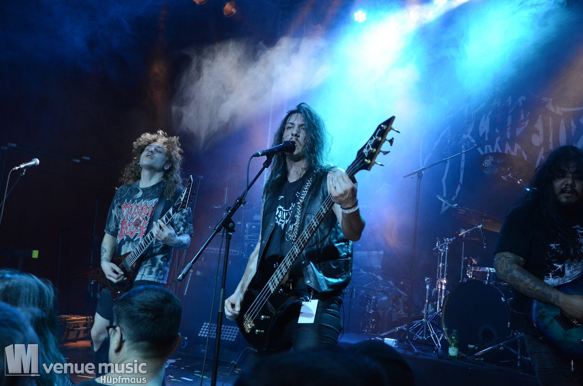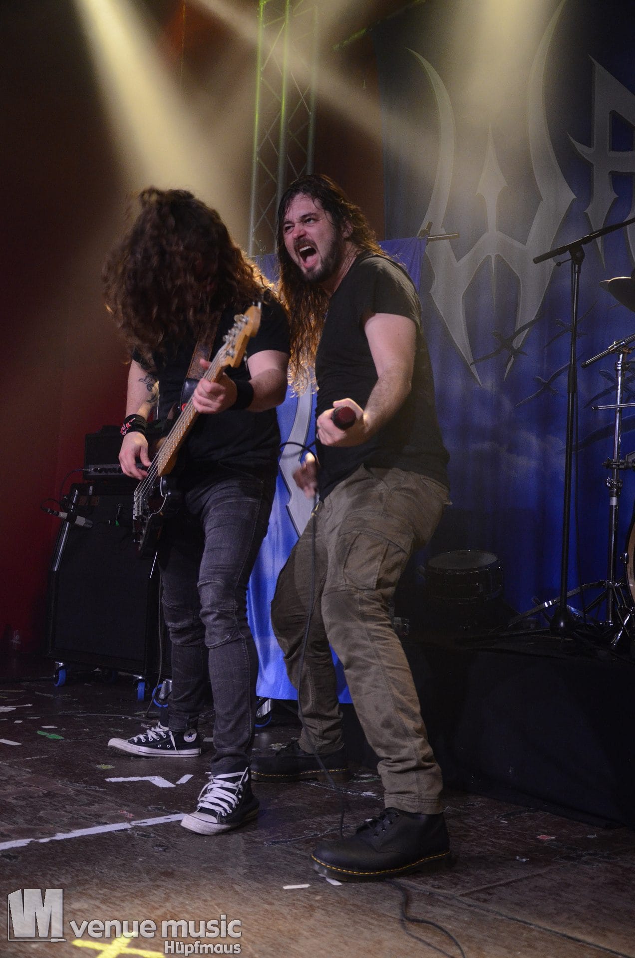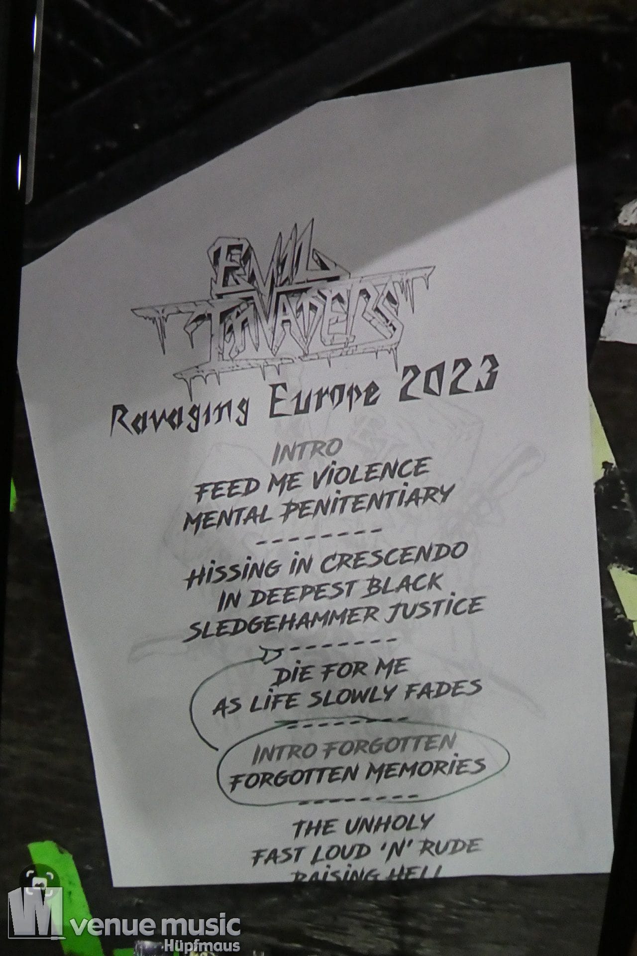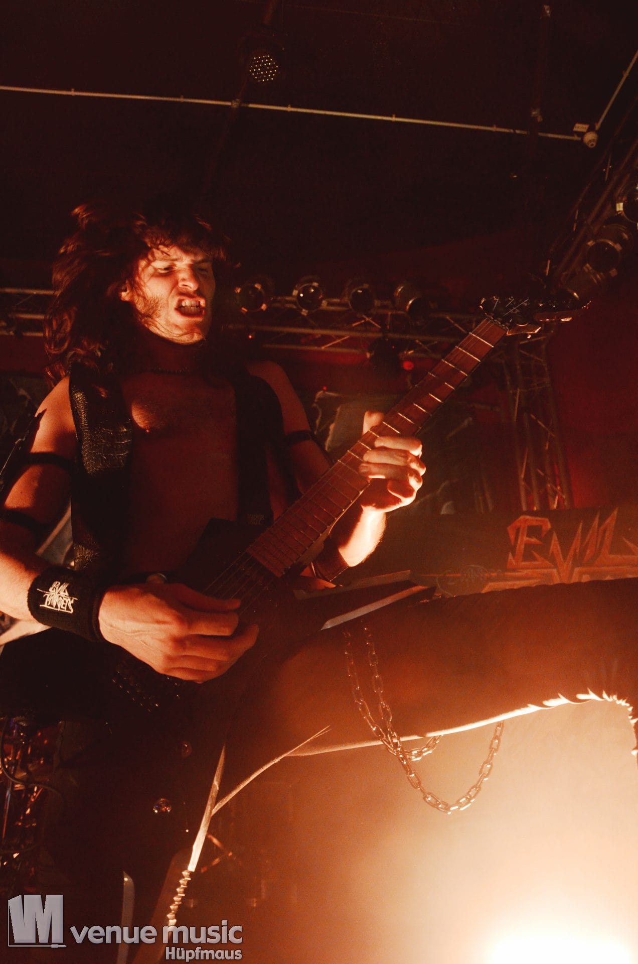 Die Headliner sollten beide (leider nur) 60 Minuten spielen. Es wurde eh schon recht knapp mit den Umbaupausen. Ich habe übrigens noch nie einen Drummer gesehen, der quasi während des ganzen Konzertes ein Dauergrinsen im Gesicht hatte. Das war echt ein Novum bei Evil Invaders. Die Jungs hatten sichtlich Spaß. Unsere Musik war es nicht ganz, aber egal, hauptsache live!