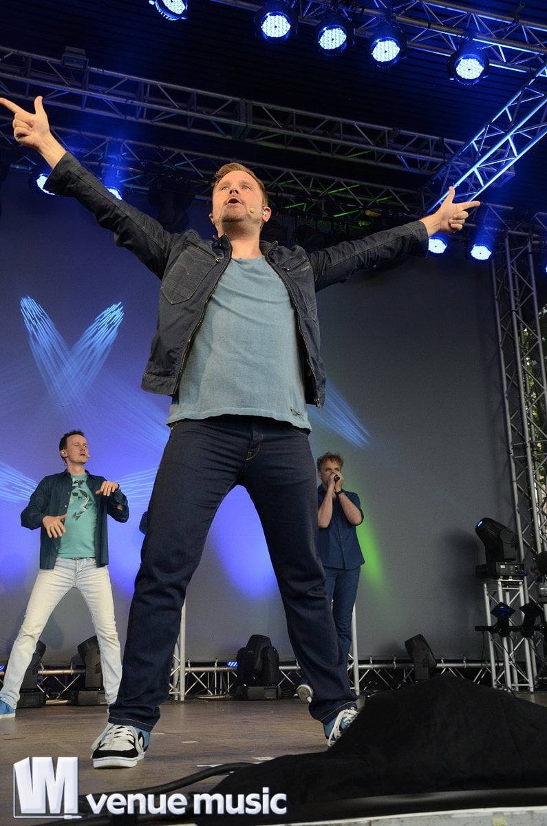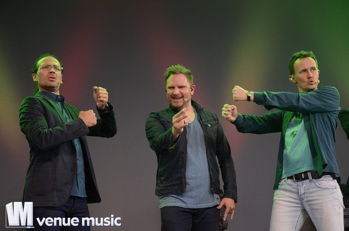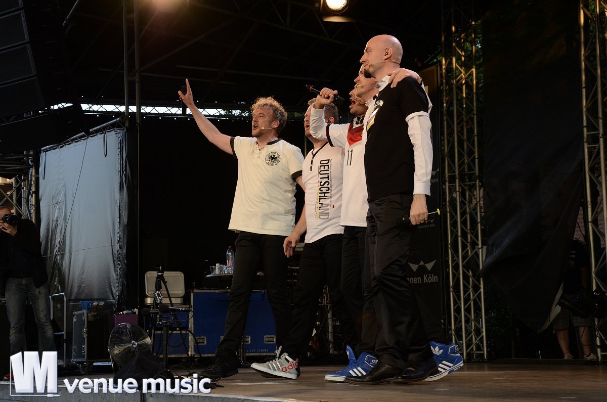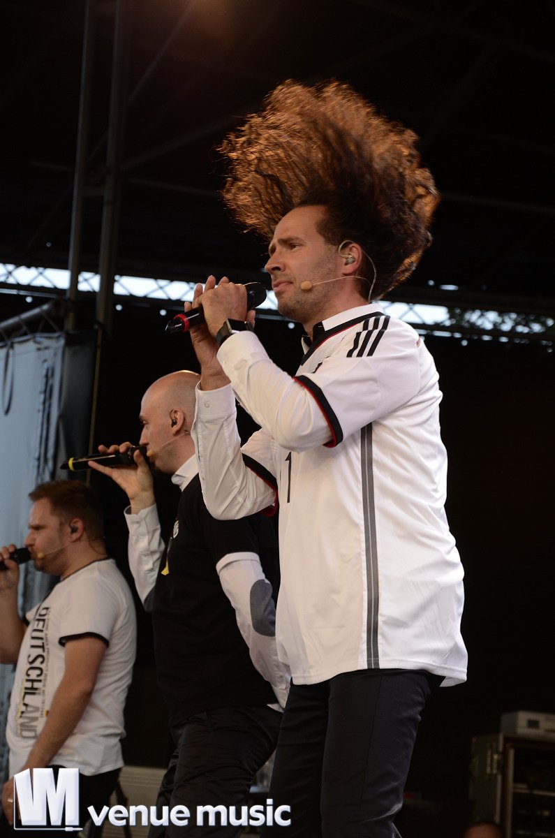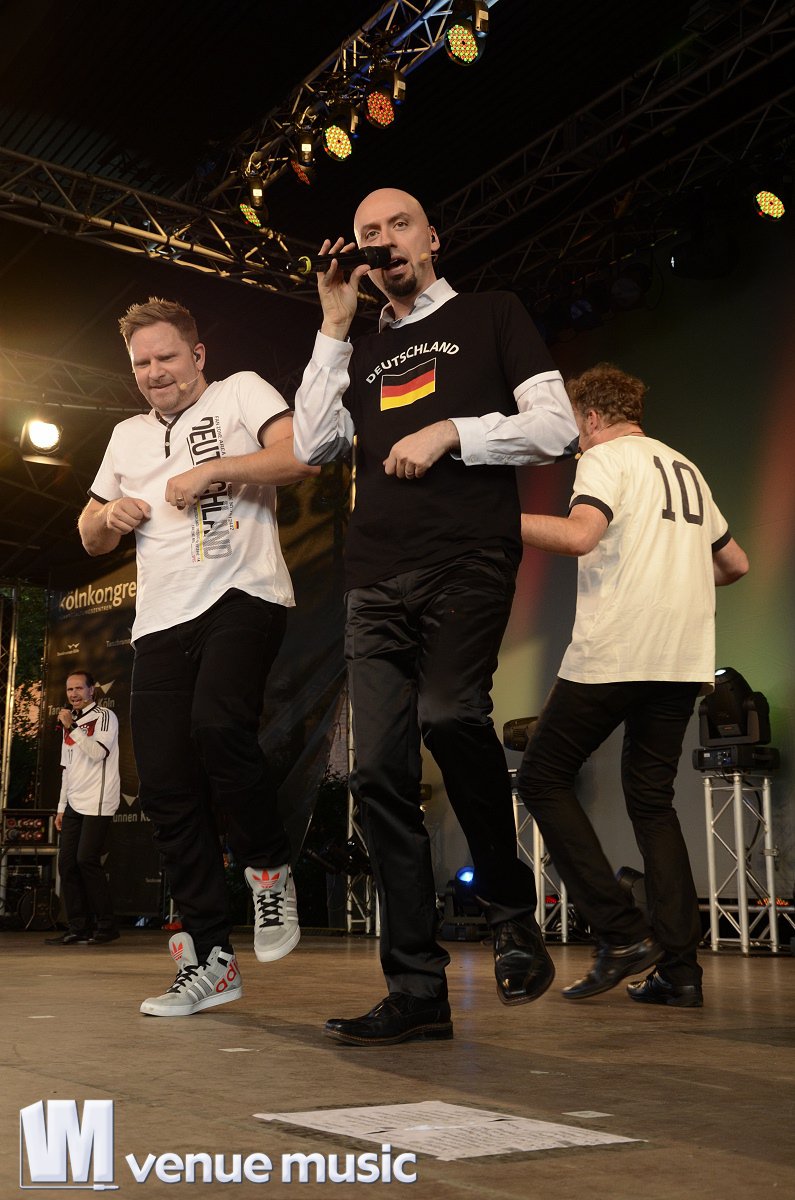 Knapp 3 Stunden inkl. Pause sangen und tanzten die Wise Guys für und mit ihren Fans – pünktlich zum Deutschlandspiel um 21 Uhr war dann aber Schluß. Leider mussten dafür ein paar Songs von der Setlist weichen, wie z.B. „Radio“ und „Kölner“, die einige sicher gerne noch gehört hätten.