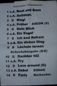 Eine Totalnacht kann man gar nicht beschreiben, man muss dabei gewesen sein. In jedem Block ein anderes Bühnenoutfit, Klassiker, neue Songs und Überraschungen. So muss ein Konzert sein. „Du weißt, Du wirst diese Totalnacht irgendwie überstehen.. Du weißt nur noch nicht WIE…“ Na: mit jeder Menge guter Laune und guter Musik natürlich! Vielen Dank für das tolle Konzert! „Was für eine Nacht….“