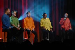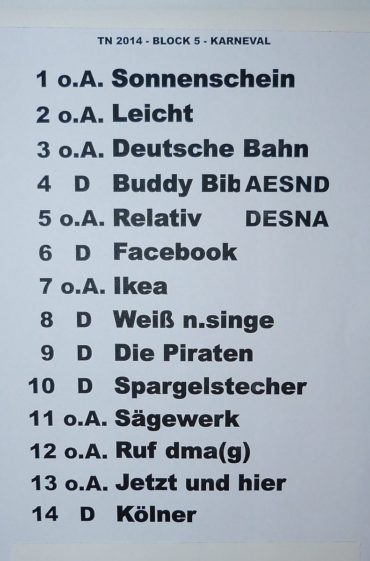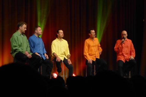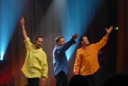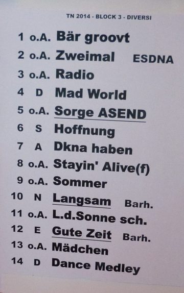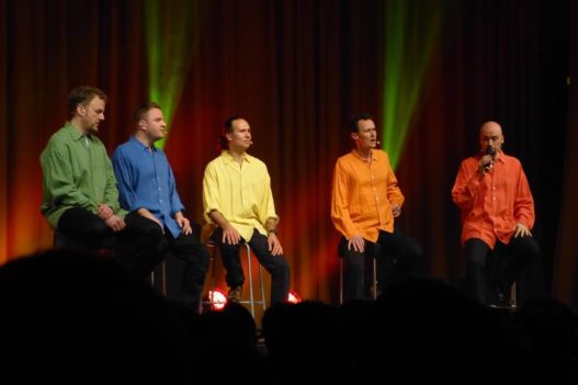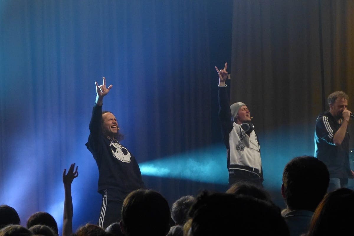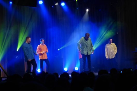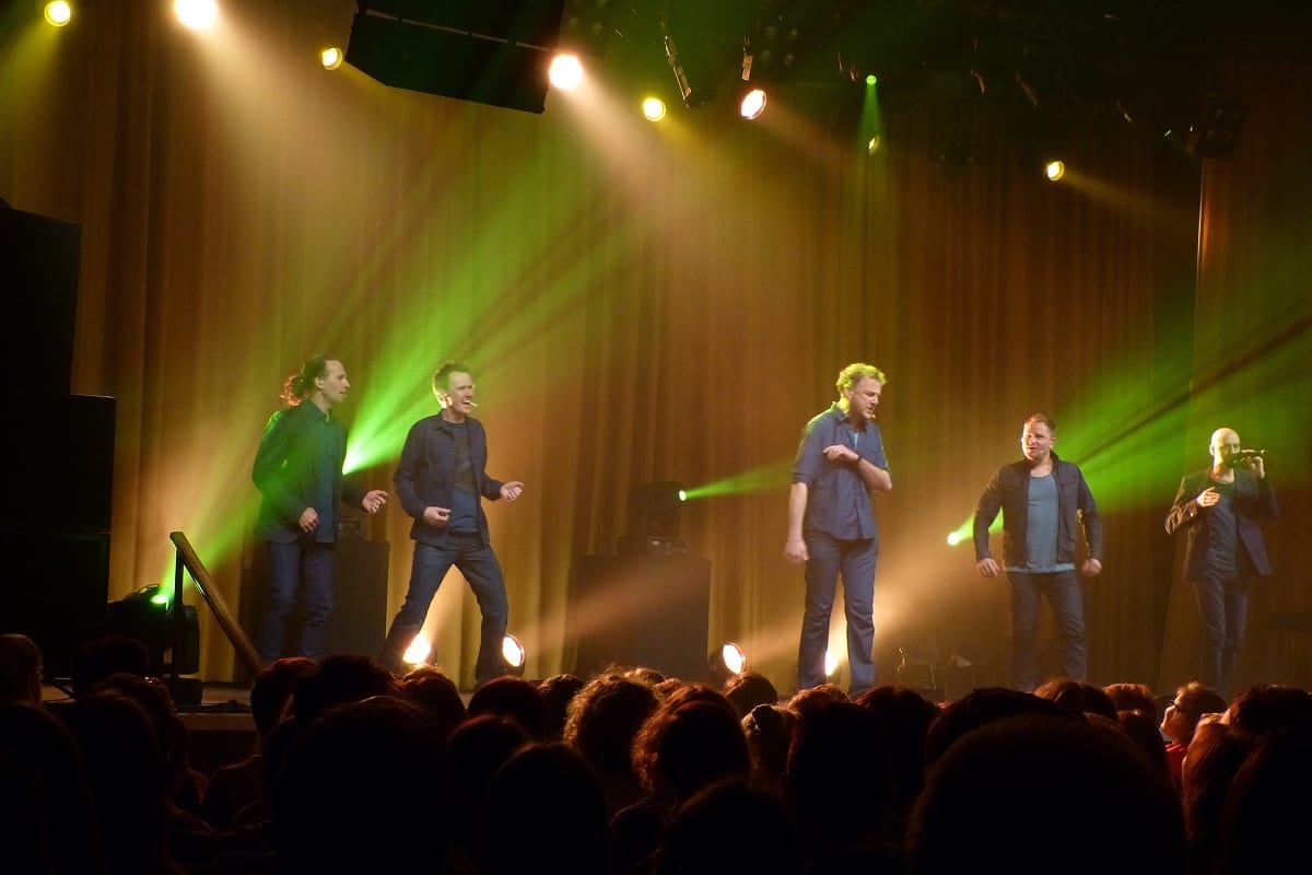 Ein ganz besonderes Event fand am 08.03.2014 statt: eine Wise Guys Totalnacht. Diese gibt es nur alle 2 Jahre und umfasste ursprünglich mal alle Songs der Wise Guys. Das ist inzwischen bei der Menge an Songs nicht mehr möglich – dann wäre es nicht nur einen Totalnacht, eher eine Totalwoche – aber insgesamt 70 Songs in 5 Blöcken a ca. 1 Std. bekamen die Fans zu hören. Dementsprechend begehrt waren auch die Tickets und man musste letztes Jahr im Herbst schon viel Glück gehabt haben, um welche zu ergattern (nur telefonisch, max. 2 Karten pro Besteller…). Doch alle Glücklichen waren bei so einer besonderen Sache gerne bereit den für die Wise Guys hohen Betrag von 66,- EUR (44,- EUR ermäßigt) zu zahlen, vor allem weil die kompletten Einnahmen jedes Mal gespendet werden. 48.000,- EUR kamen dieses Jahr zusammen, welche zur Hälfte an ein Hospiz in Hürth und zu Hälfte an Misereor gingen. Natürlich mit feierlicher Scheck-Übergabe.