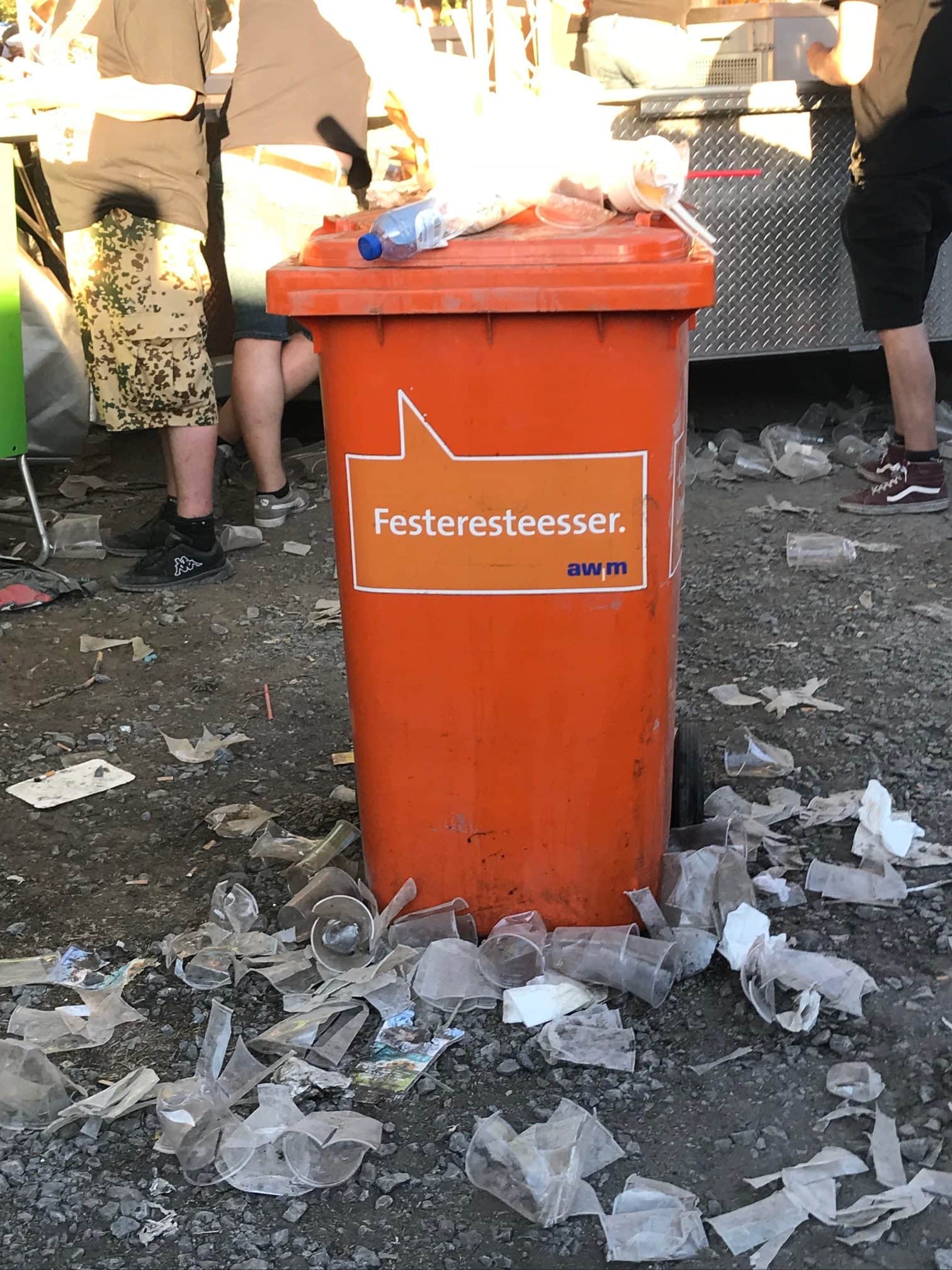 Symbolisch steht auch der Pisseteich für den Gigantismus des Veranstalters. Bereits mittags stand im Pissoirbereich knöcheltief das Urin, weil man wohl nicht damit gerechnet hatte, dass viele Männer viel pissen müssen. Also lief alles über. Auswechseln? Fehlanzeige. Da relativierte sich meine Beobachtung kurz zuvor, dass es auf Festivals immer dieses eine Arschloch gibt, dass direkt neben freien Pissoirs steht und gegen den Zaun strullt. Kurze Zeit später landete eh alles auf dem Boden.