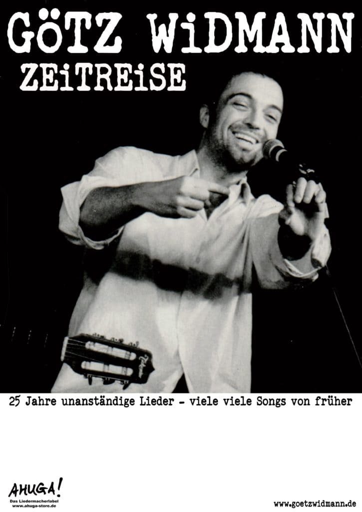 „Zeitreise“ heißt die aktuelle Tour von Götz Widmann, bei der ein Fokus auf Joint-Venture-Klassikern liegen soll. Denn im Oktober vor 25 Jahren, am 9. Oktober 1993 hatten Kleinti und Götz ihren ersten Auftritt als Joint Venture bei einem Benefiz gegen Rassismus. Zwei Songs dauerte der Pausenfüllerauftritt, der der Auftakt zu inzwischen 25 Jahren als Liedermacher für Götz war.