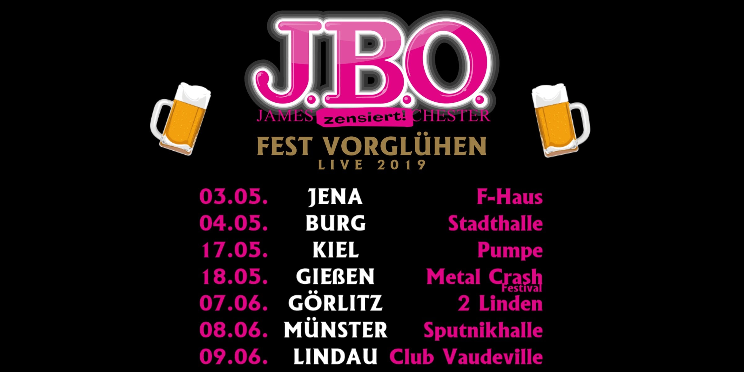 Nächstes Jahr feiern J.B.O. ihr 30jähriges Bestehen, die Party zu diesem Anlass am 28. und 29. Juni heißt schlicht und einfach „Ein Fest“. Aber was wäre ein Fest ohne Vorglühen? Rund um das verlegte Metal Crash Festival haben J.B.O. noch ein paar Konzerte gelegt und fertig ist die „Fest Vorglühen Tour“. Und für die Zeit zwischen dem Ende der Tour und der großen Geburtstagsparty ist auch ein neues Album angekündigt. Einen Namen dafür gibt es zwar noch nicht – oder er wird noch nicht verraten – aber es sind ja noch ein paar Tage hin.