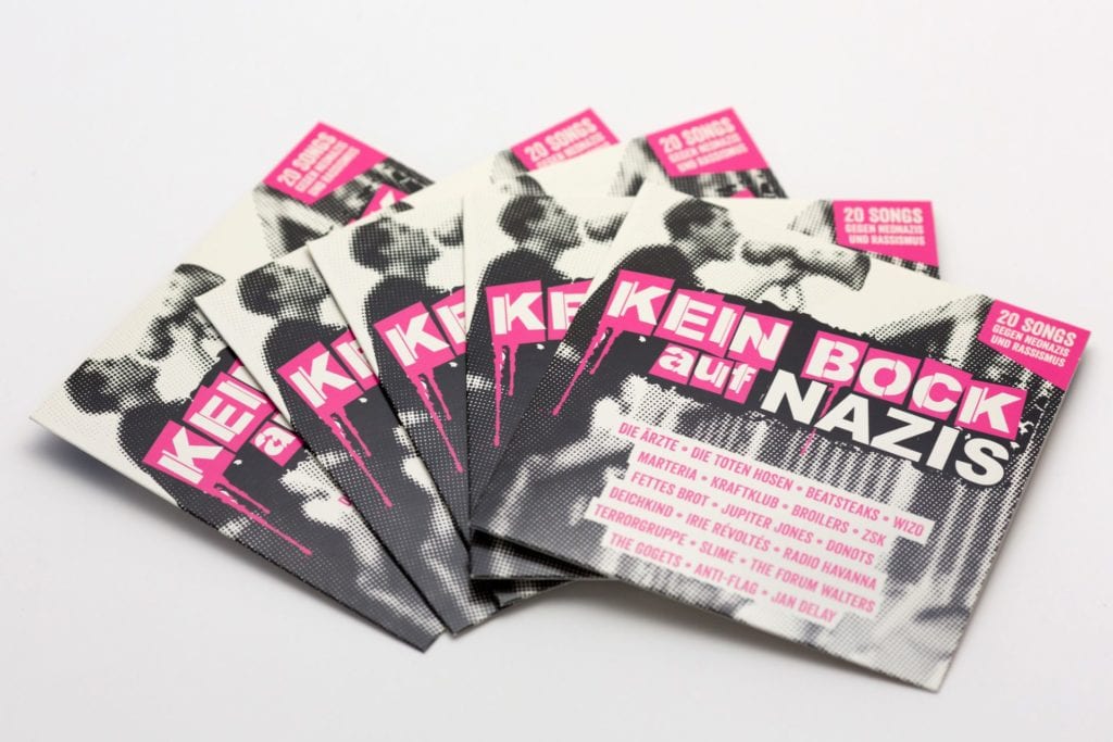 In einer Auflage von 30.000 Stück wird diesen Monat der „Kein Bock auf Nazis“-Sampler unter die Leute gebracht. Bei ausgewählten Konzerten ist der Sampler zu bekommen und er wird jeder Bestellung im „Kein Bock auf Nazis“-Shop beigelegt. 20 Bands haben jeweils einen Song zum Sampler beigetragen, darunter Die Ärzte, Die Toten Hosen, Jupiter Jones, WIZO oder die Beatsteaks. Man kann hier nur Bela B. zustimmen, der auf der Website zum Sampler zitiert wird: „Es sollte eigentlich keinen wundern, aber es ist trotzdem ermutigend und immer wieder beeindruckend, wie viele tolle Bands hier zusammen kommen um zu sagen, dass sie keinen Bock auf Nazis haben“.