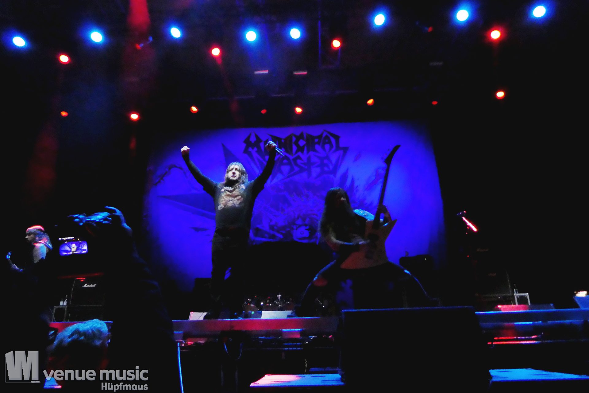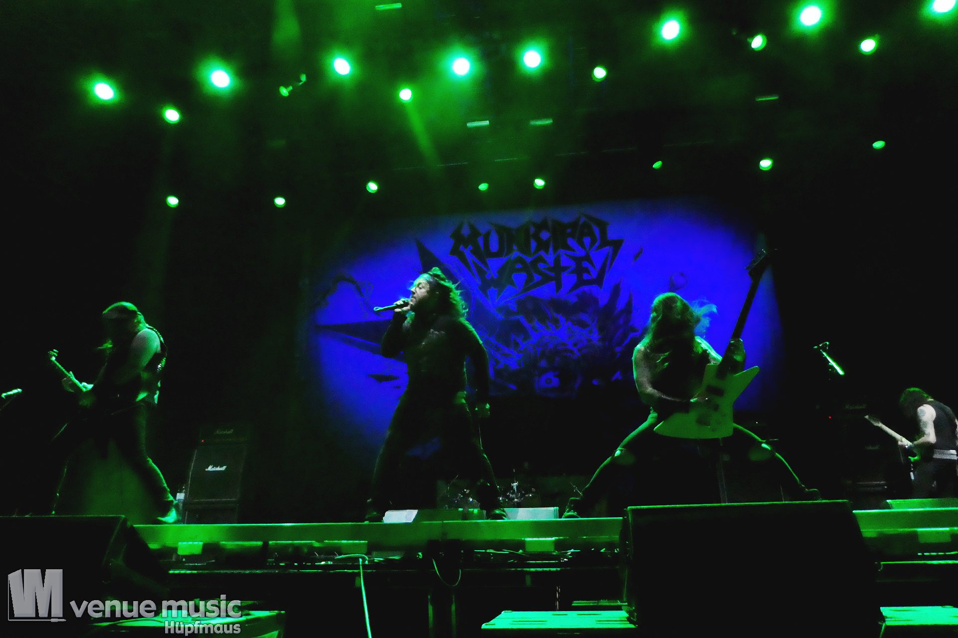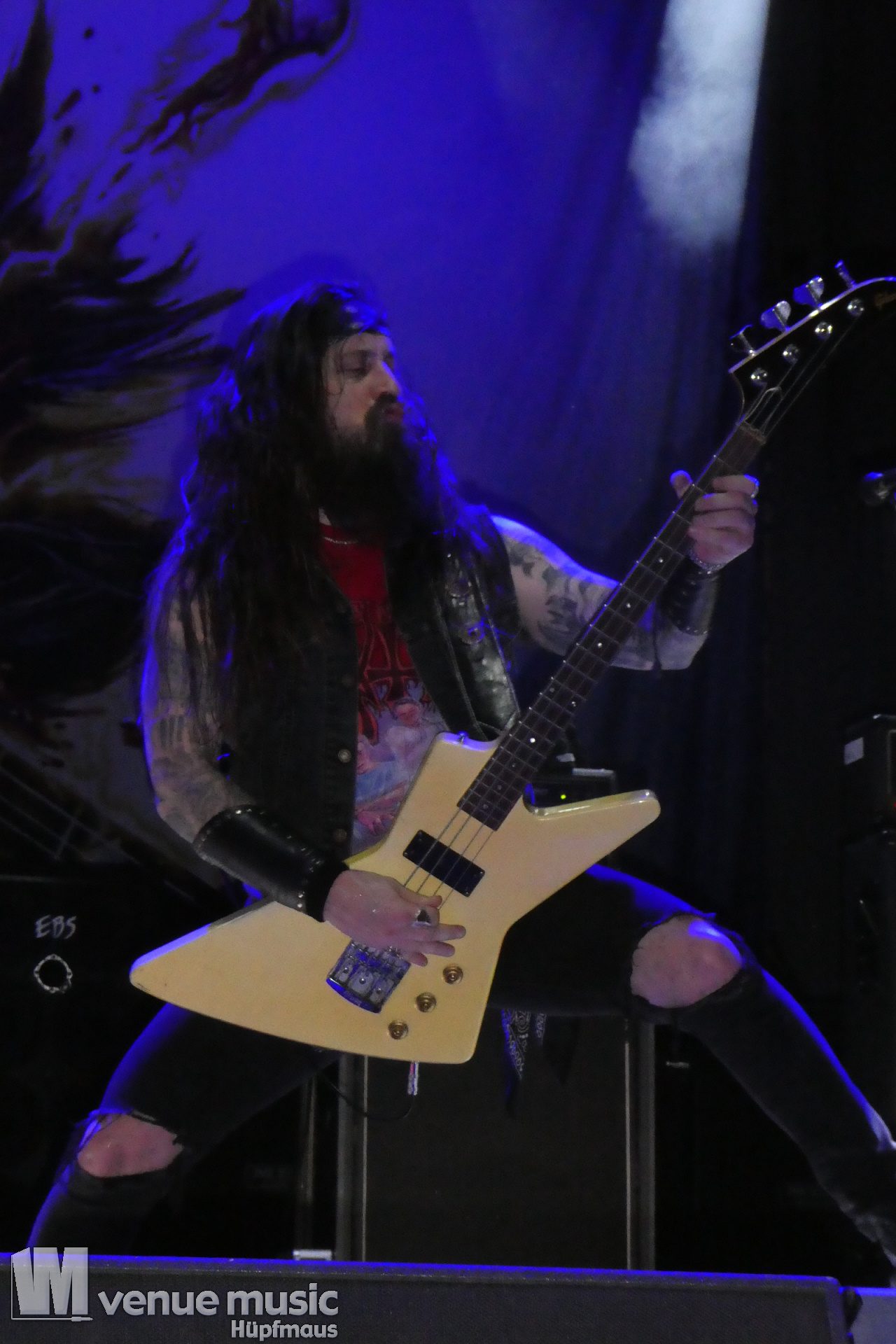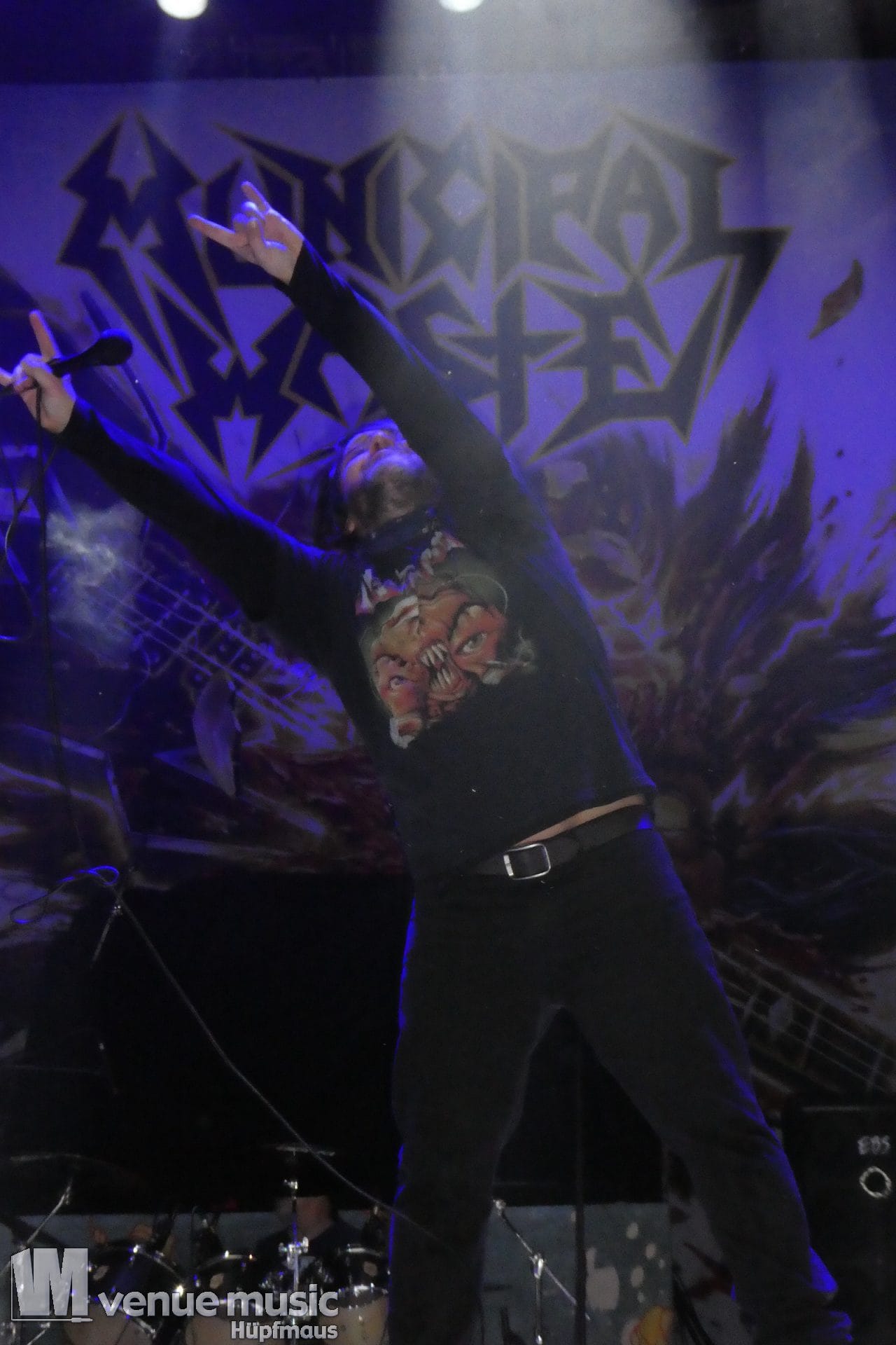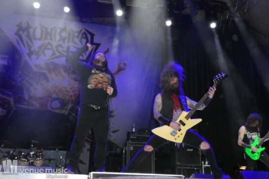 Nun aber rein in die Halle und geile Musik hören. Den Anfang machten Municipal Waste, die wir bereits 2019 im Kulttempel bei ihrer Headliner Show gesehen hatten. Wir machten uns also schon mal bereit für viele Crowdsurfer, denn damals ging das da richtig ab. Ja, es gab auch so einige, aber es war noch voll OK und so konnten wir die Band super abfeiern. Das machte Spaß!
