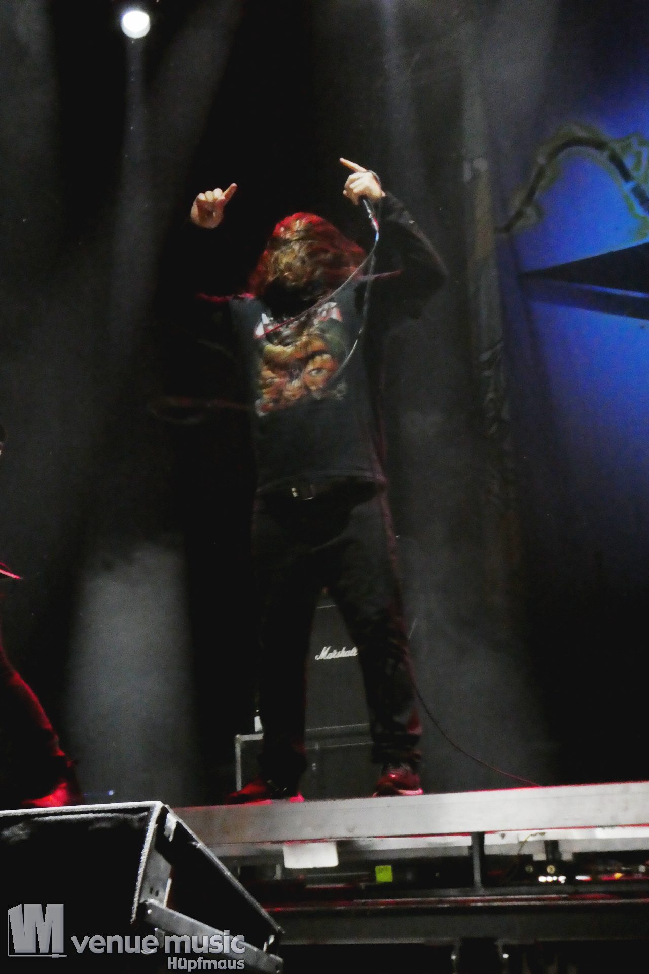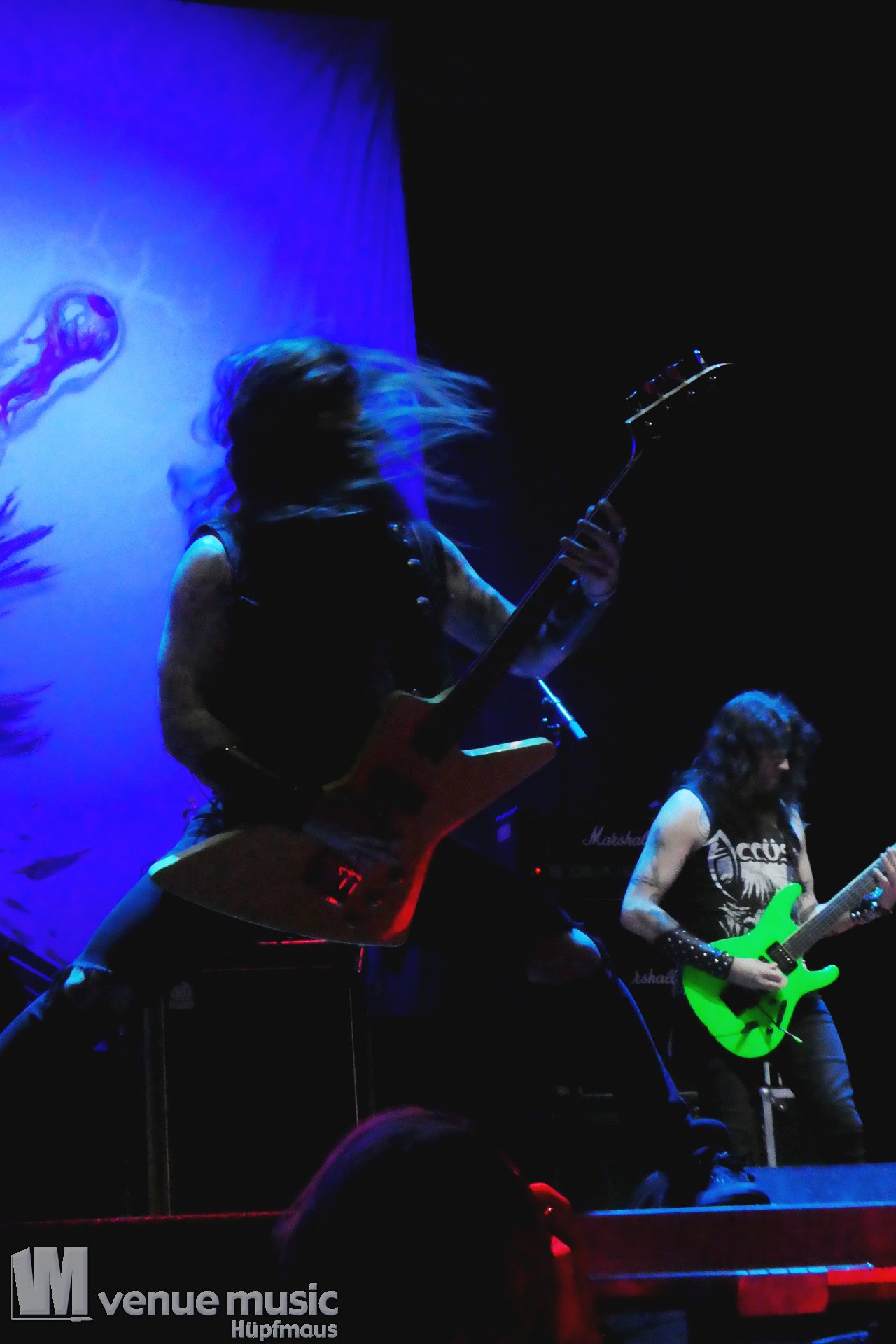 Diverse Songs der aktuellen Scheibe „Electrified Brain“(*) hatten es in die Setlist geschafft, ebenso gab es z.B. Songs der Alben „Slime and Punishment“, „The Fatal Feast“ oder „The Last Rager“ auf die Ohren, die ebenfalls hier alle im Regal stehen. So konnten wir unter anderem zu „Demoralizer“, „Slime and Punishment“, „Mind Eraser“ oder „Born to Party“ abfeiern. Das war ein guter Einstieg in den Abend!