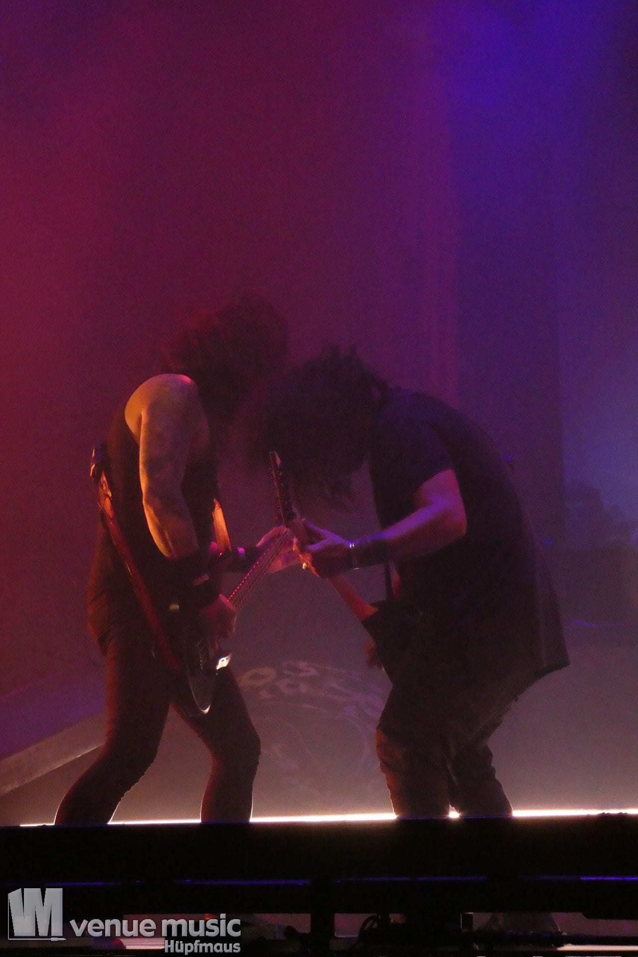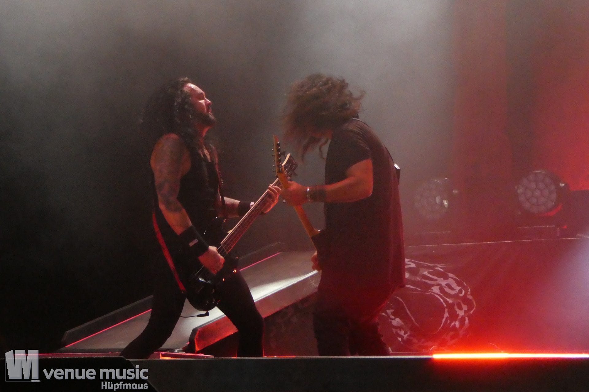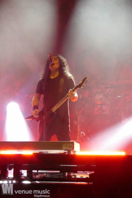 Lamb of God hatte ich zwar schon mal auf einem Konzert gesehen, aber kannte an sich nichts. Auf der Bühne ging es aber gut ab, bei einigen Songs fehlte mir aber so ein bisschen die Grundgeschwindigkeit und sie konnten mich nicht ganz vom Hocker hauen.. viele hinter uns aber schon, denn es fing an, da so richtig abzugehen. Unser Kumpel, der hinter uns stand, der konnte zeitweise seine Arme nicht wirklich bewegen. Da war schon richtig was los im Publikum. Aber noch machte es in der ersten Reihe Spaß…