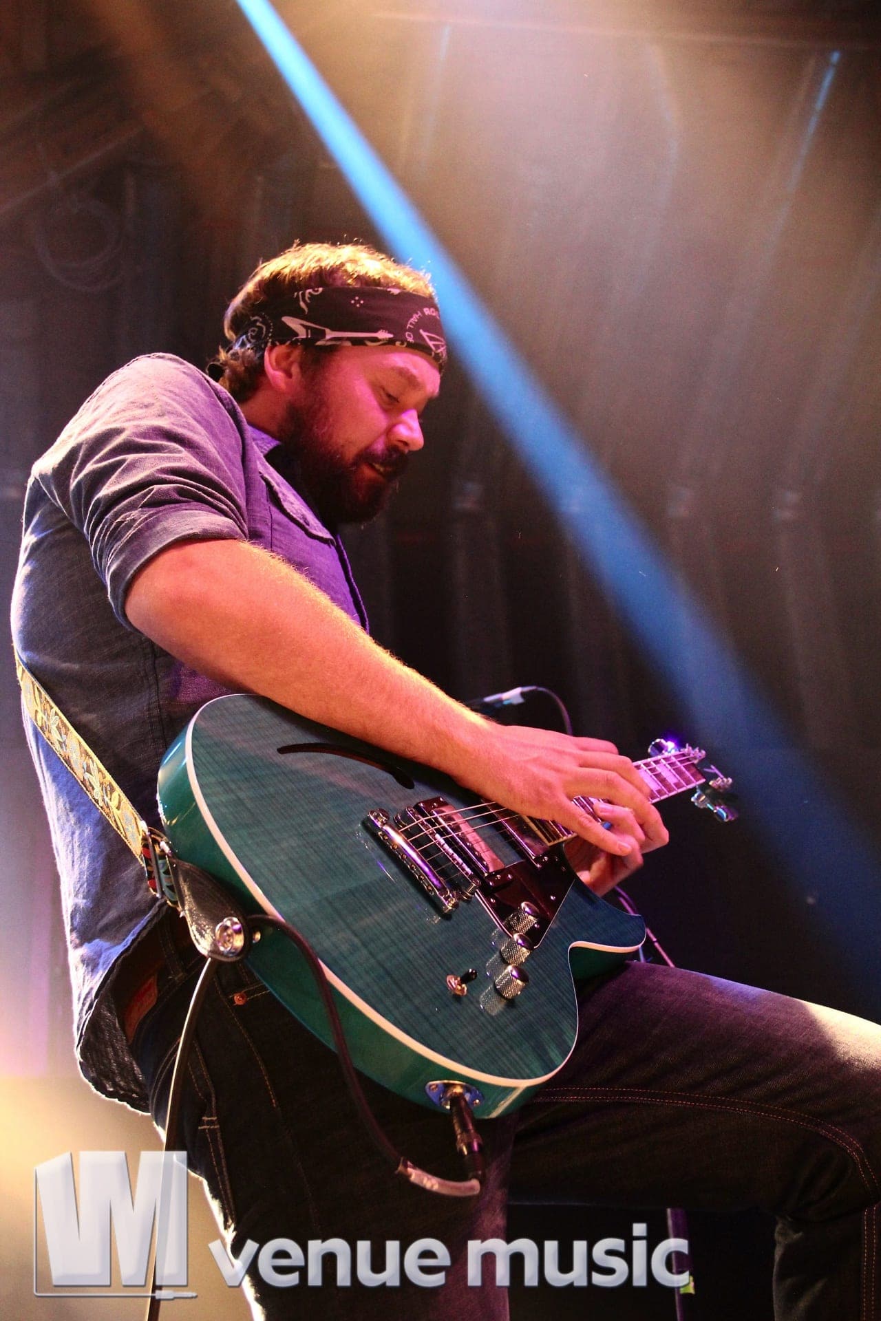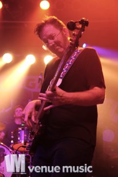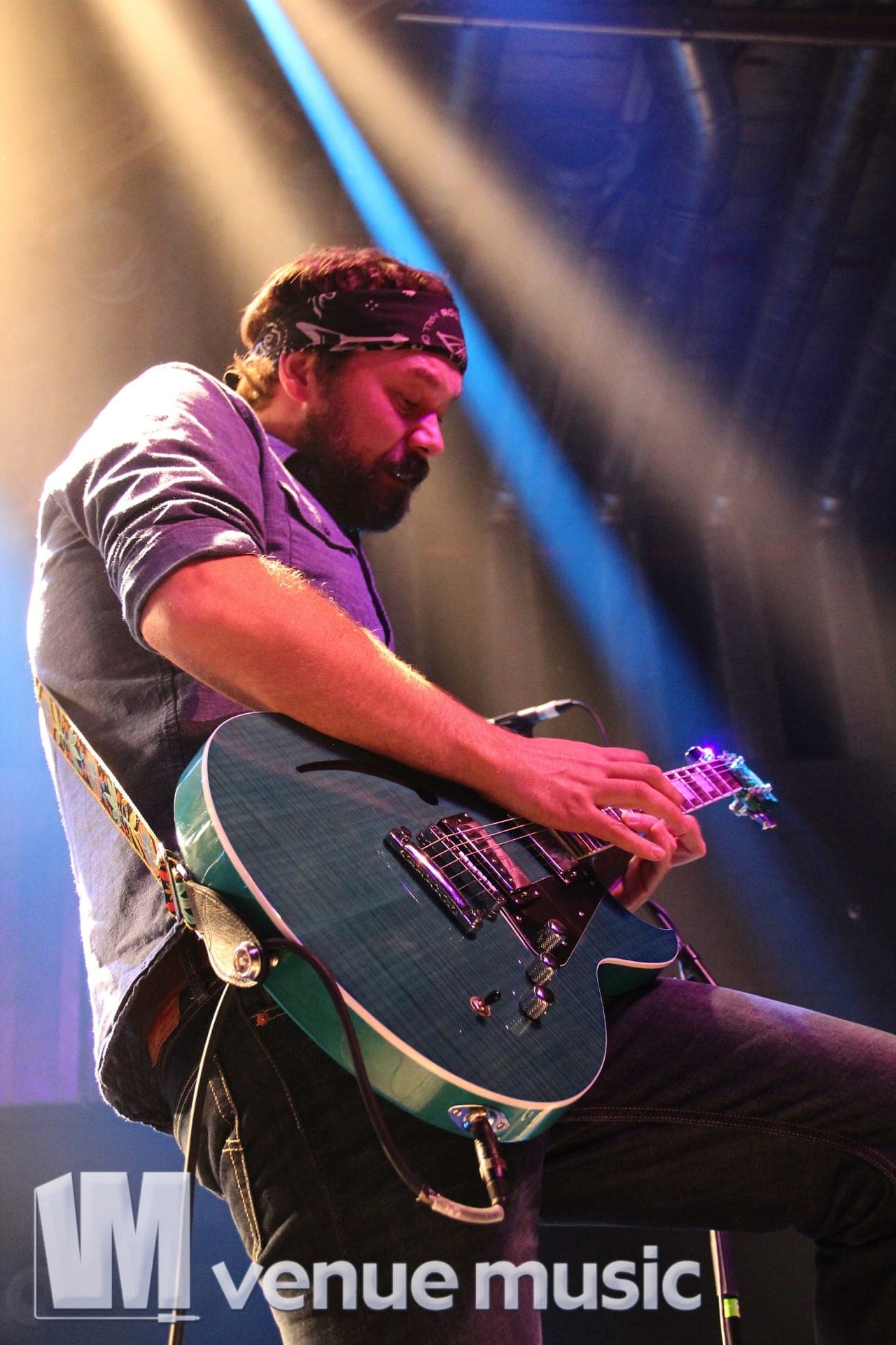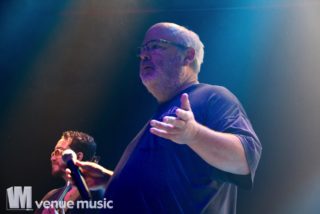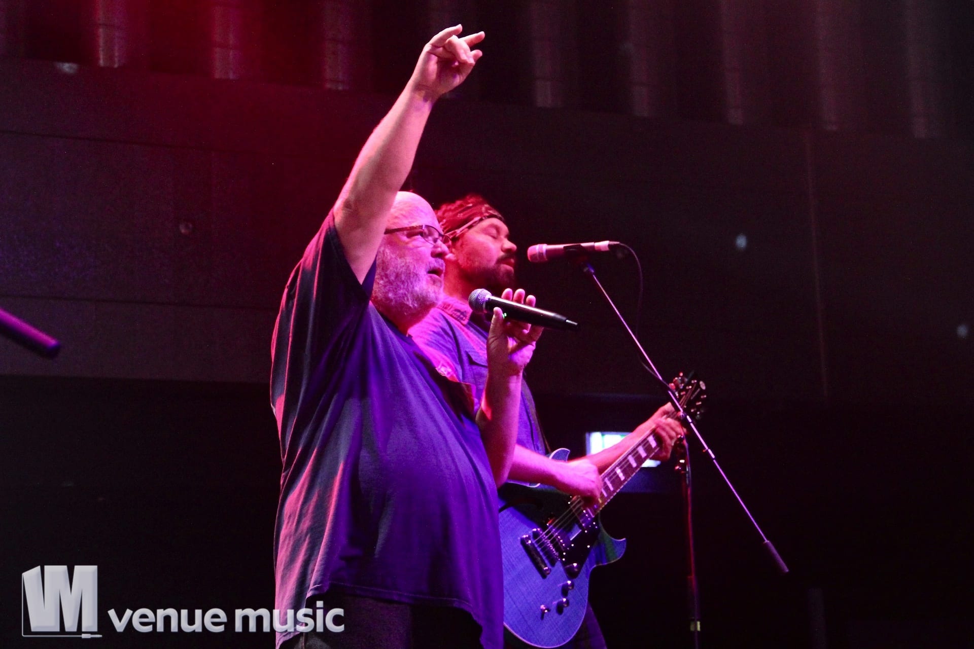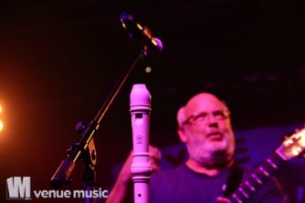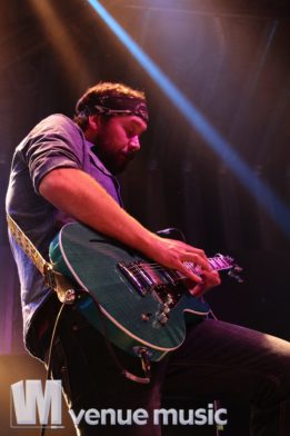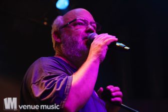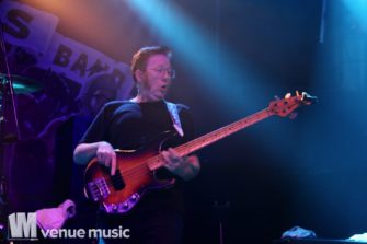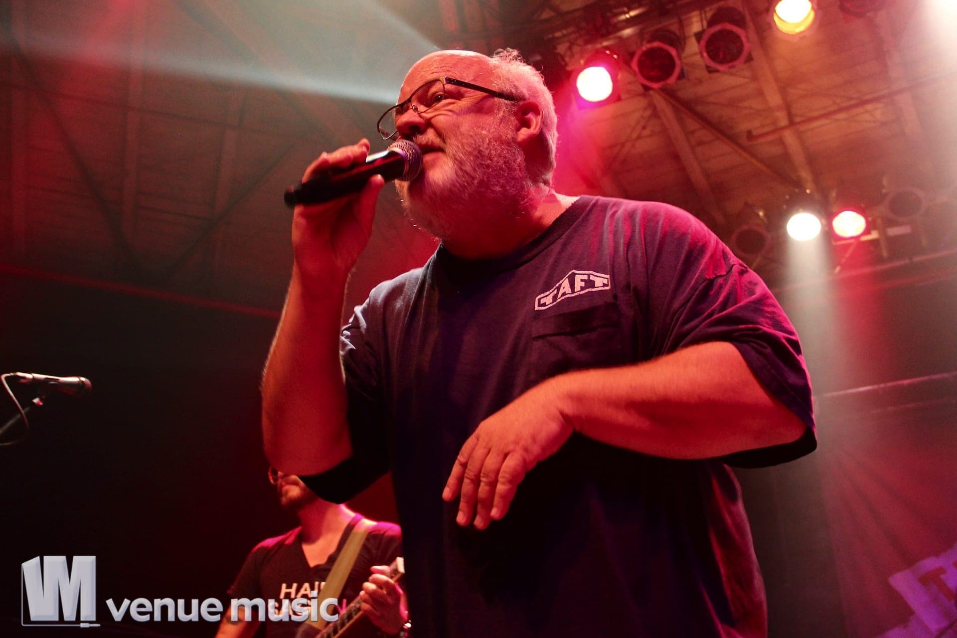 Dank dem Zoll der Schweiz und der offenbar sehr genauen Kontrolle der Merch-Artikel, fing das Konzert der Kyle Gass Band auf ihrer „Thundering Herd“(*) Tour in der Garage in Saarbrücken mit deutlicher Verspätung an. Da die Truppe aber ohne Support spielte, ging es dann aber wenigstens direkt los mit der Rockband, die nicht aussieht wie eine Rockband. Wer ohne die Band zu kennen ein Konzert der Kyle Gass Band besucht, der könnte im ersten Moment glauben, dass hier jemand einfach ein paar Leute von der Straße eingesammelt – oder, im Fall des Namensgebers der Band, vom Pool eines All-Inclusive-Hotels in Spanien – und direkt auf die Bühne gestellt hätte. Der Moment dauert aber wirklich nur einen Moment, denn sobald die fünf anfangen zu spielen, merkt man, dass hier eine verdammt gute Band auf der Bühne steht. Und das zeigte die Band während des ganzen Auftritts, zu dem auch mal ein kurzer Besuch im Graben bei den Fans in der ersten Reihe gehörte (Berührungsängste? Kennt Kyle Gass offensichtlich nicht).
