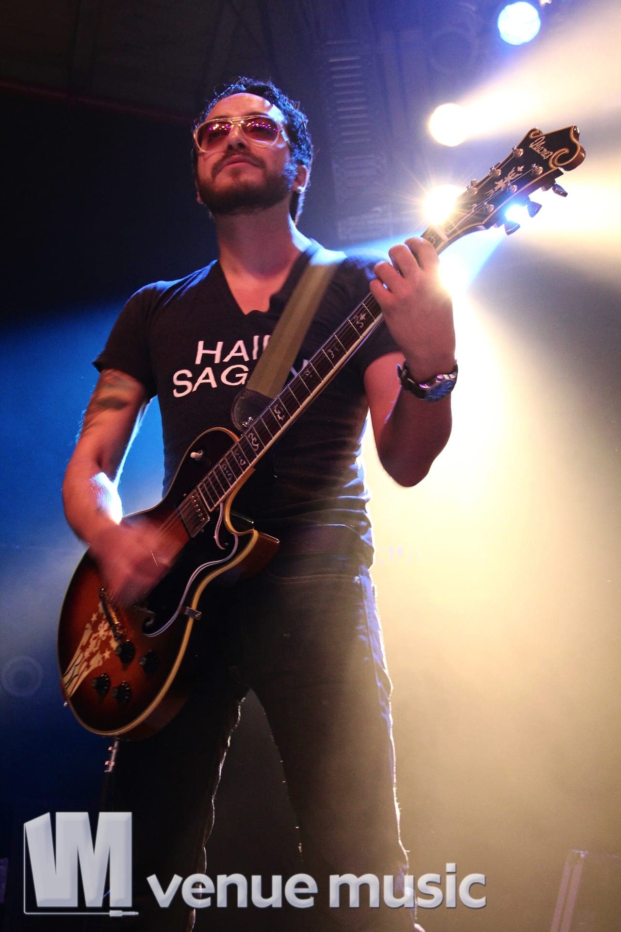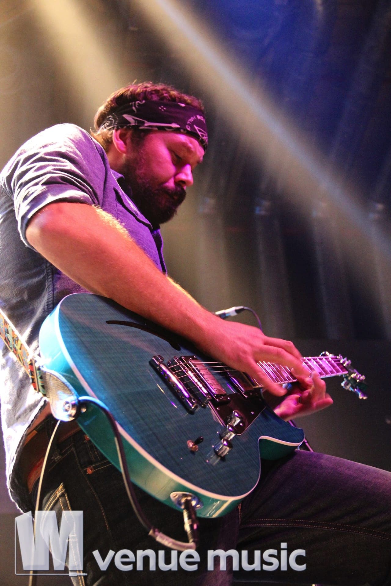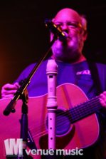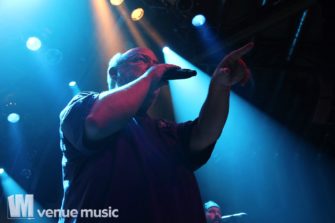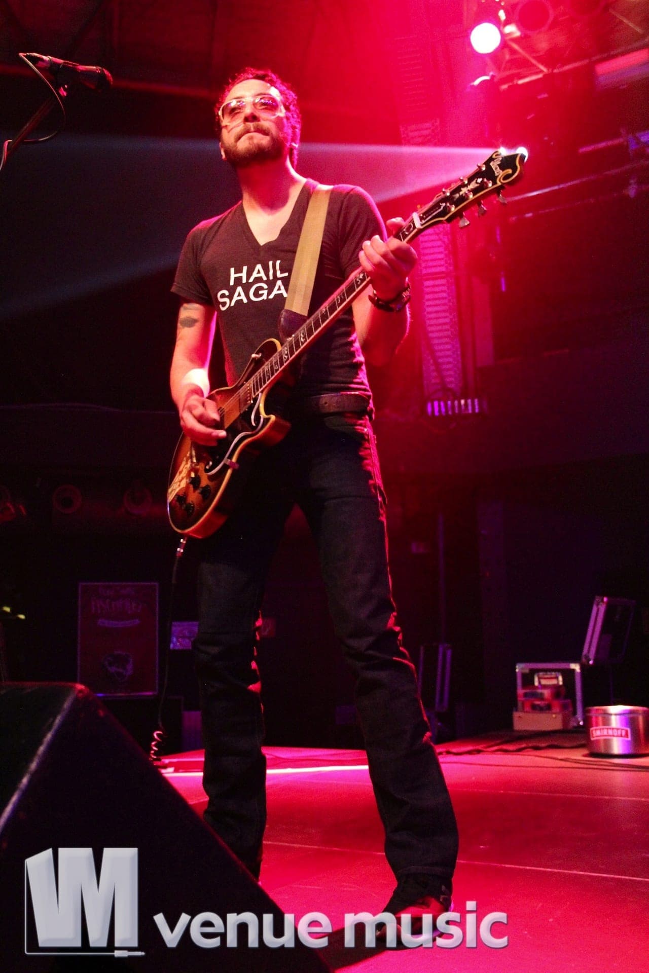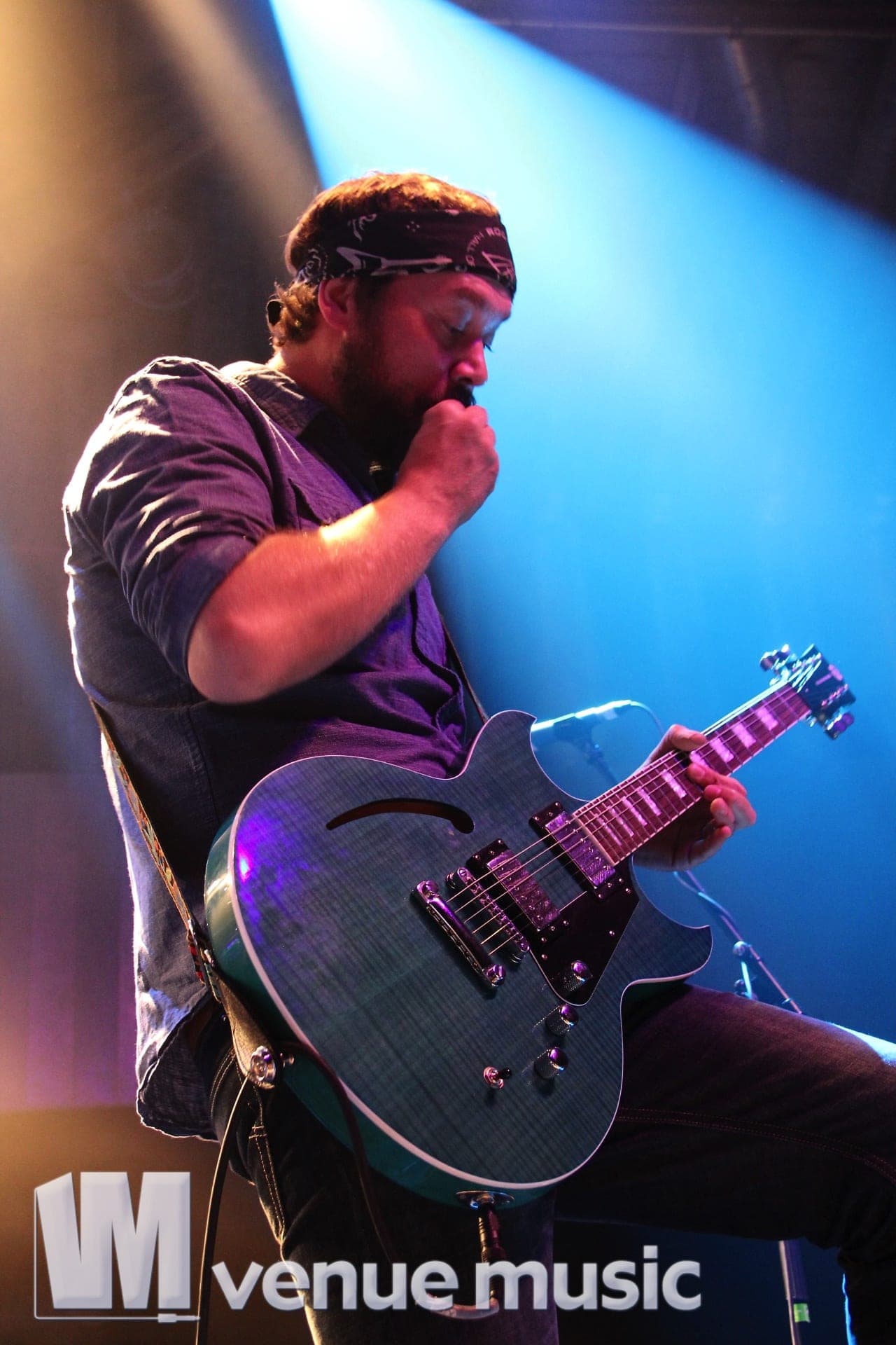Dank dem Zoll der Schweiz und der offenbar sehr genauen Kontrolle der Merch-Artikel, fing das Konzert der Kyle Gass Band auf ihrer „Thundering Herd“(*) Tour in der Garage in Saarbrücken mit deutlicher Verspätung an. Da die Truppe aber ohne Support spielte, ging es dann aber wenigstens direkt los mit der Rockband, die nicht aussieht wie eine Rockband. Wer ohne die Band zu kennen ein Konzert der Kyle Gass Band besucht, der könnte im ersten Moment glauben, dass hier jemand einfach ein paar Leute von der Straße eingesammelt – oder, im Fall des Namensgebers der Band, vom Pool eines All-Inclusive-Hotels in Spanien – und direkt auf die Bühne gestellt hätte. Der Moment dauert aber wirklich nur einen Moment, denn sobald die fünf anfangen zu spielen, merkt man, dass hier eine verdammt gute Band auf der Bühne steht. Und das zeigte die Band während des ganzen Auftritts, zu dem auch mal ein kurzer Besuch im Graben bei den Fans in der ersten Reihe gehörte (Berührungsängste? Kennt Kyle Gass offensichtlich nicht).