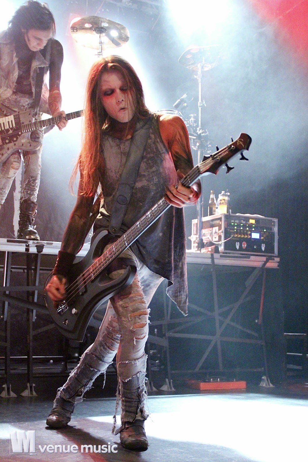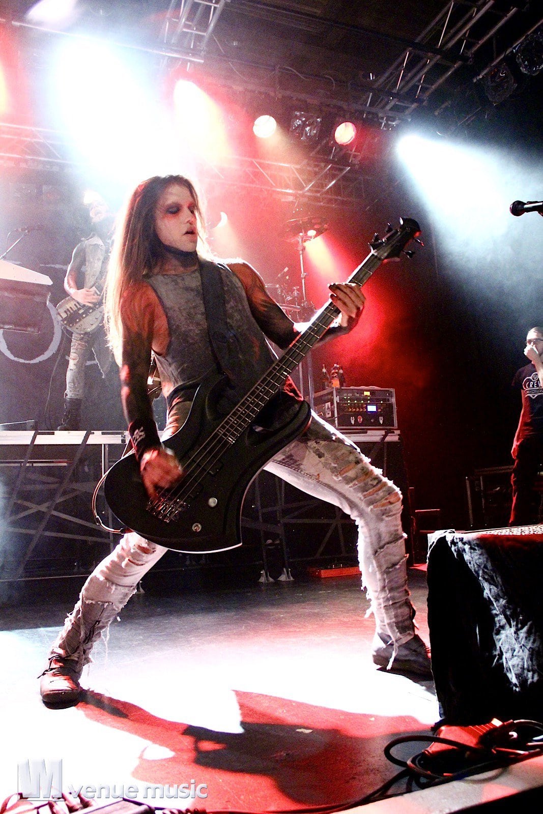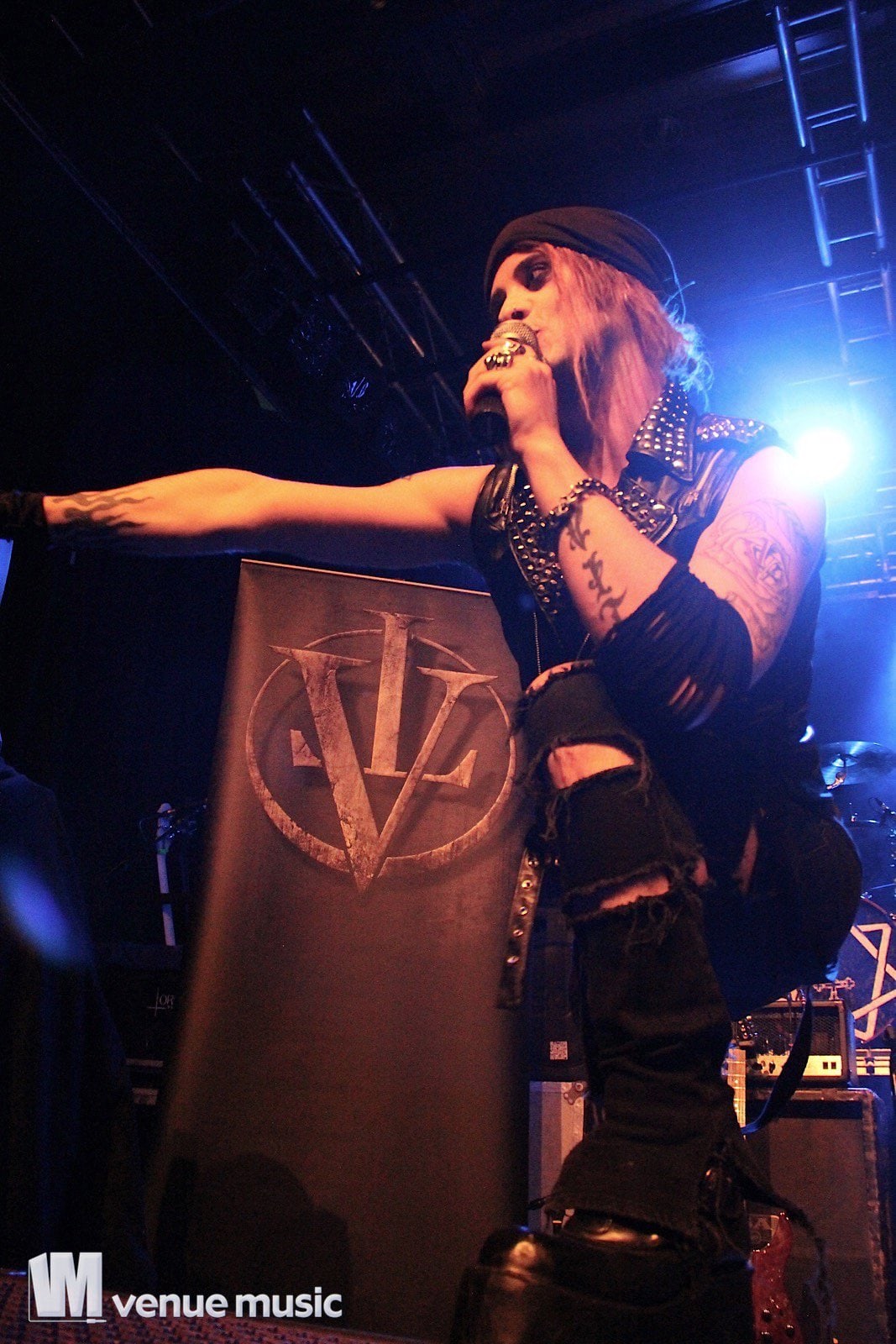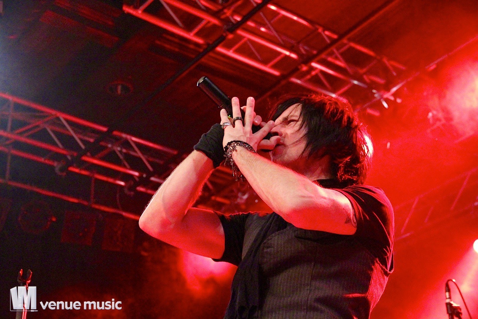 Vlad In Tears - Foto: Andrea Jaeckel-DobschatKaiserslautern war das dritte Konzert der „Make Love, Make War“-Tour der Gothic-Metal Band Lord Of The Lost aus Hamburg und gleichzeitig mein erstes Konzert der Truppe um Chris Harms (Vocals, Guitar, Cello), Bo Six (Guitar), Class Grenayde (Bass), Gared Dirge (Piano, Synthesizer, Percussion, Guitar) und Tobias Mertens (Drums). Mit dabei hatten Lord Of The Lost  zwei Supportbands: Vlad In Tears & Darkhaus. Dementsprechend frĂźh fing das Konzert auch an – um 19.30 Uhr betraten Vlad In Tears die BĂźhne und heizten dem Publikum schonmal kräftig ein. Ich bin normalerweise kein Fan von mehreren Vorbands – und da bin ich normalerweise nicht alleine, weil einige die Spielzeit der Vorbands dann lieber an der Bar verbringen – aber man soll den Bands ja auch eine Chance geben und so hielten sich die meisten in der Halle auf und wurden dafĂźr kräftig belohnt. Bei Vlad In Tears gab es dĂźsteren Gothic Rock mit MetaleinflĂźssen und was fĂźr’s Auge. Denn Frontmann Kris wusste ganz genau, wie er die Blicke der Mädels auf sich lenken konnte. Eine Begrüßung hier, eine Pose da und das alles verpackt in eine energiegeladene BĂźhnenshow, die es in sich hatte.