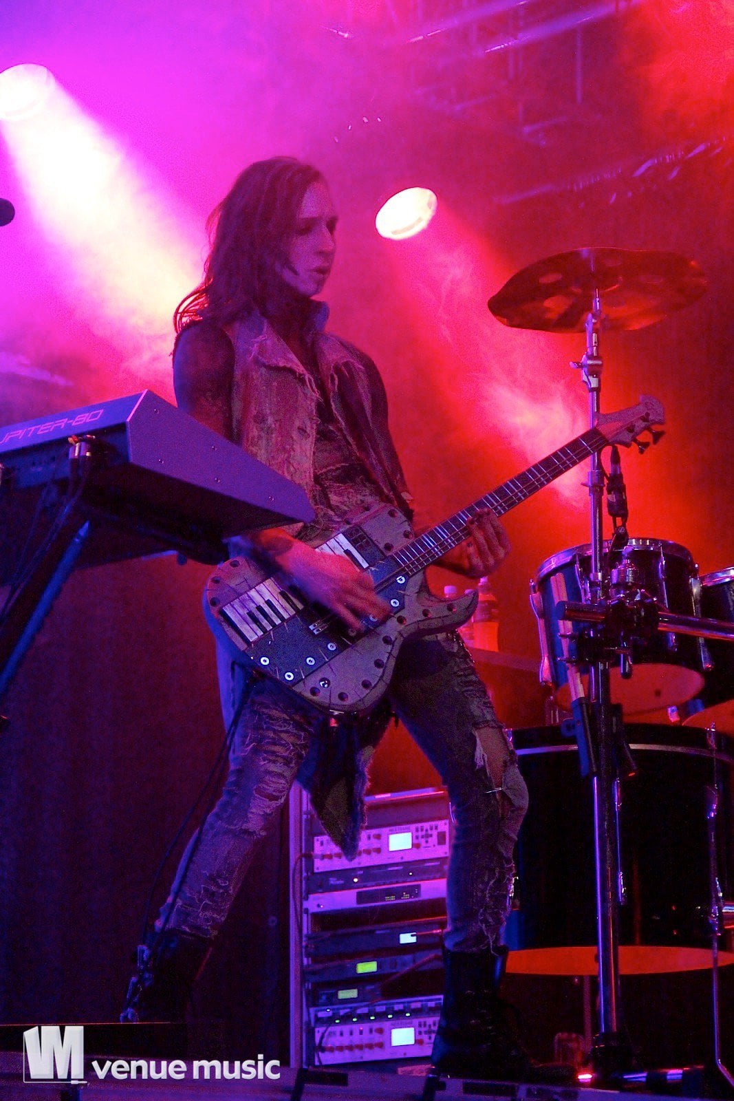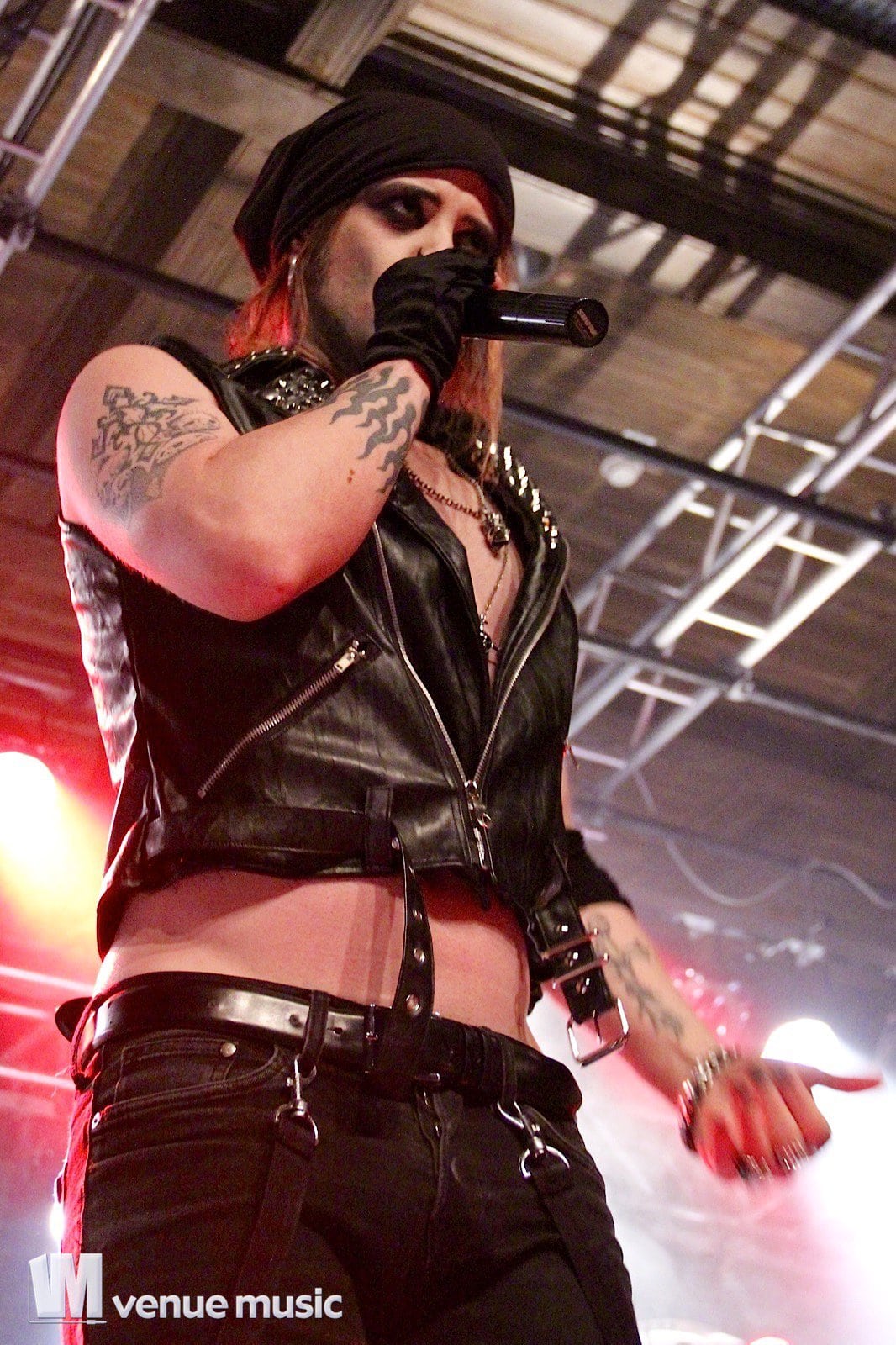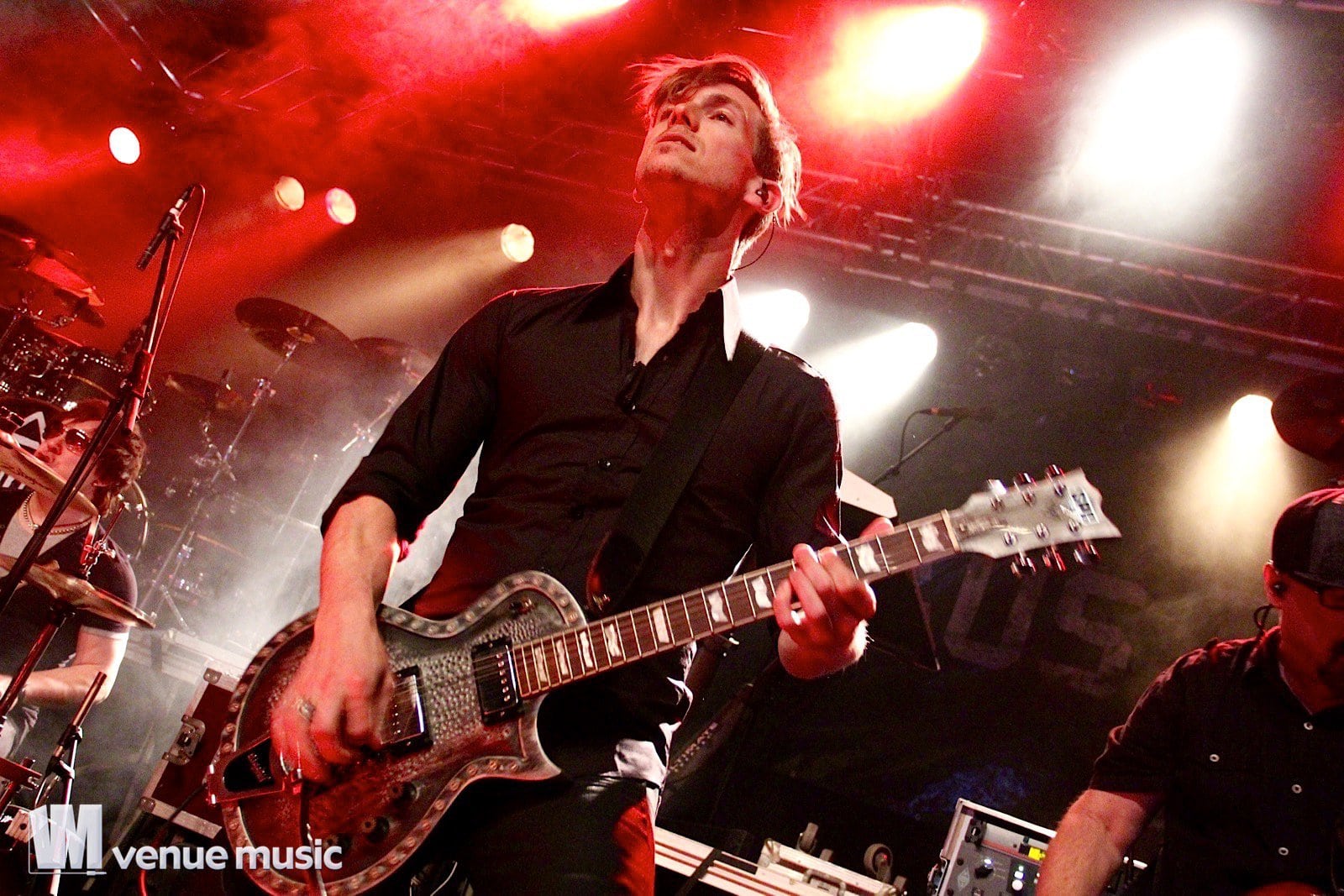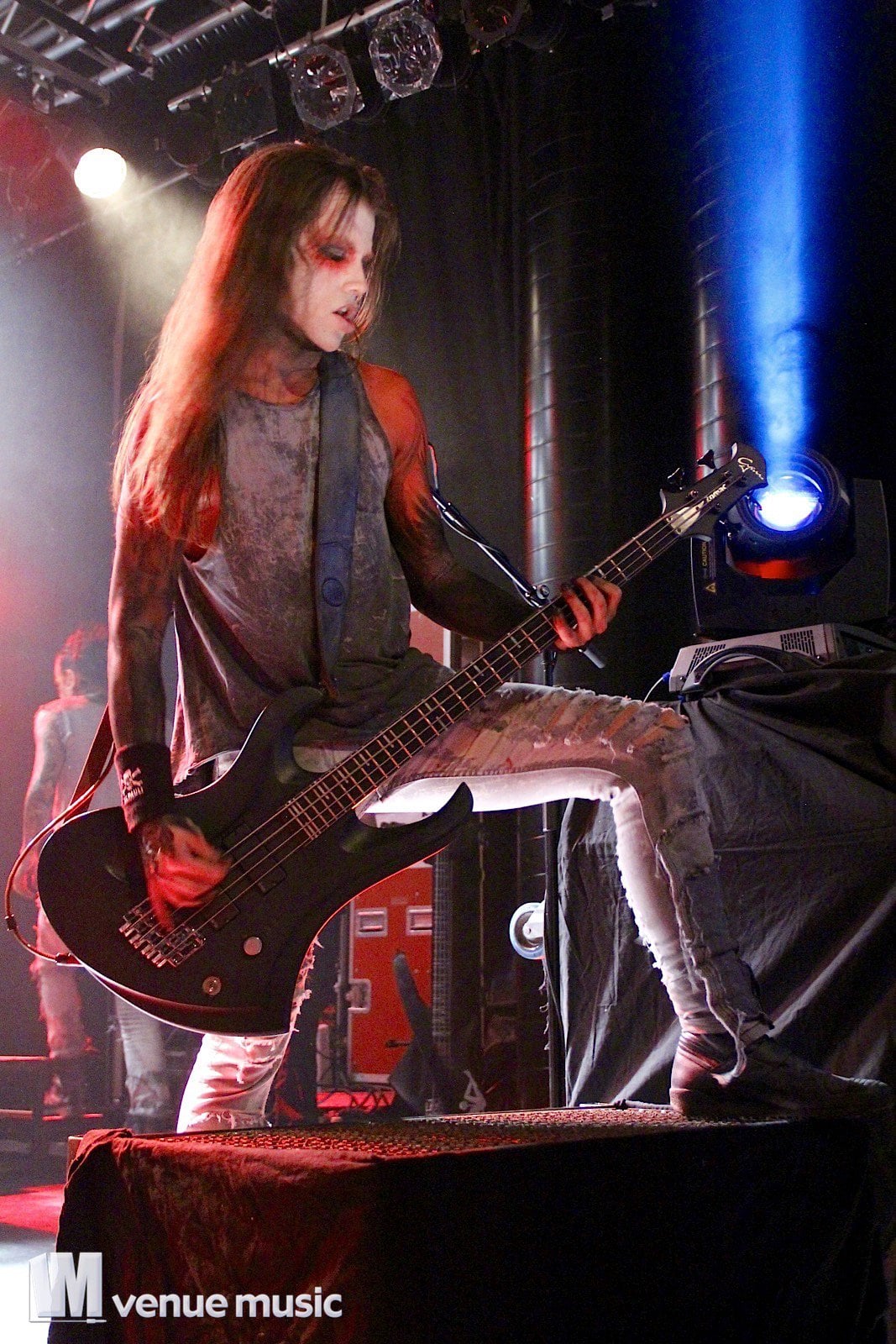 Vlad In Tears - Foto: Andrea Jaeckel-DobschatKaiserslautern war das dritte Konzert der „Make Love, Make War“-Tour der Gothic-Metal Band Lord Of The Lost aus Hamburg und gleichzeitig mein erstes Konzert der Truppe um Chris Harms (Vocals, Guitar, Cello), Bo Six (Guitar), Class Grenayde (Bass), Gared Dirge (Piano, Synthesizer, Percussion, Guitar) und Tobias Mertens (Drums). Mit dabei hatten Lord Of The Lost  zwei Supportbands: Vlad In Tears & Darkhaus. Dementsprechend frĂźh fing das Konzert auch an – um 19.30 Uhr betraten Vlad In Tears die BĂźhne und heizten dem Publikum schonmal kräftig ein. Ich bin normalerweise kein Fan von mehreren Vorbands – und da bin ich normalerweise nicht alleine, weil einige die Spielzeit der Vorbands dann lieber an der Bar verbringen – aber man soll den Bands ja auch eine Chance geben und so hielten sich die meisten in der Halle auf und wurden dafĂźr kräftig belohnt. Bei Vlad In Tears gab es dĂźsteren Gothic Rock mit MetaleinflĂźssen und was fĂźr’s Auge. Denn Frontmann Kris wusste ganz genau, wie er die Blicke der Mädels auf sich lenken konnte. Eine Begrüßung hier, eine Pose da und das alles verpackt in eine energiegeladene BĂźhnenshow, die es in sich hatte.