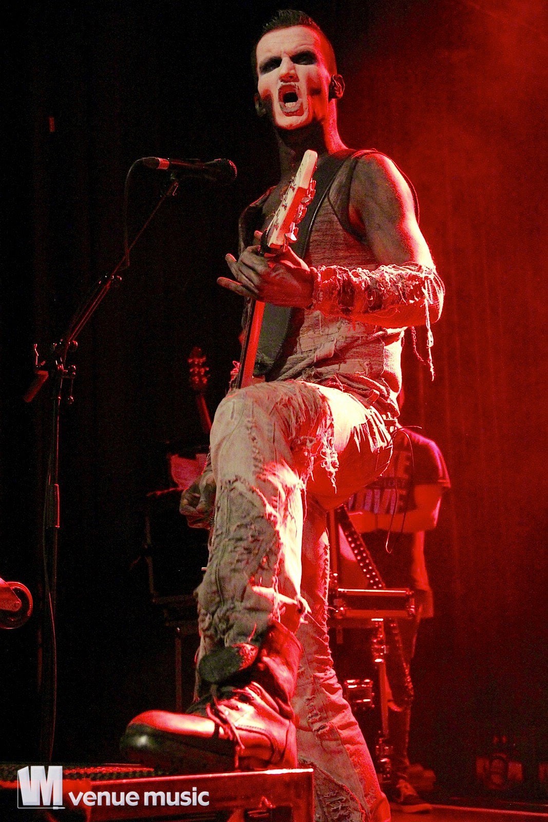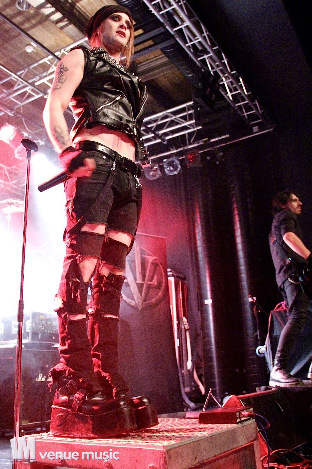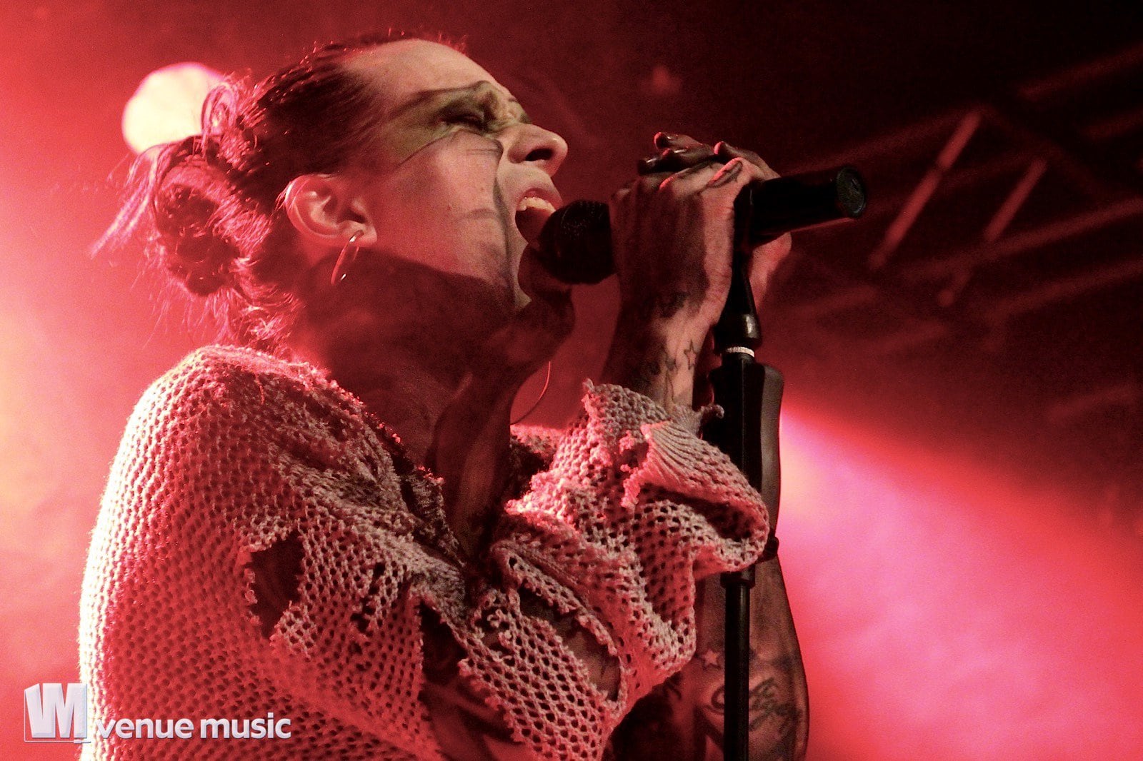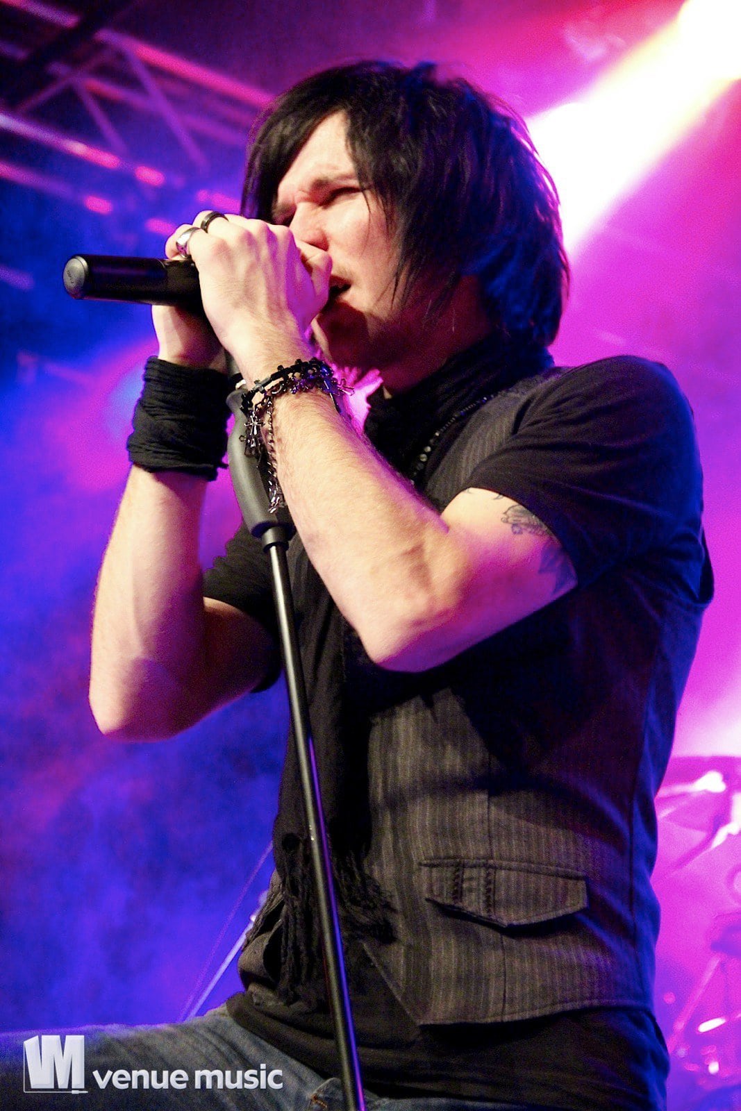 Vlad In Tears - Foto: Andrea Jaeckel-DobschatKaiserslautern war das dritte Konzert der „Make Love, Make War“-Tour der Gothic-Metal Band Lord Of The Lost aus Hamburg und gleichzeitig mein erstes Konzert der Truppe um Chris Harms (Vocals, Guitar, Cello), Bo Six (Guitar), Class Grenayde (Bass), Gared Dirge (Piano, Synthesizer, Percussion, Guitar) und Tobias Mertens (Drums). Mit dabei hatten Lord Of The Lost  zwei Supportbands: Vlad In Tears & Darkhaus. Dementsprechend frĂźh fing das Konzert auch an – um 19.30 Uhr betraten Vlad In Tears die BĂźhne und heizten dem Publikum schonmal kräftig ein. Ich bin normalerweise kein Fan von mehreren Vorbands – und da bin ich normalerweise nicht alleine, weil einige die Spielzeit der Vorbands dann lieber an der Bar verbringen – aber man soll den Bands ja auch eine Chance geben und so hielten sich die meisten in der Halle auf und wurden dafĂźr kräftig belohnt. Bei Vlad In Tears gab es dĂźsteren Gothic Rock mit MetaleinflĂźssen und was fĂźr’s Auge. Denn Frontmann Kris wusste ganz genau, wie er die Blicke der Mädels auf sich lenken konnte. Eine Begrüßung hier, eine Pose da und das alles verpackt in eine energiegeladene BĂźhnenshow, die es in sich hatte.