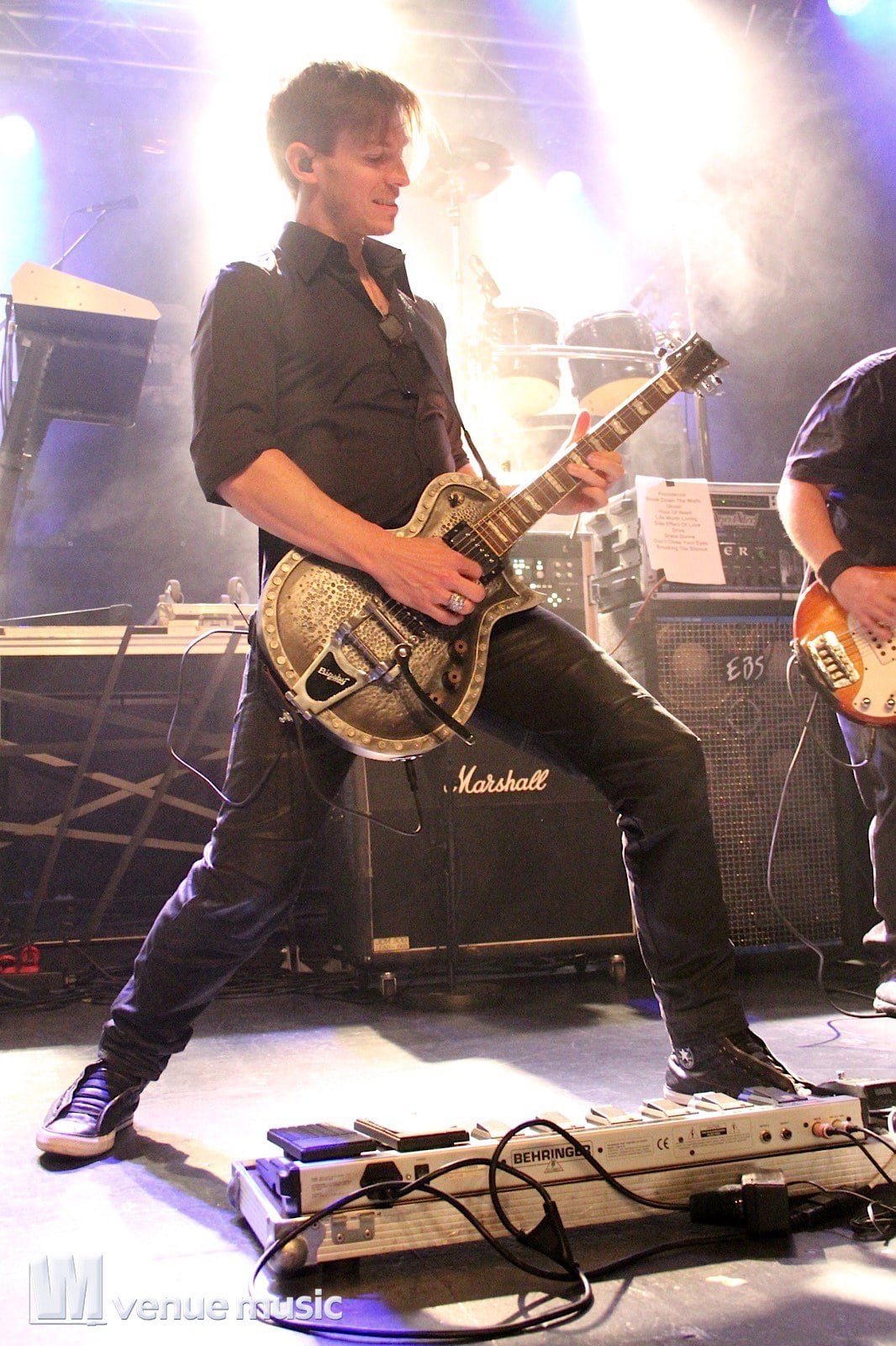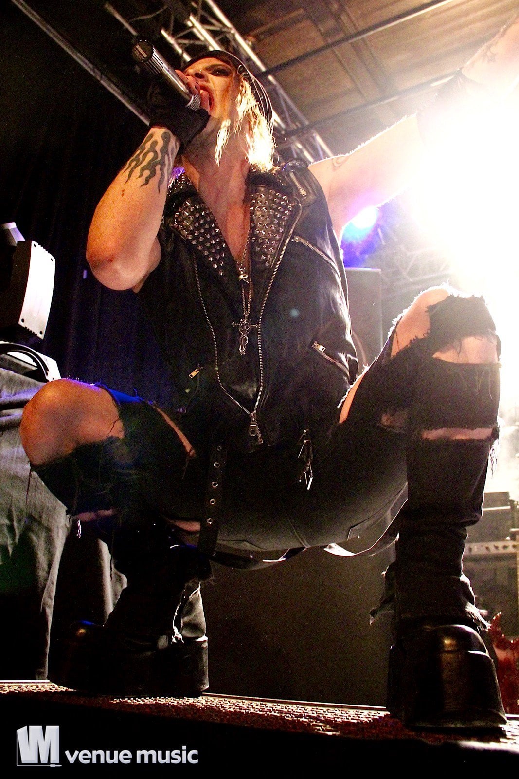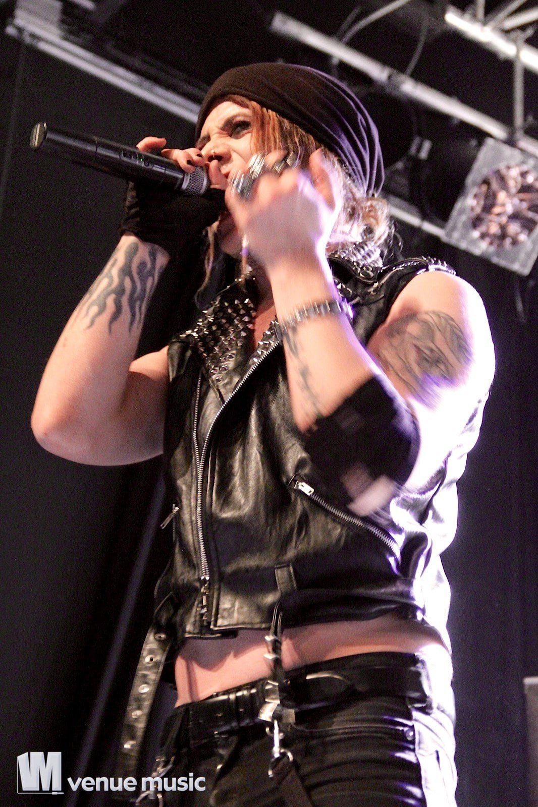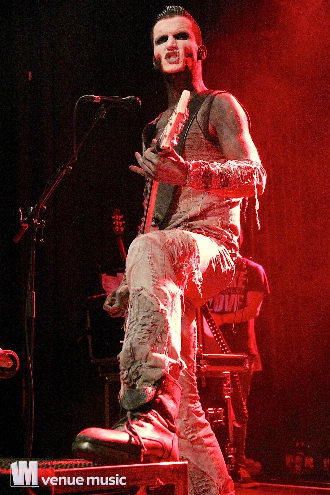 Vlad In Tears - Foto: Andrea Jaeckel-DobschatKaiserslautern war das dritte Konzert der „Make Love, Make War“-Tour der Gothic-Metal Band Lord Of The Lost aus Hamburg und gleichzeitig mein erstes Konzert der Truppe um Chris Harms (Vocals, Guitar, Cello), Bo Six (Guitar), Class Grenayde (Bass), Gared Dirge (Piano, Synthesizer, Percussion, Guitar) und Tobias Mertens (Drums). Mit dabei hatten Lord Of The Lost  zwei Supportbands: Vlad In Tears & Darkhaus. Dementsprechend frĂźh fing das Konzert auch an – um 19.30 Uhr betraten Vlad In Tears die BĂźhne und heizten dem Publikum schonmal kräftig ein. Ich bin normalerweise kein Fan von mehreren Vorbands – und da bin ich normalerweise nicht alleine, weil einige die Spielzeit der Vorbands dann lieber an der Bar verbringen – aber man soll den Bands ja auch eine Chance geben und so hielten sich die meisten in der Halle auf und wurden dafĂźr kräftig belohnt. Bei Vlad In Tears gab es dĂźsteren Gothic Rock mit MetaleinflĂźssen und was fĂźr’s Auge. Denn Frontmann Kris wusste ganz genau, wie er die Blicke der Mädels auf sich lenken konnte. Eine Begrüßung hier, eine Pose da und das alles verpackt in eine energiegeladene BĂźhnenshow, die es in sich hatte.