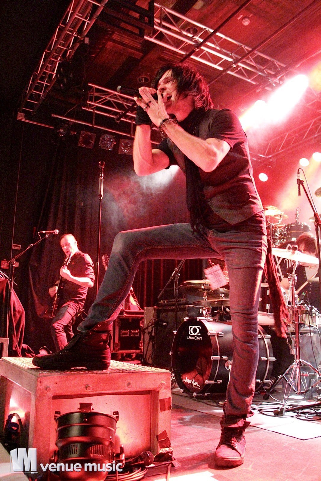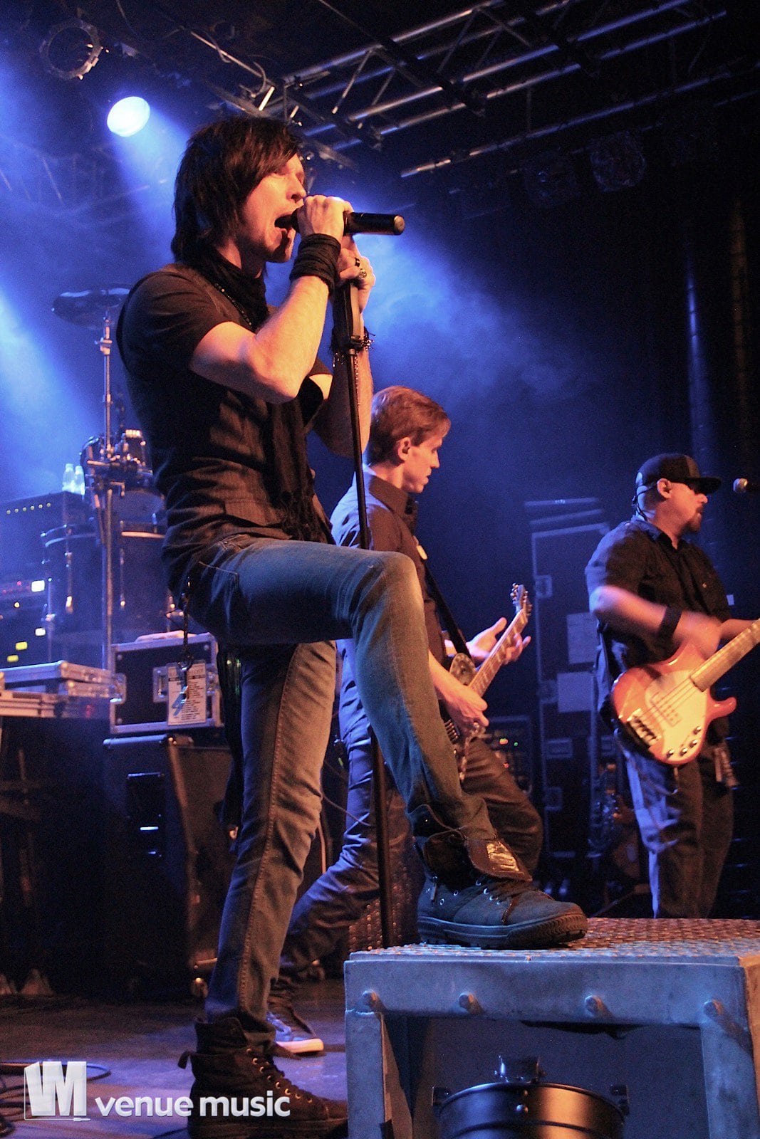 Darkhaus - Foto: Andrea Jaeckel-DobschatNach einer kurzen Umbaupause waren Darkhaus an der Reihe. Der Bandname hat mich persĂśnlich etwas irritiert, denn was die Jungs uns da aufgetischt haben, war eher weniger „Dark“. Man durfte sich Ăźber 80s Pop-Rhythmen, gemischt mit Gothic Rock und der unglaublich melodiĂśsen und klaren Stimme des Sängers Ken Hanlon freuen. Genau die richtige Musik, um warm zu werden, denn wenn man schon nicht ausgelassen tanzen wollte, so musste man sich zumindest auf seinem Platz mit einem glĂźcklichen Grinsen im Gesicht rhythmisch hin und her wiegen. Hat also sehr gut funktioniert und die Zeit verging wie im Flug. Kaum auf der BĂźhne, so mussten die Jungs schon wieder runter. So fĂźhlte es sich zumindest an. Und das wo jede Vorband mindestens 35 Minuten Zeit hatte.