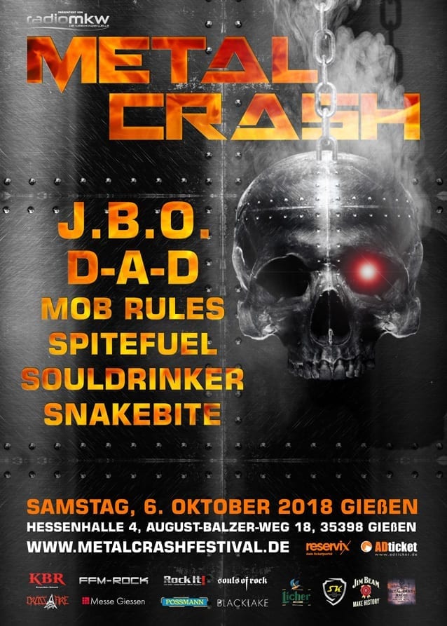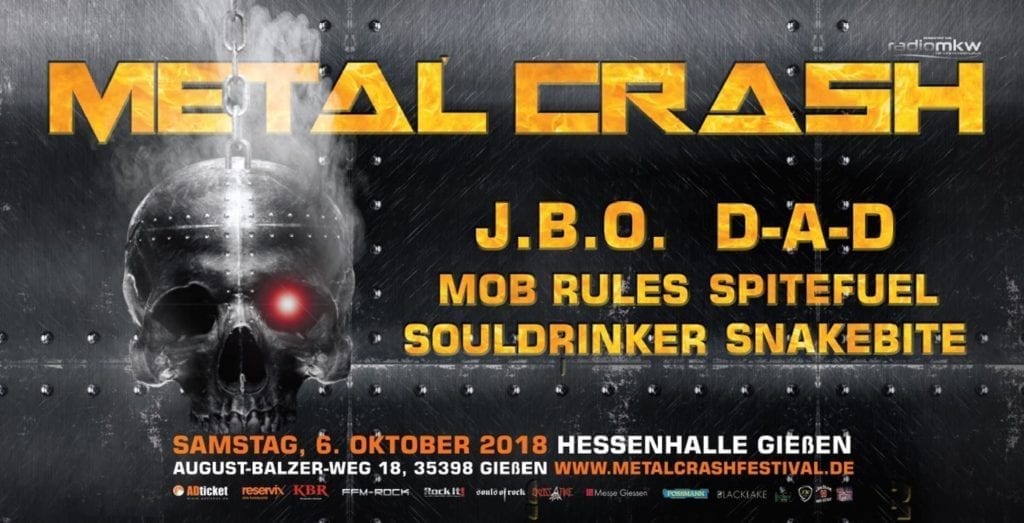 Mit dabei sind die dänischen 80er-Hardrock-Heroen von D-A-D und die Erlanger Fun-Metaller von J.B.O. Des weiteren stehen die Power-Metaller von Mob Rules, die Heilbronner von SpiteFuel und Souldrinker auf dem LineUp-Zettel. Eröffnet wird das Metal Crash von der Glamrock-Truppe Snakebite, deren Frontmann Nikki Actionhero aus Gießen stammt und somit ein echtes Heimspiel haben wird.
