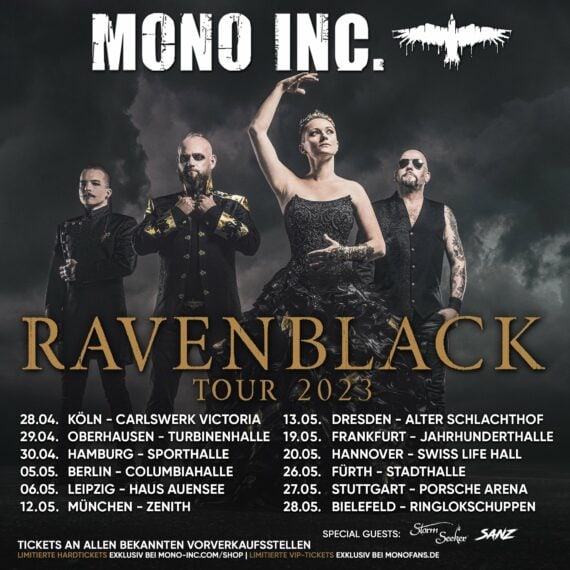 Wer die Songs live genießen möchte, kann dies auf der Ravenblack-Tour, die Ende April startet. Limitierte Hardtickets für die Tour gibt es im Mono Inc. Shop (VIP Tickets gab es dieses Mal nur über Mono-fans.de für Mitglieder des Fanclubs – sind aber bereits vergriffen).