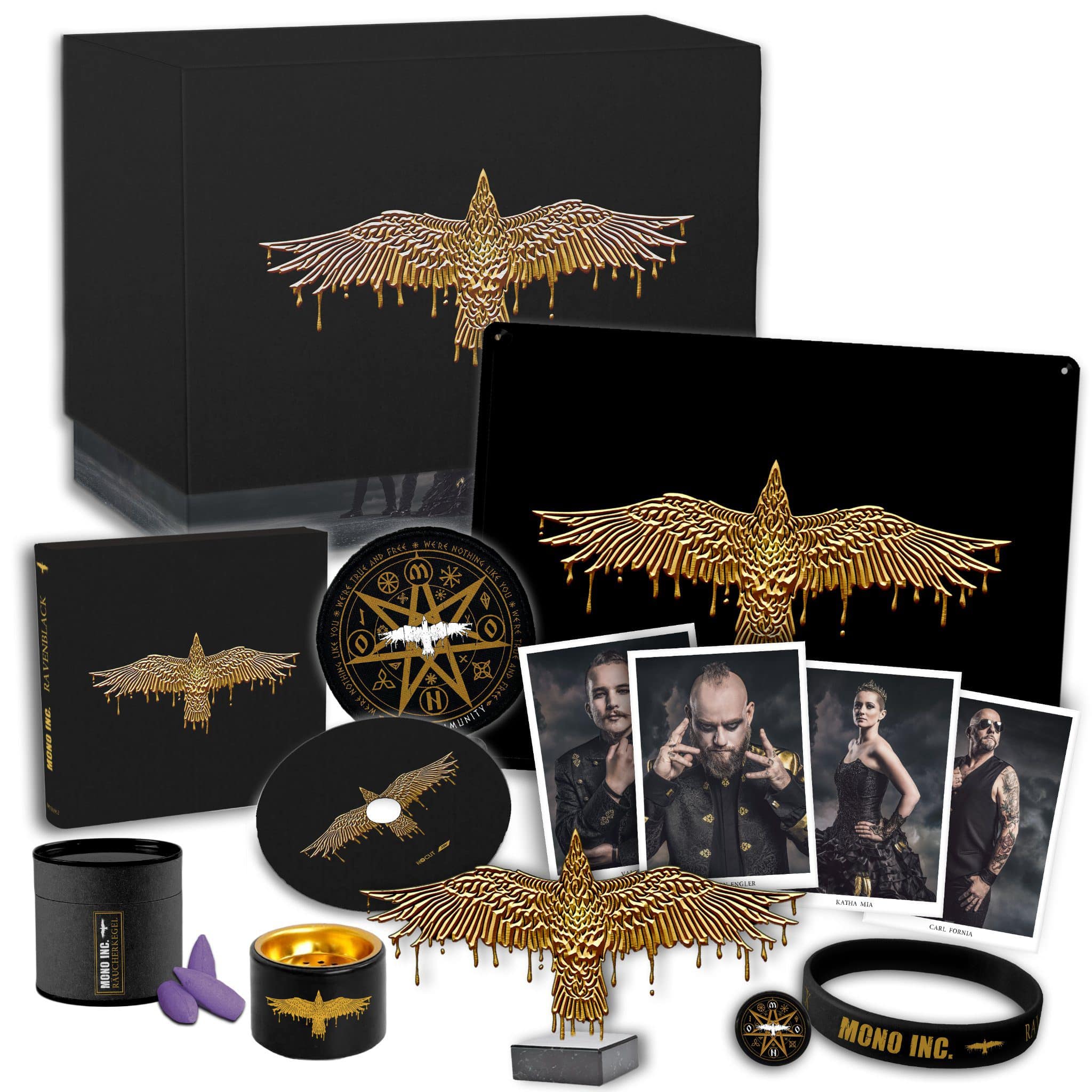 Heute erscheint das langersehnte neue Album „Ravenblack“ von Mono Inc., welches in diversen Fassungen (von Jewelcase bis Deluxe Box) erhältlich ist. Für jeden ist etwas dabei. Im No Cut Shop ist z.B. die limitierte Deluxe Fan Box, die goldene LP oder die Cassette exklusiv erhältlich, bei EMP dagegen gibt es Gold-Schwarzes Splattervinyl exklusiv. Aber auch ein Earbook, eine Digipack oder ein Bundle mit T-Shirt kann erworben werden.