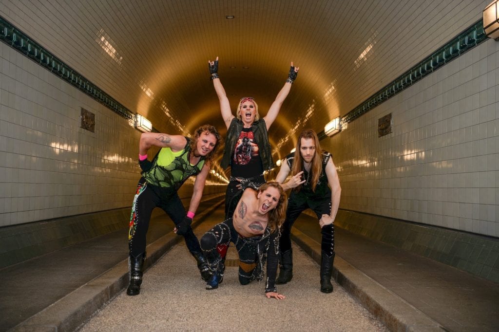 Und so plaudert er weiter aus dem Nähkästchen und macht uns und sicher auch den Fans den Mund wässrig: „Musikalisch ist das eine geile Mischung aus 80s Heavy Metal und modernem Hard Rock. Hier und da ne Prise Power Metal oder Thrash-Anleihen, und man hat uns“. Ein ganz schön breites Spektrum und Fans von so unterschiedlichen Bands wie Mötley Crüe, Crashdiet, W.A.S.P., Enforcer, Hammerfall, Tankard, Helloween oder Anthrax dürften absolut auf ihre Kosten kommen.