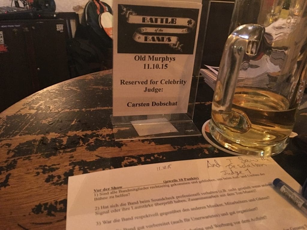 Gestern war der 7. Heat des Old Murphy’s Battle of the Bands 2015 mit Porn Queen, Uhrwerk und And I Saw The Desolation und ich war wieder einmal Teil der Jury. Also gebe ich hier auch wieder ein persönliches Fazit ab, zur Veranstaltung und zu den Bands. Zur Veranstaltung selbst bleibt nur zu sagen, dass es seitens der Organisation wieder prima geklappt hat, es hat Spaß gemacht, nur war es etwas wenig Publikum. Wo genau der Grund lag? Ein bisschen Sonntag, ein bisschen Fußball – aber auch andere Bands hatten ihre Auftritte an Fußball-Sonntagen. Scheinbar hat die Mobilisierung der Fans hier einfach nicht so gut funktioniert, wie es die Bands rein musikalisch auf jeden Fall verdient hätten.