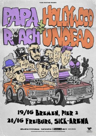 Nachdem ihre erfolgreichste Deutschlandtour im März 2020 aufgrund der Pandemie abgebrochen werden musste, kehrt die kalifornische Rock-Band PAPA ROACH endlich nach Deutschland zurück. Die Band wird am 19. Juni 2023 im Pier2 in Bremen und am 20. Juni 2023 in der SICK-ARENA in Freiburg auftreten. Darüber hinaus werden PAPA ROACH bei Festivals wie Rock am Ring/Rock im Park, Vainstream und Full Force als Headliner einheizen. HOLLYWOOD UNDEAD, die Rock-Rap-Metal-Band, wird wie bereits im März 2020 wieder als Co-Headliner dabei unterstützen.