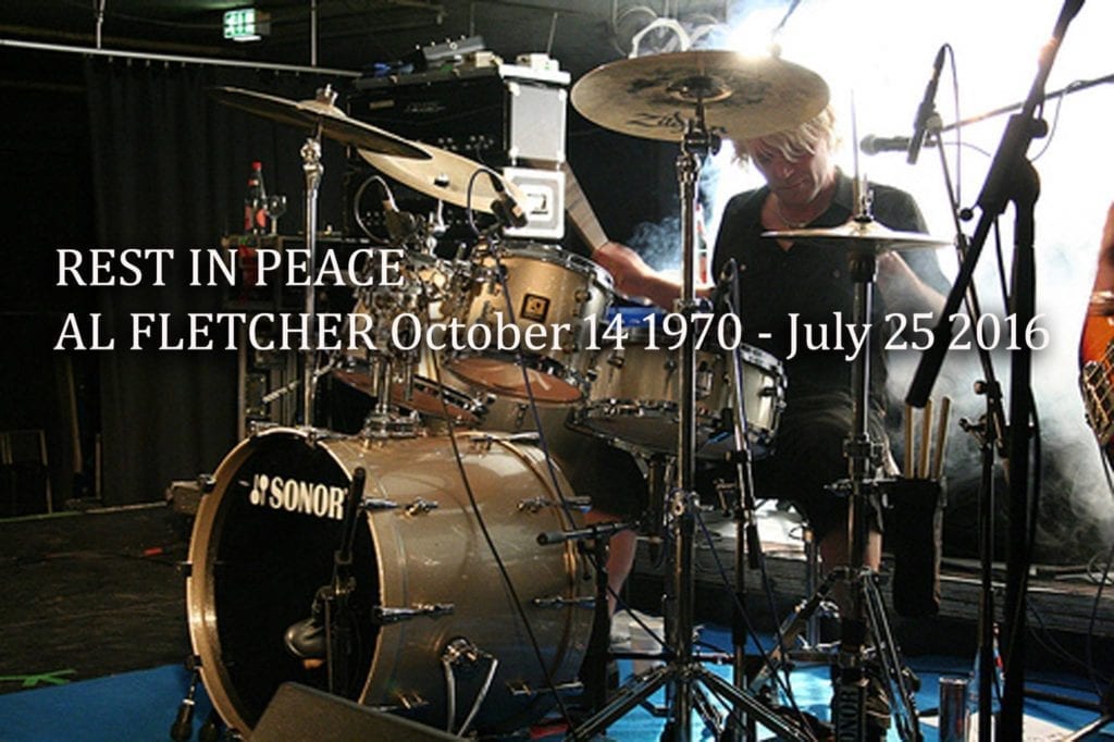 It is with deep sorrow we have to report the tragic news that our dear brother and band mate Al Fletcher passed away at 6pm BST yesterday, the 25th July. Al contracted double pneumonia followed by sepsis in a rare reaction to an infection. This caused his immune system to wage a war on his body that he was unable to survive, despite the fight he put up and the best efforts of the doctors and nursing staff at Ealing Hospital. Kept sedated throughout this sudden and vicious affliction, we can only be grateful that he suffered no pain and passed peacefully.
